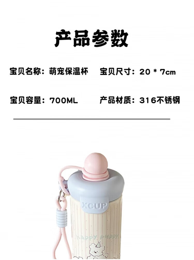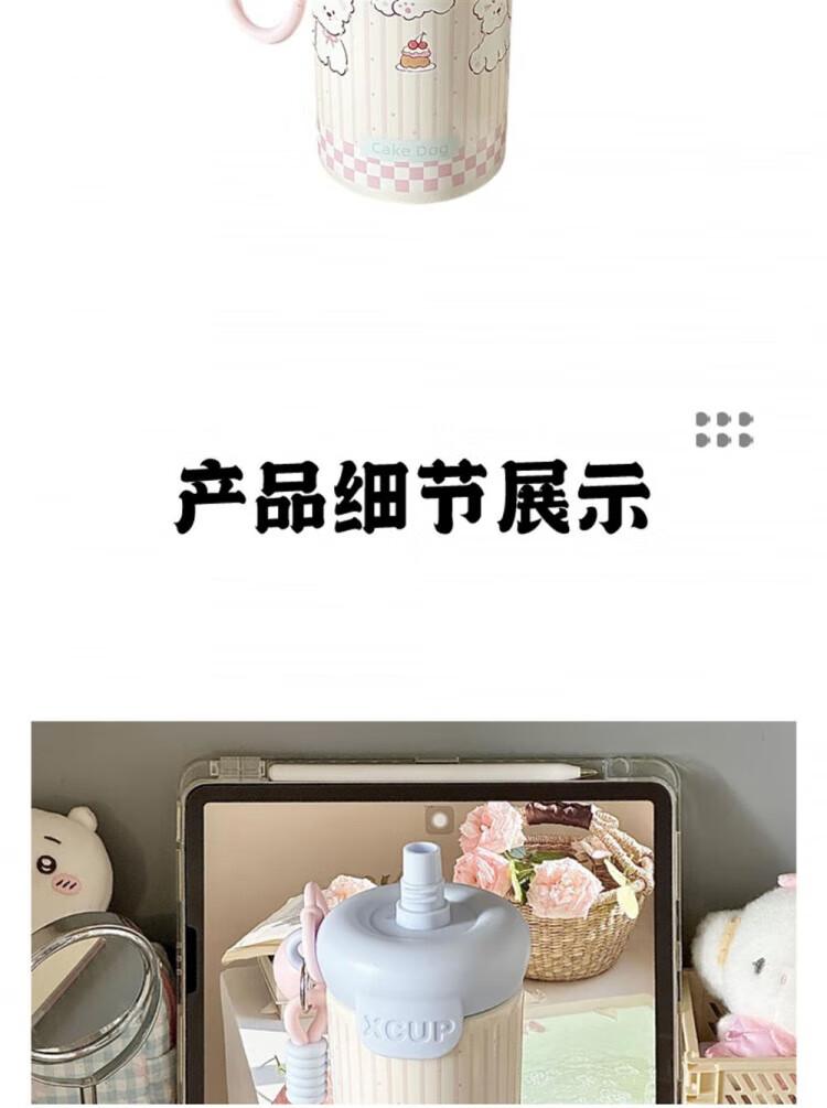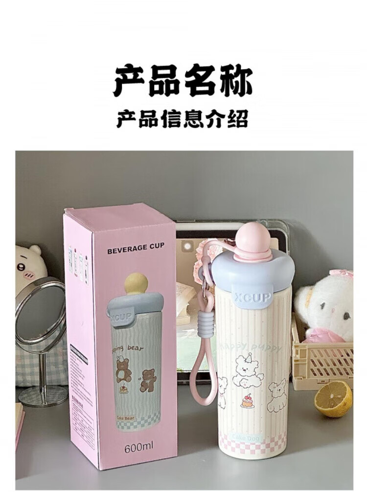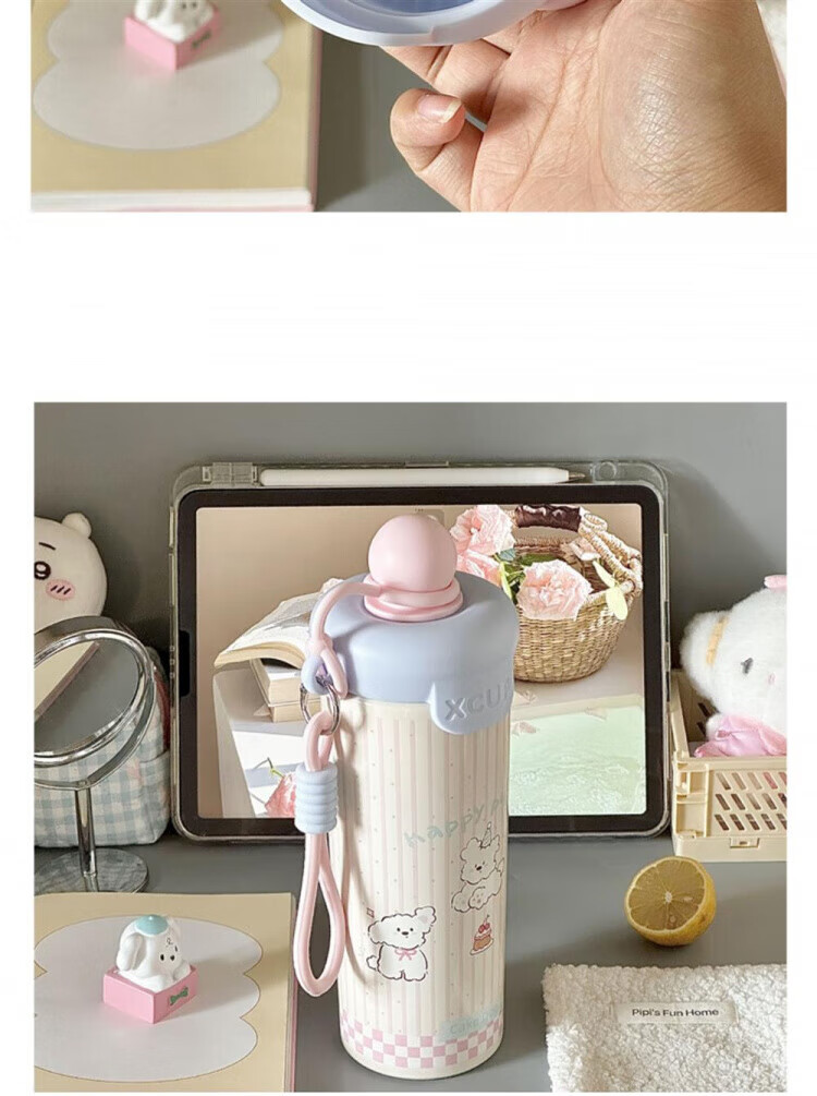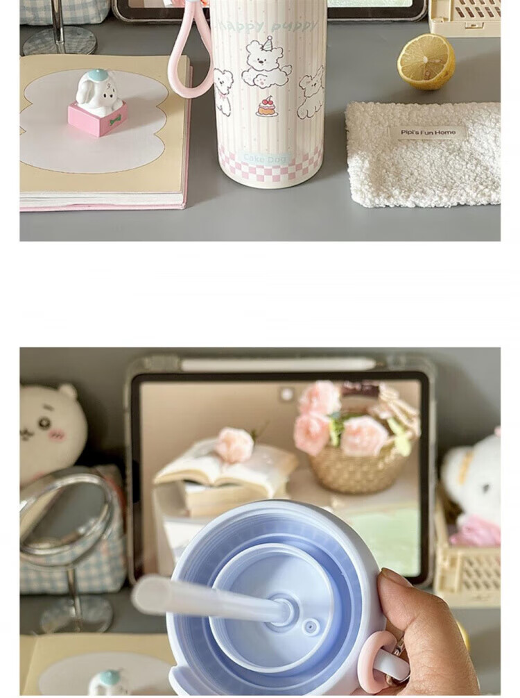 DEATKN德国可爱冰霸儿童保温杯上学专用新款吸管杯2025女生外出便携水杯 小狗粉+杯刷吸管刷+4粒3D贴 1ml