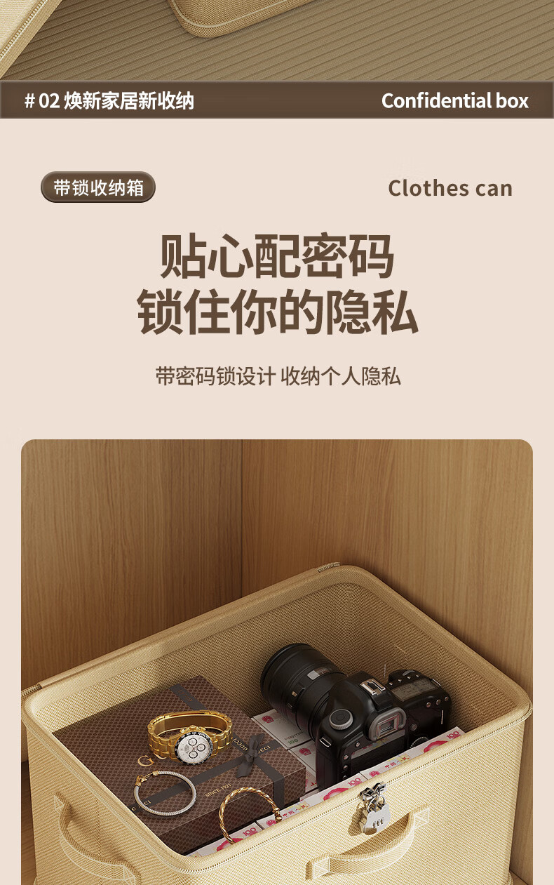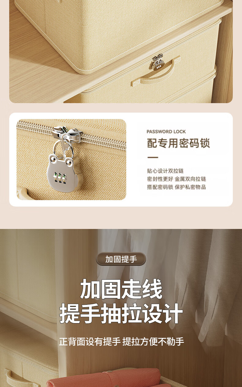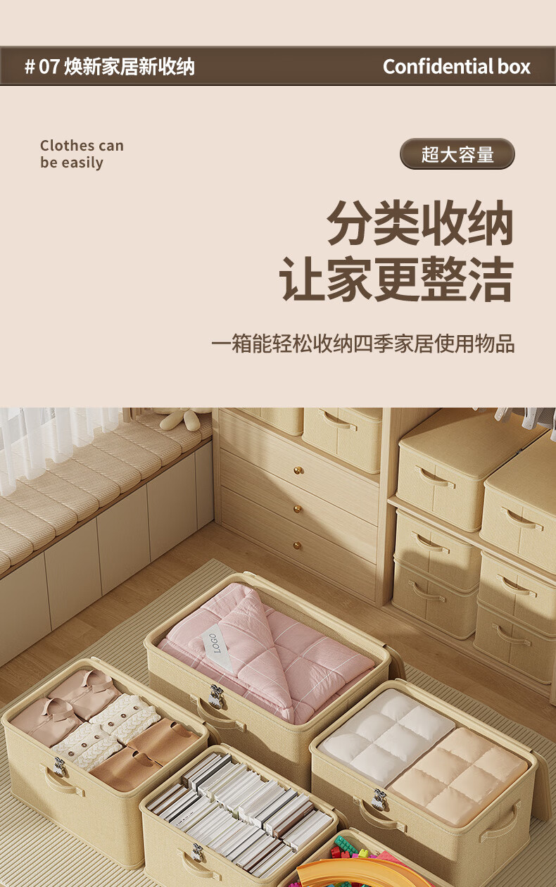 DEATKN德国衣服橱柜收纳箱家用带锁衣柜衣物分层神器收纳整理盒大容量储 暮灰色带锁款特大号【可装春秋衣 50*35*30cm