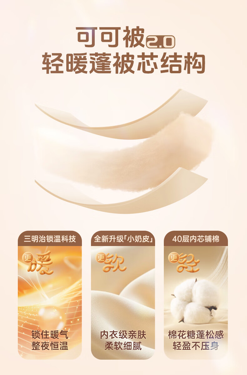 JaCe新浪漫糯感可可被针织太空被春秋加厚冬被大豆纤维被棉被子 奶茶可可 200cm*230cm 春秋被