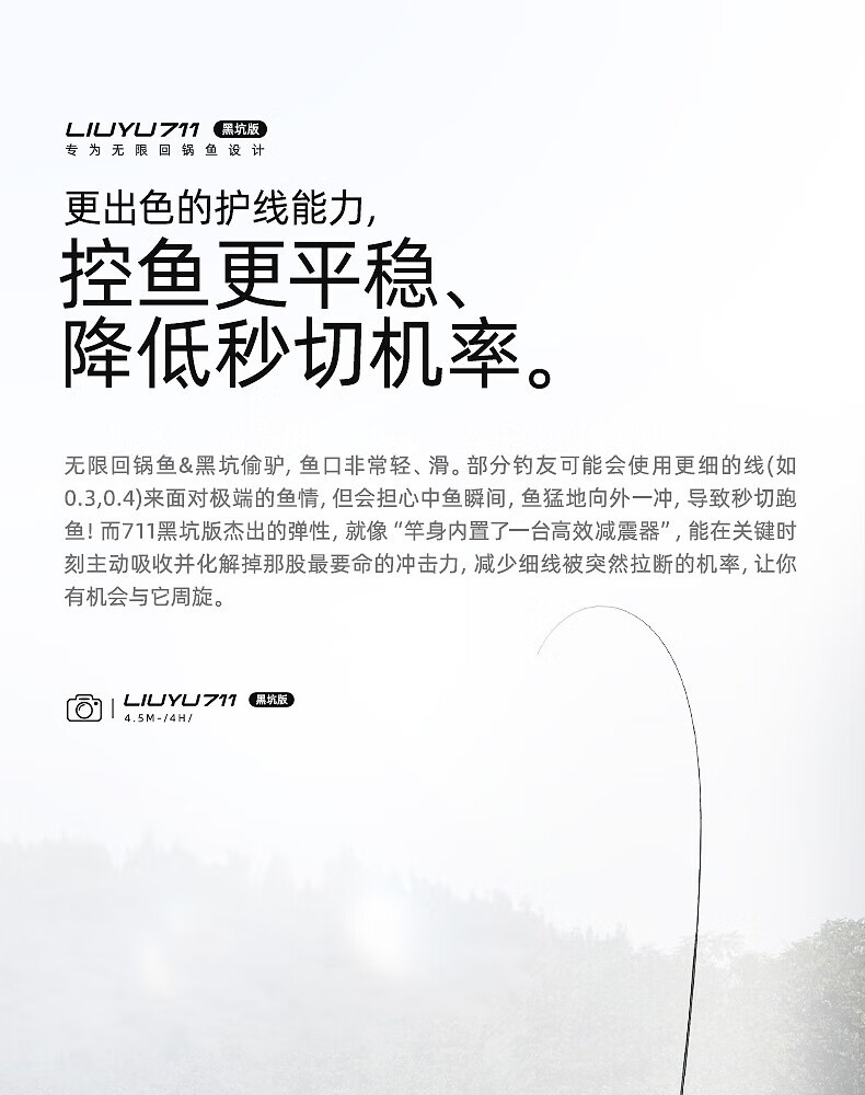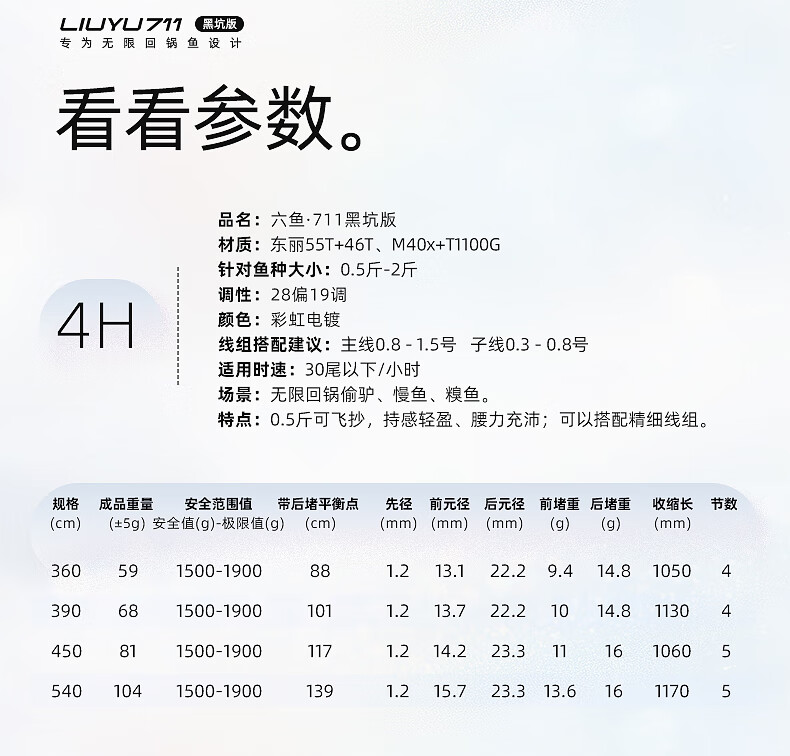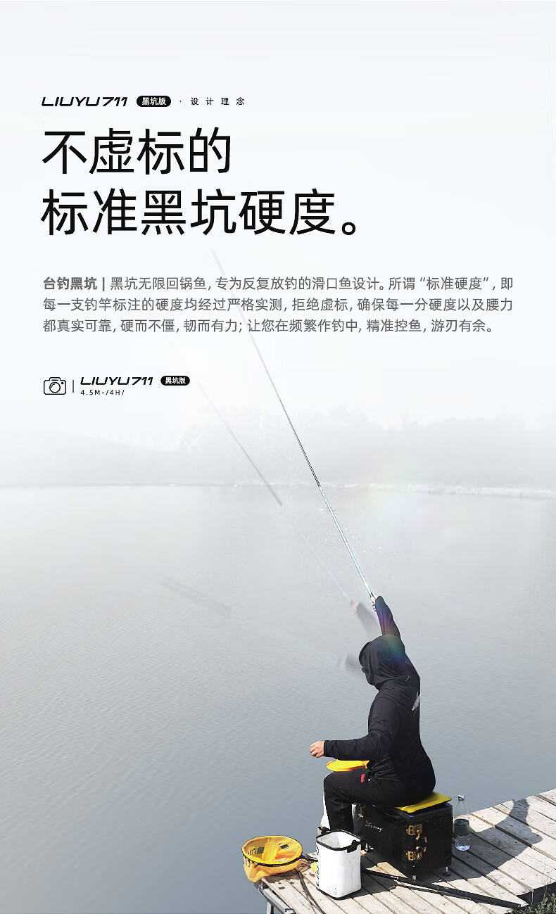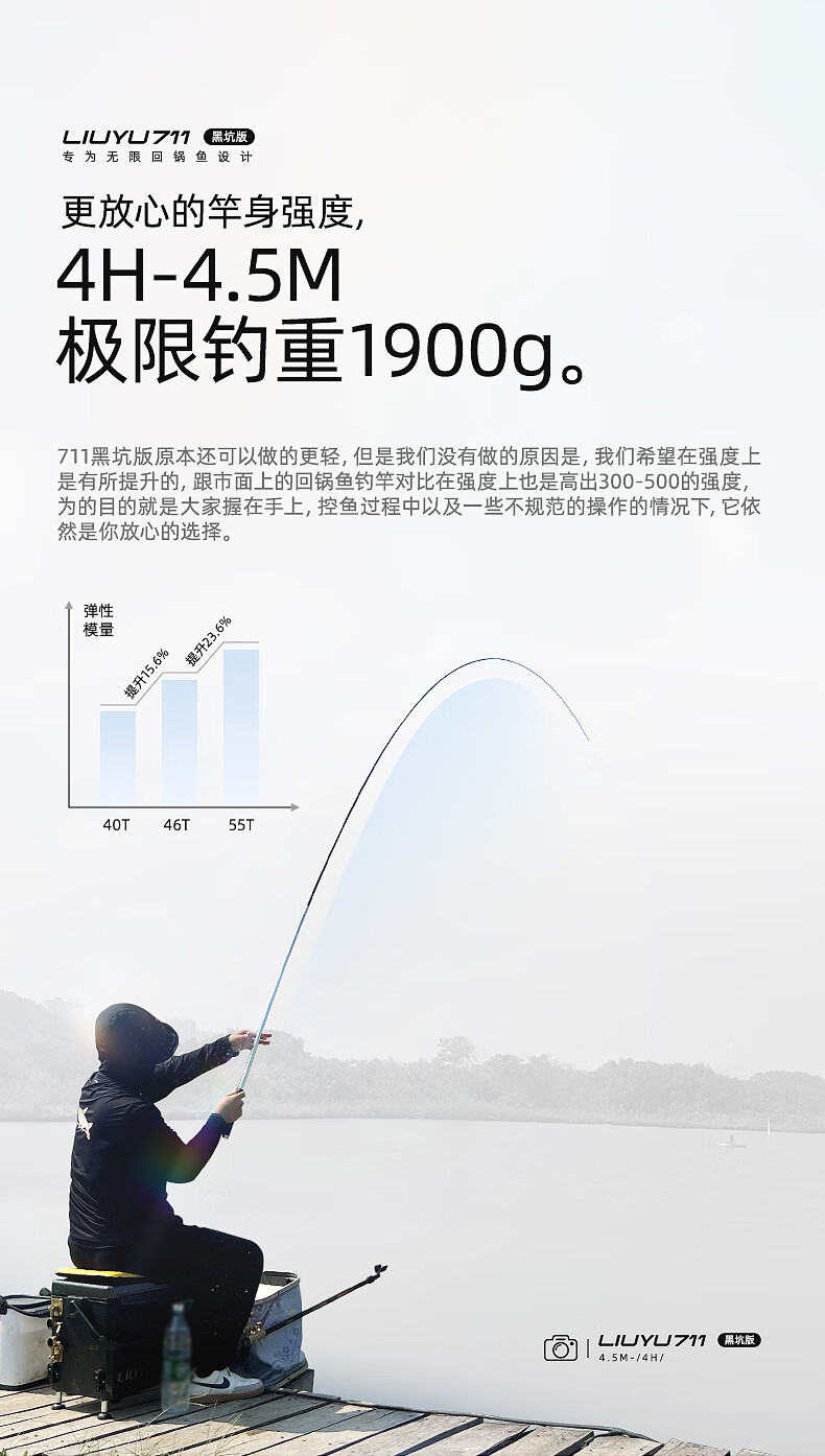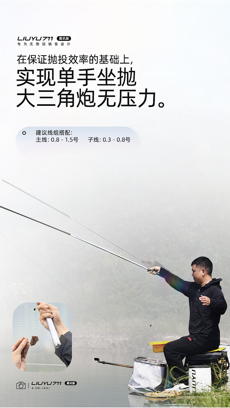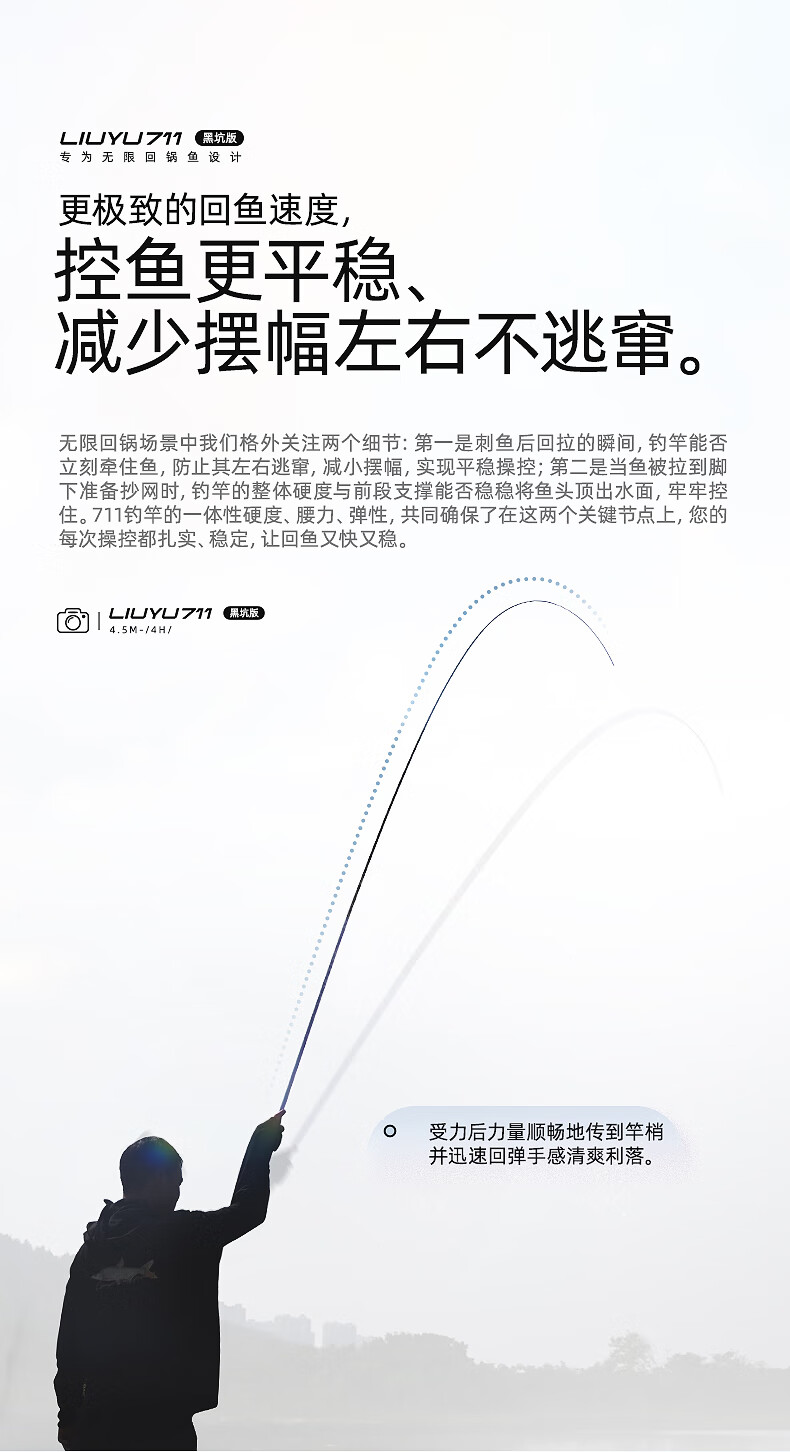 六鱼711黑坑版专为无限回锅鱼设计4H/5H/6H东丽55T黑坑手竿超轻碳素 4.5m 【6H】鲫/鲤/罗非2.0斤-4.0斤—东丽55T