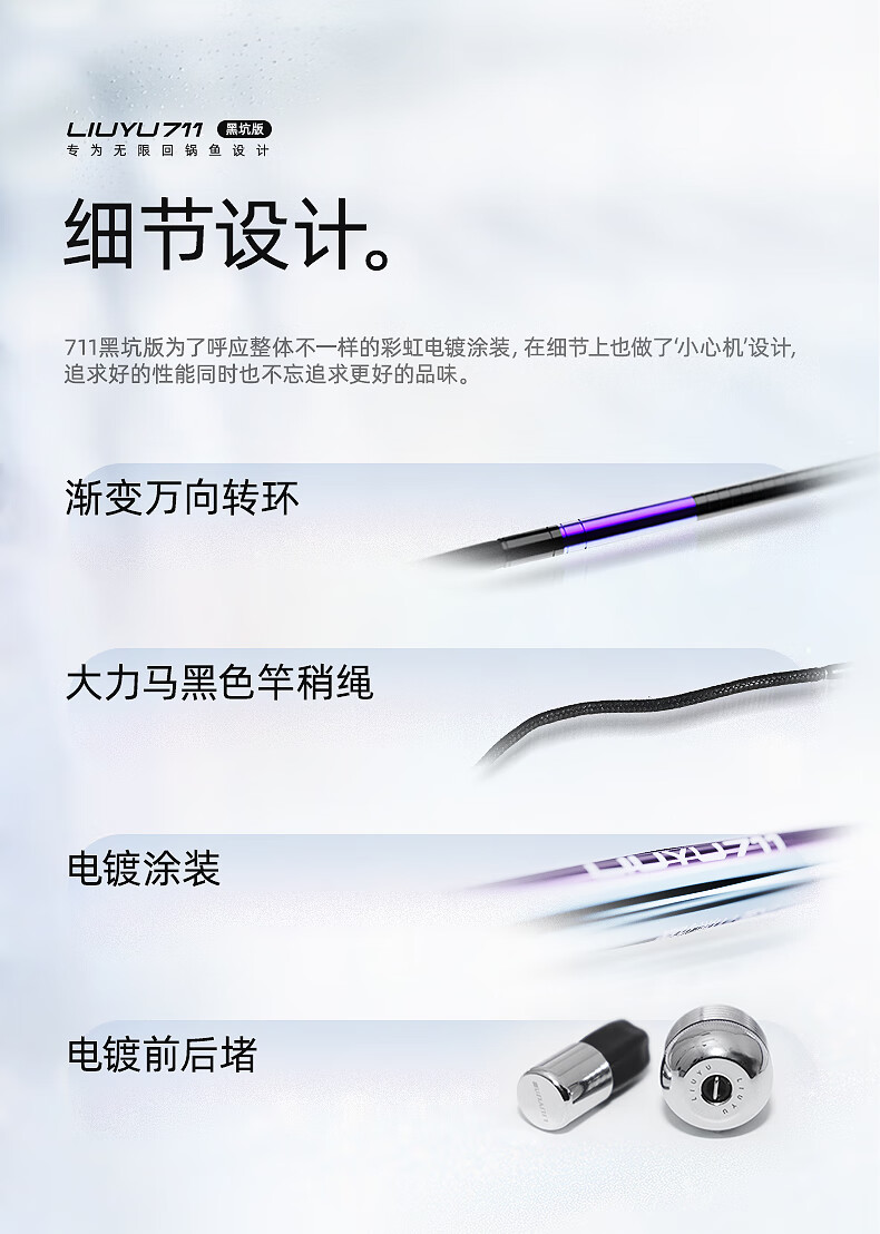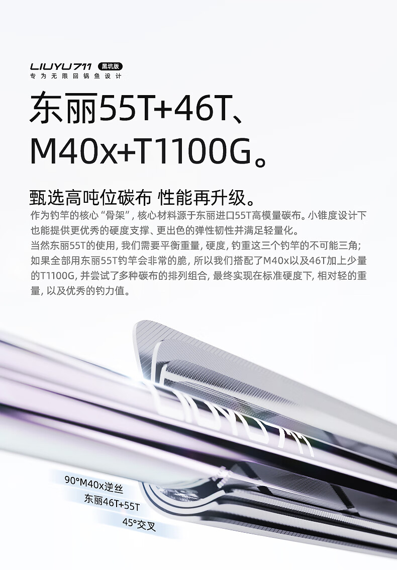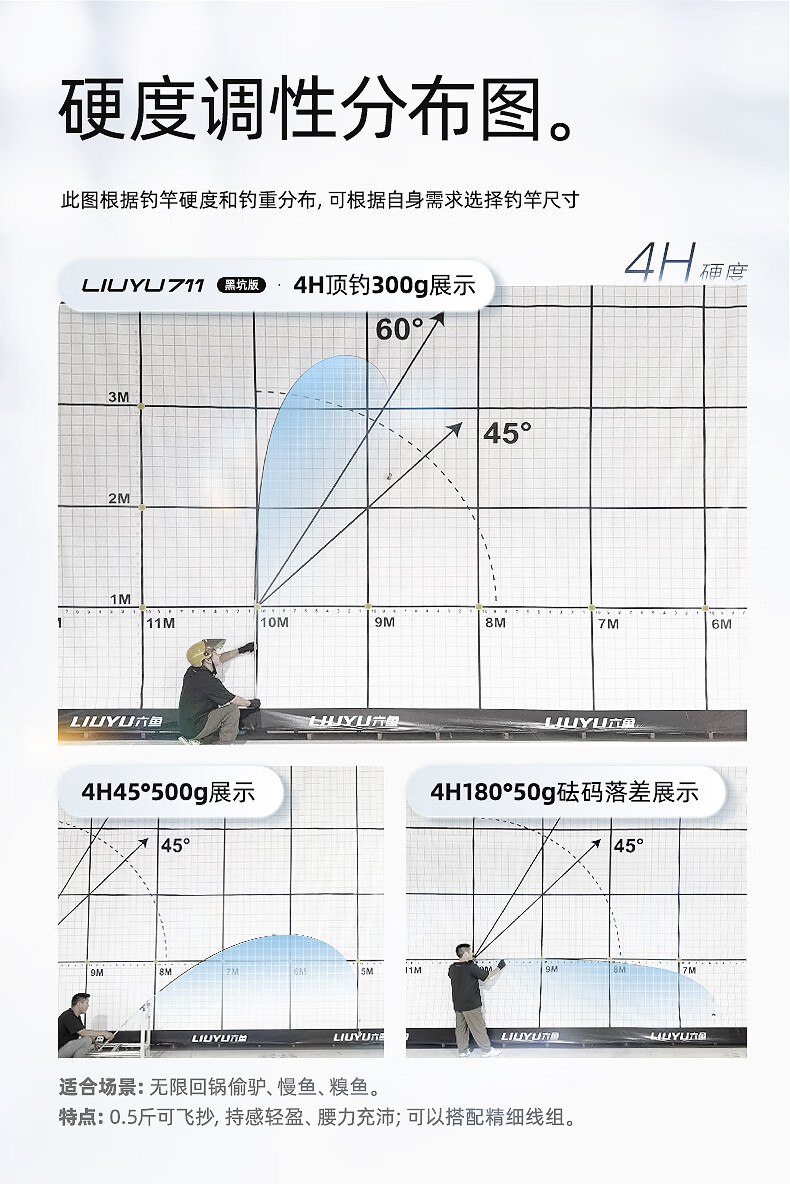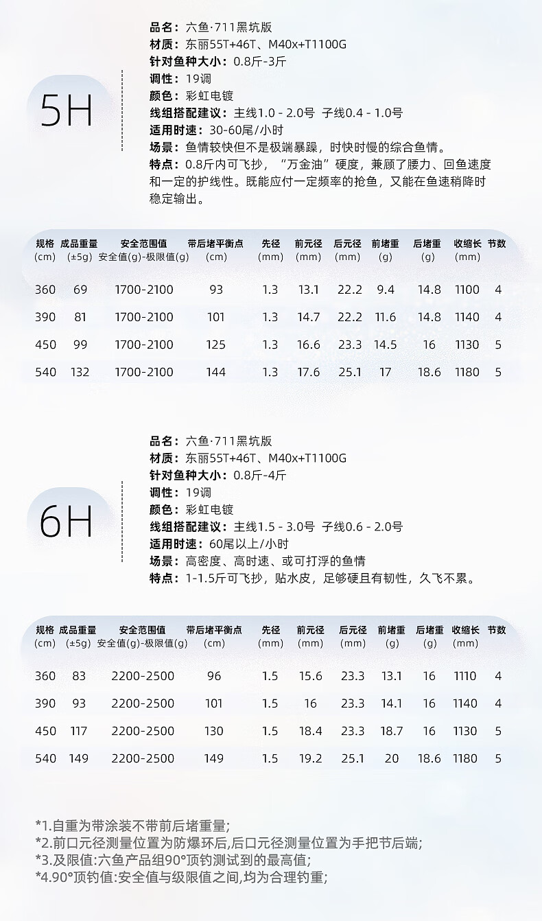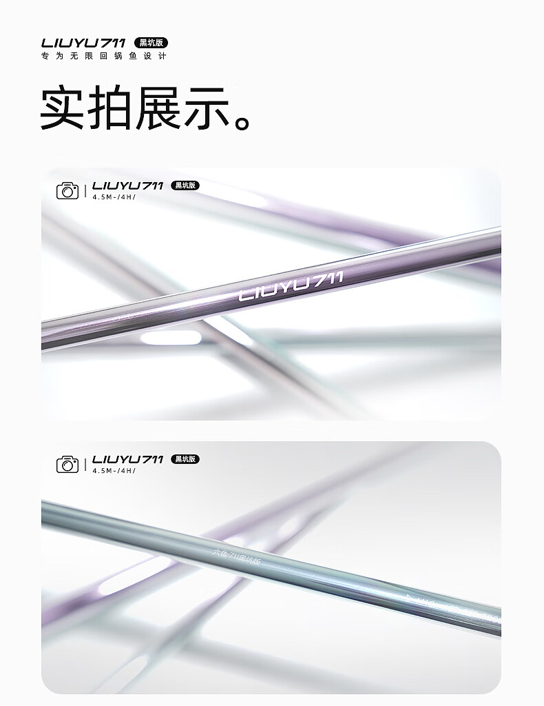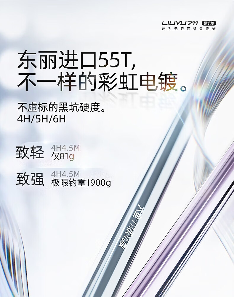 六鱼711黑坑版专为无限回锅鱼设计4H/5H/6H东丽55T黑坑手竿超轻碳素 4.5m 【6H】鲫/鲤/罗非2.0斤-4.0斤—东丽55T