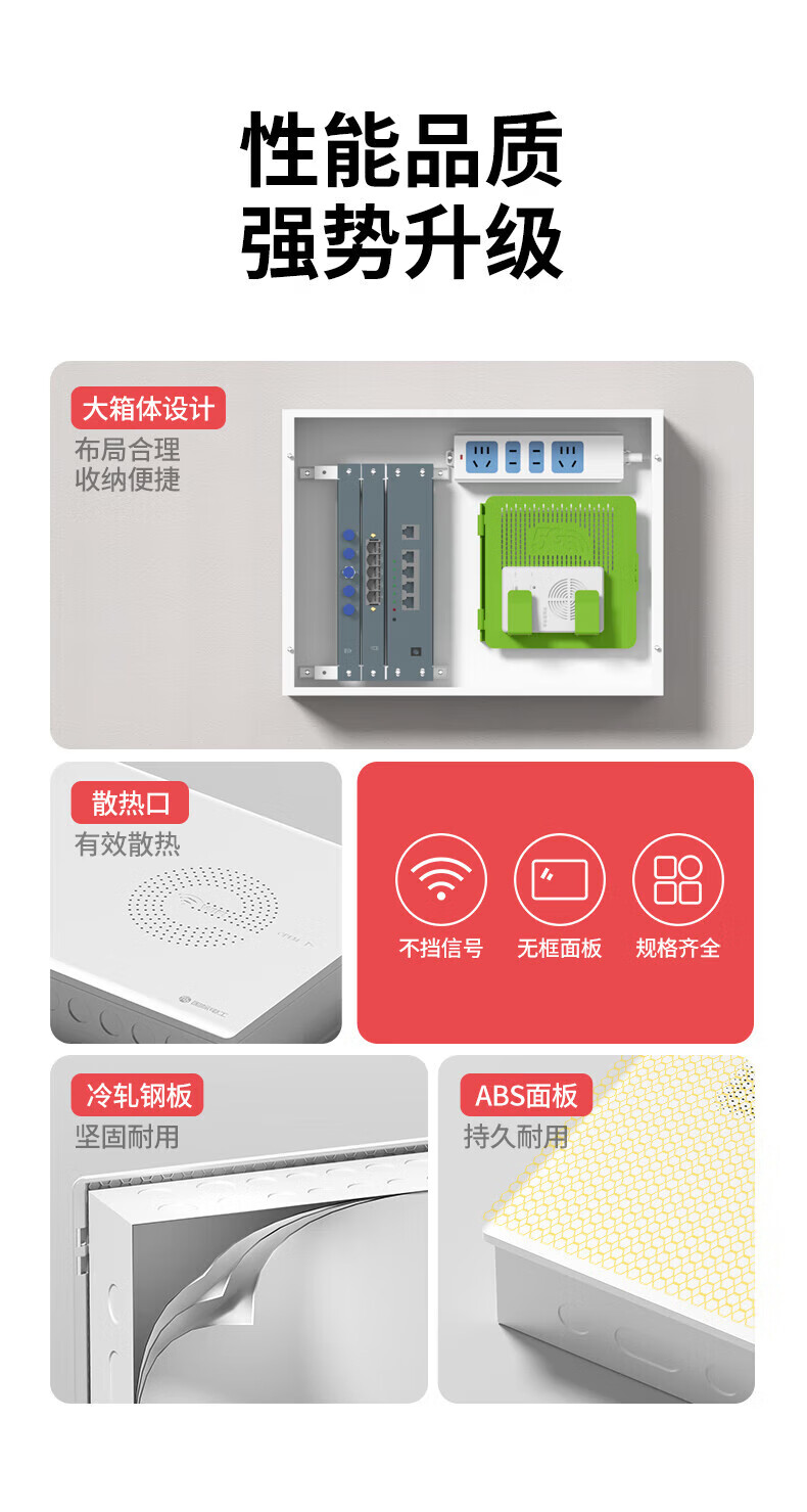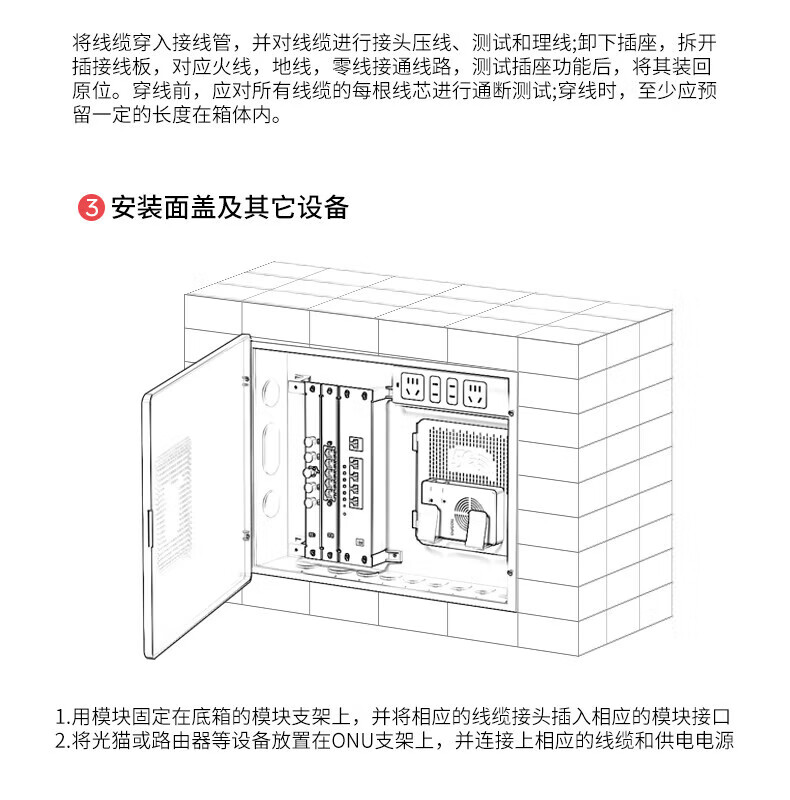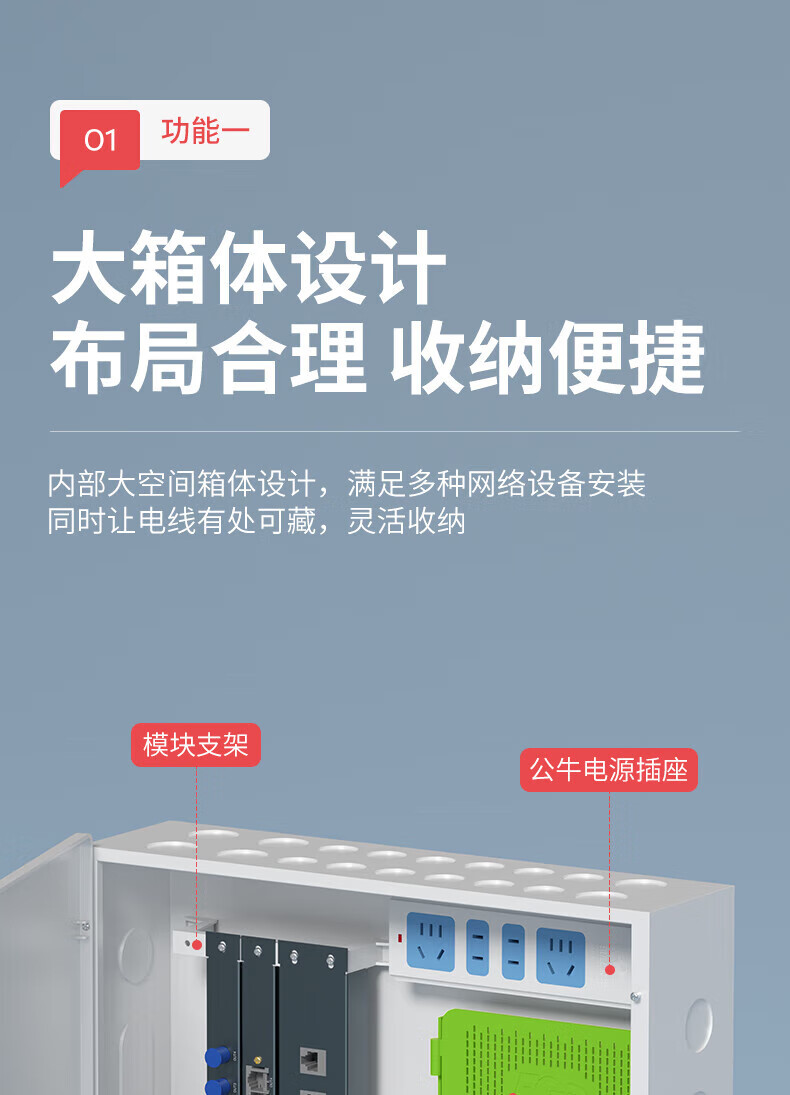 光纤箱家用多媒体箱弱电箱暗装入户信息箱网络集线箱布线箱配电箱 320*210*100空箱+模块架