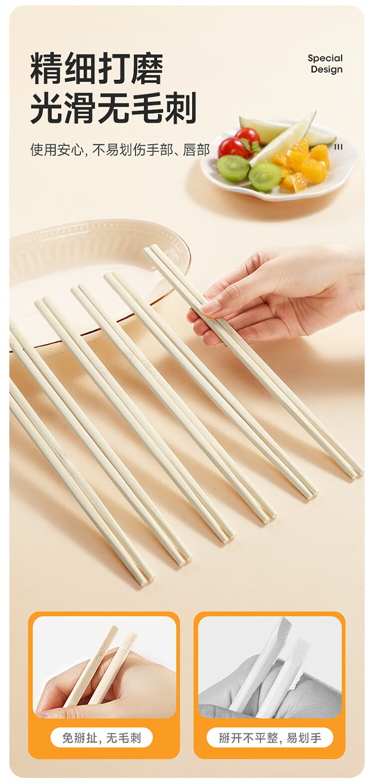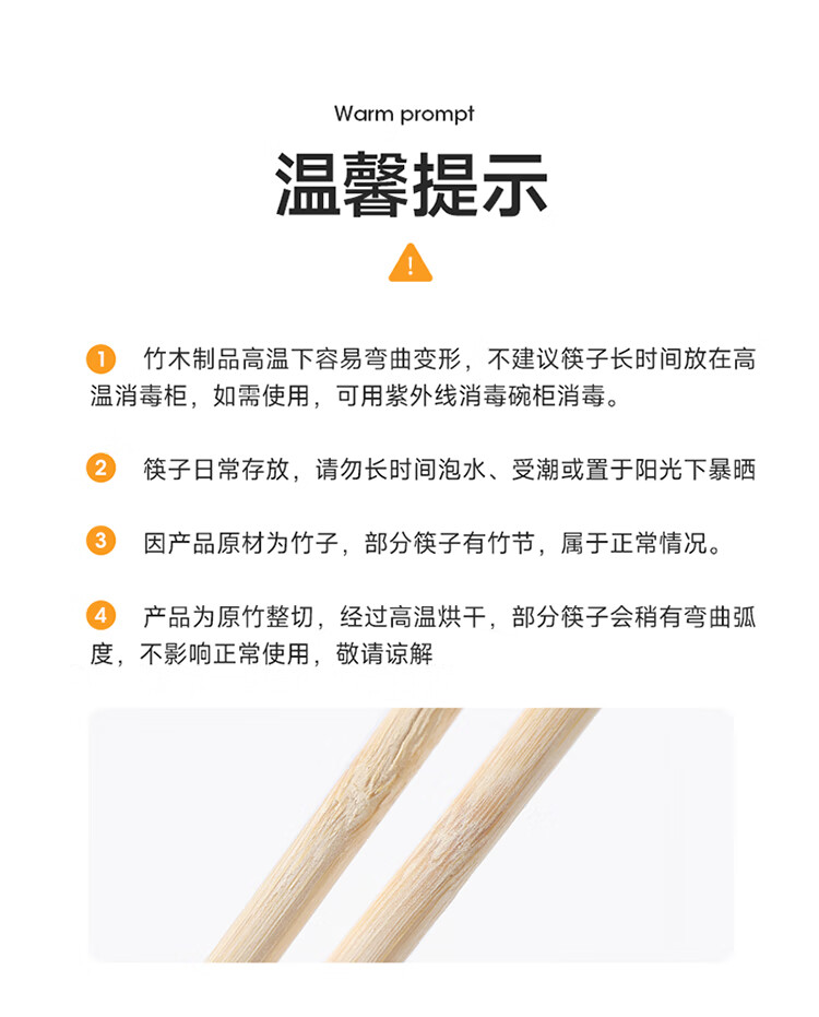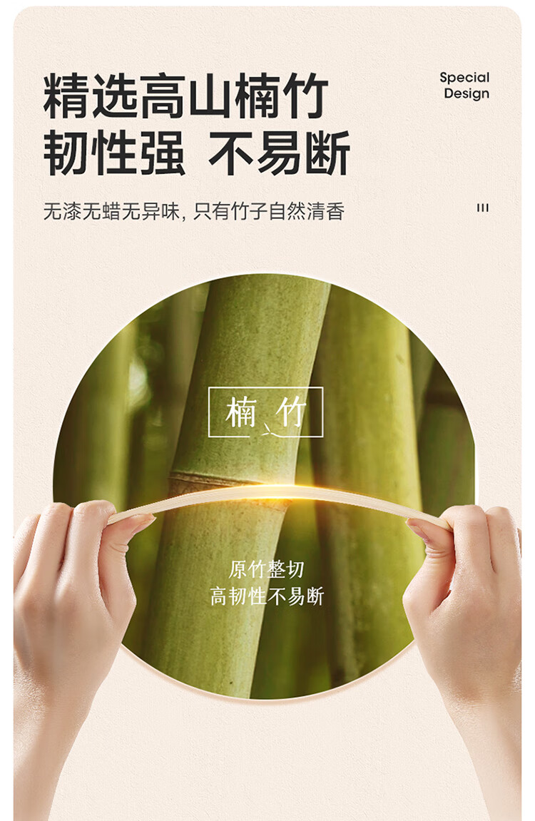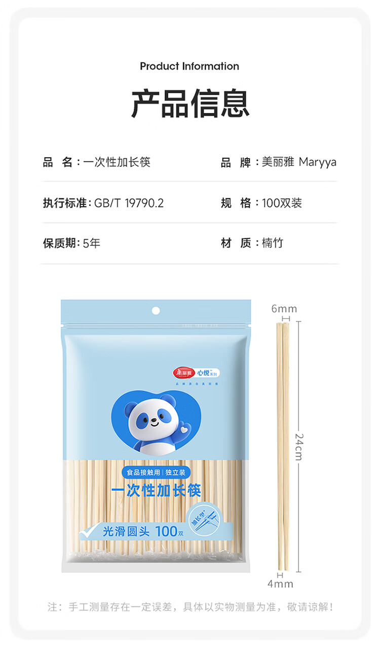 美丽雅一次性筷子 楠竹筷食品级加长独立包装家用野餐露营快餐打包餐具 【加长版】楠竹筷 100双