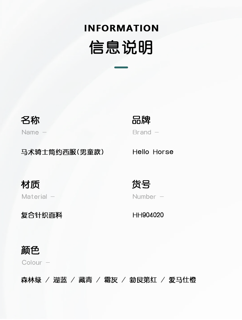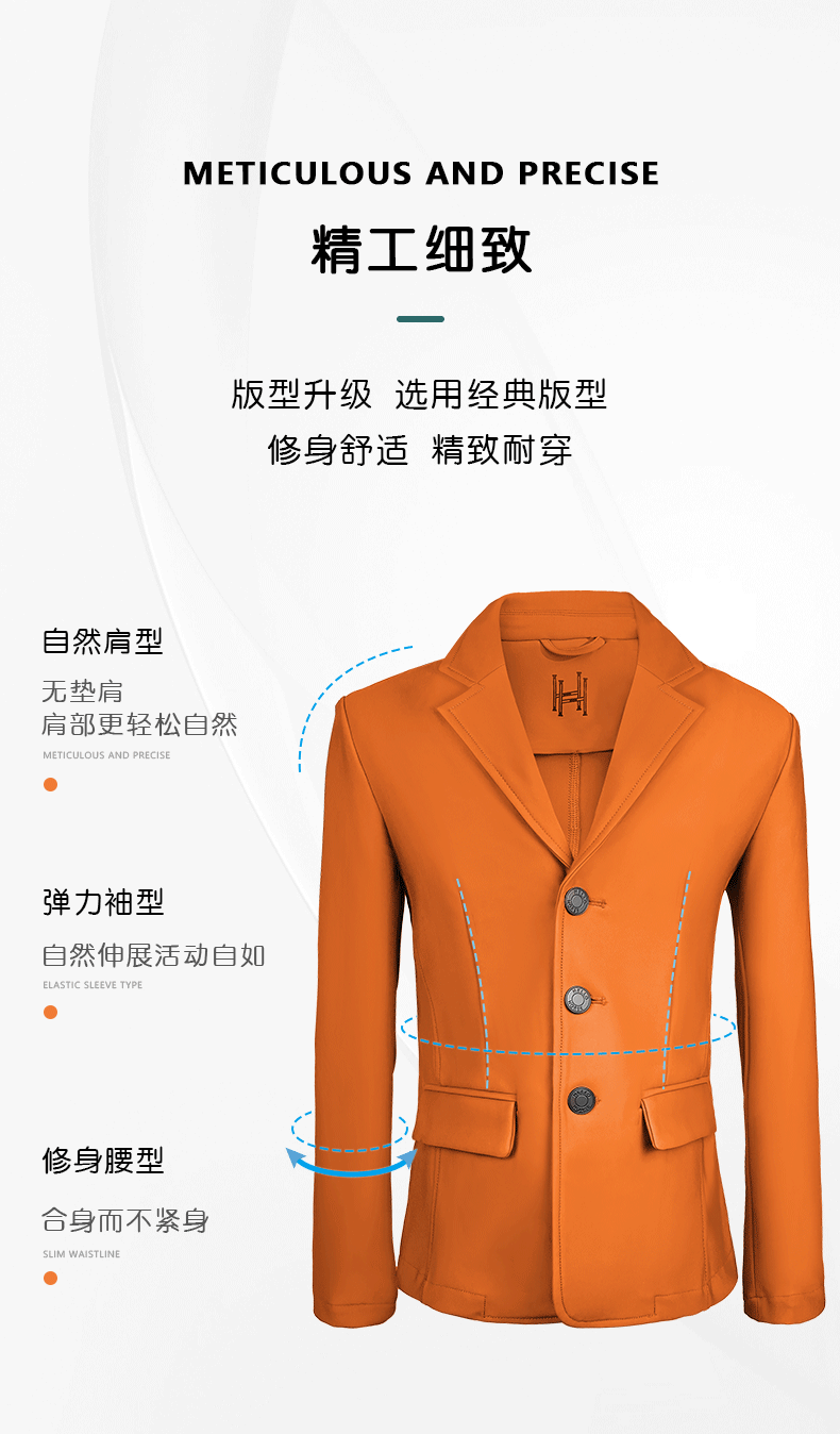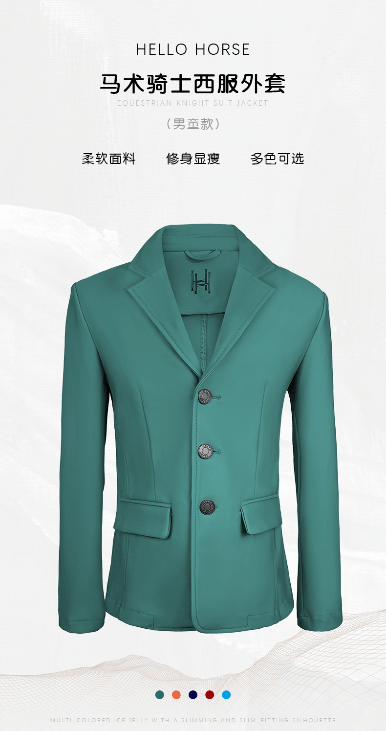 Hello Horse马术服骑士收腰弹力西服多色简约上衣马术外套骑马装备 湖蓝 130