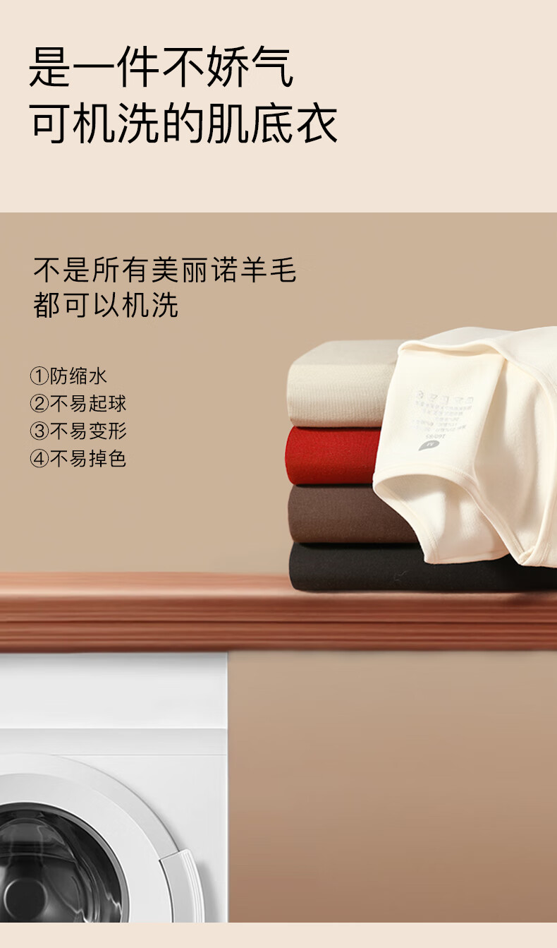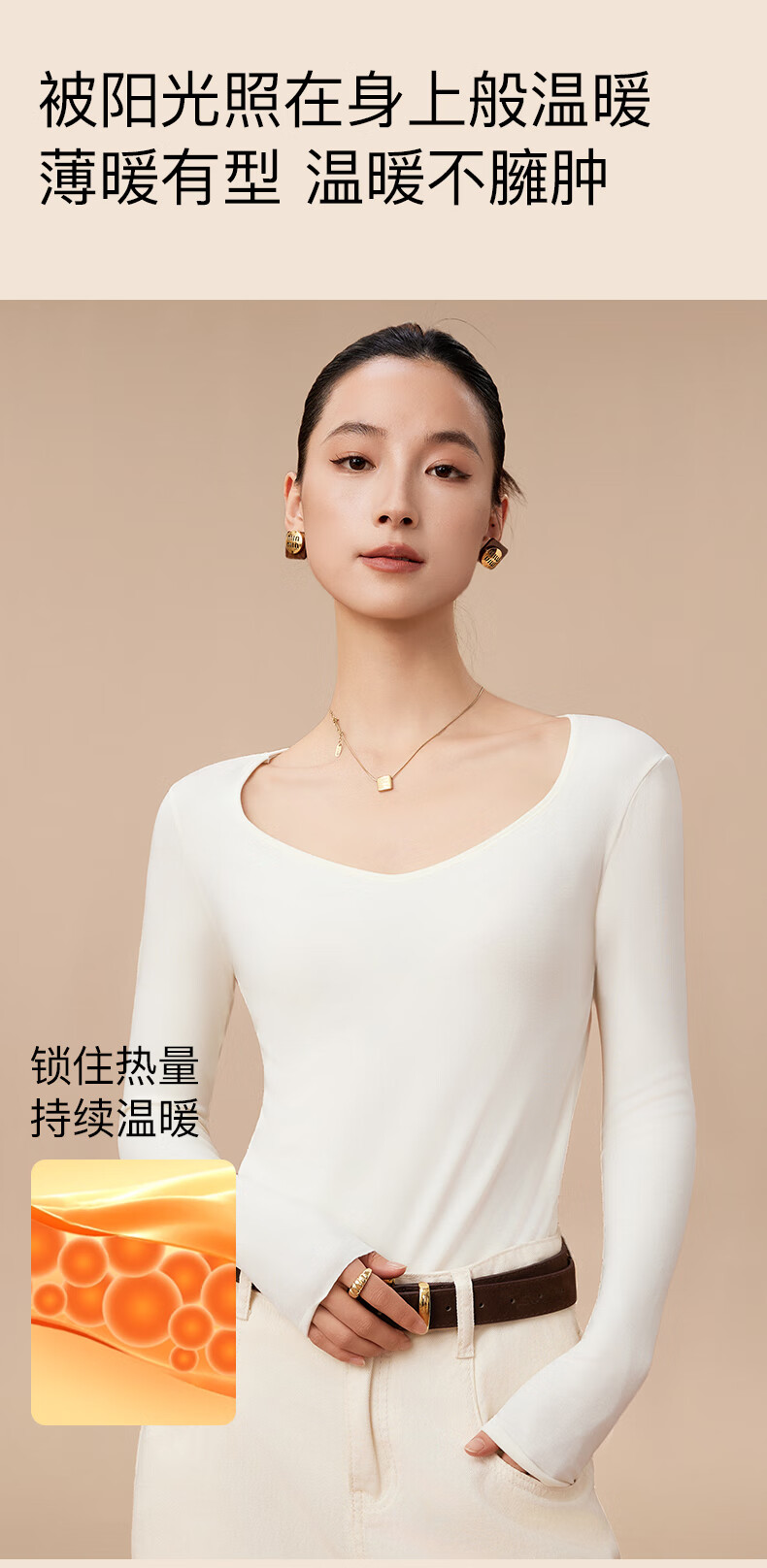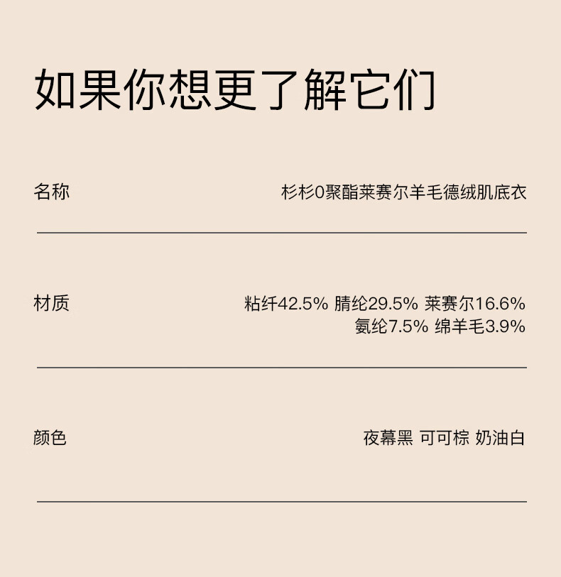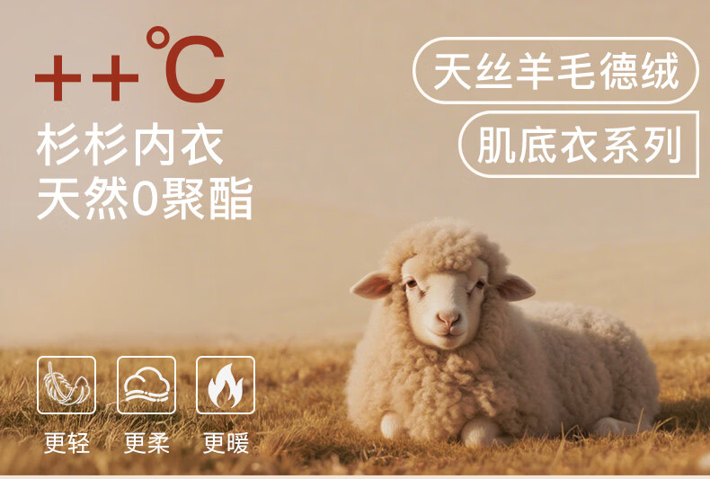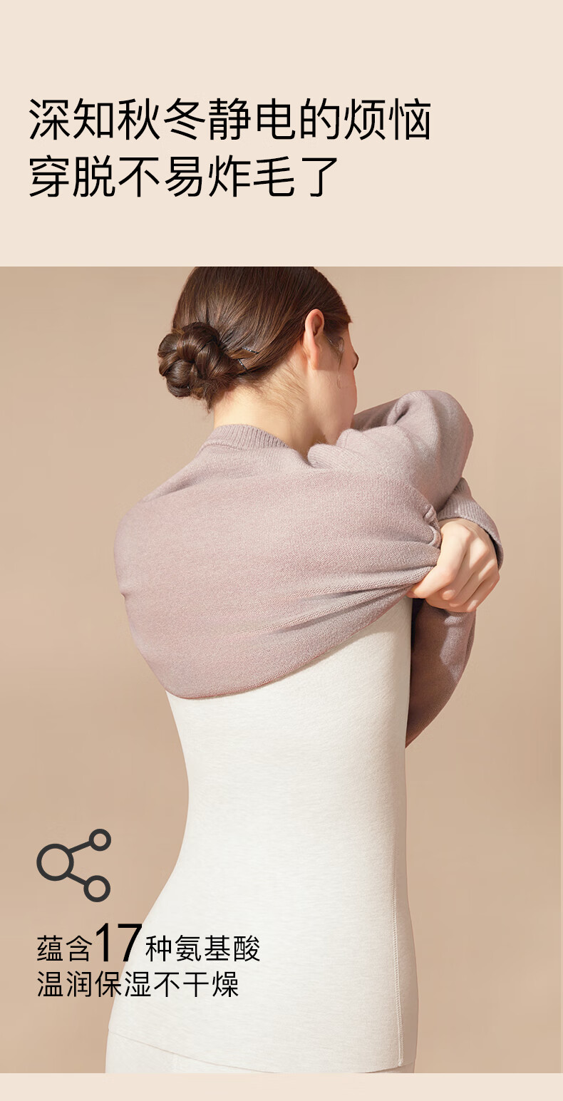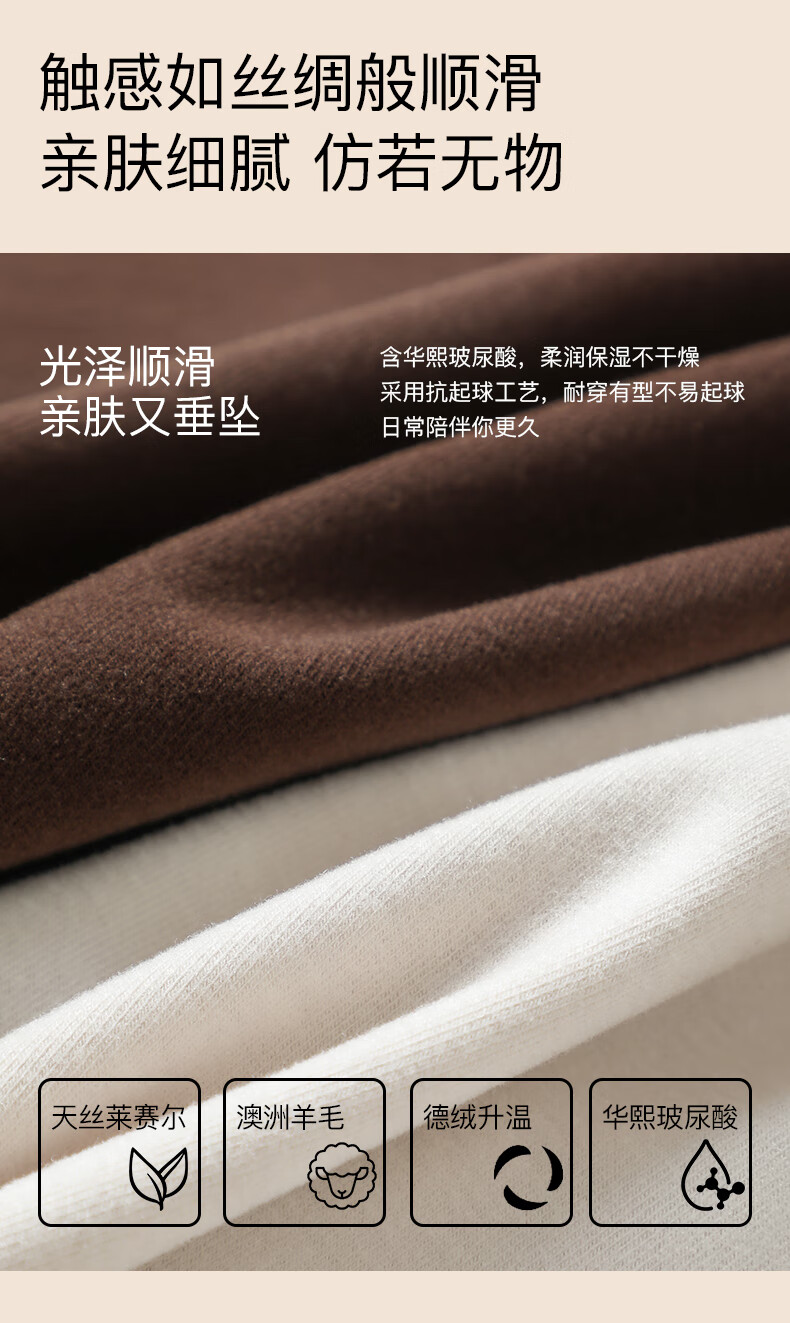 杉杉【0聚酯羊毛德绒发热】女保暖内衣25年新品加绒修身打底衫钻石领