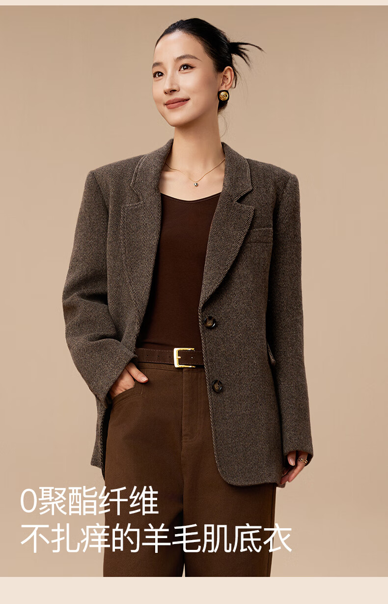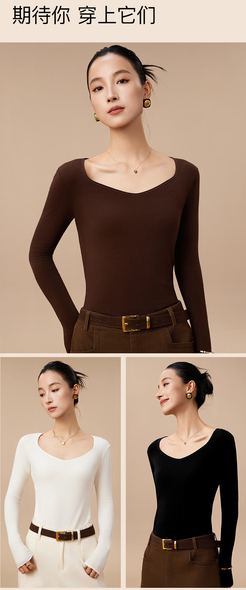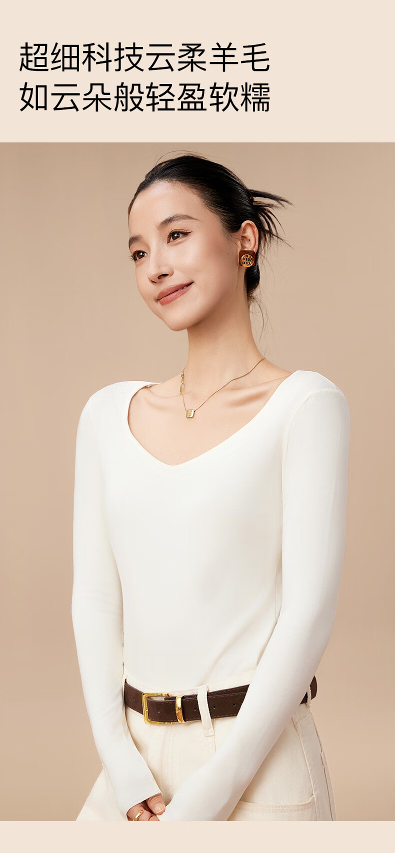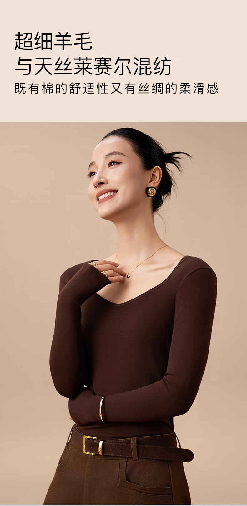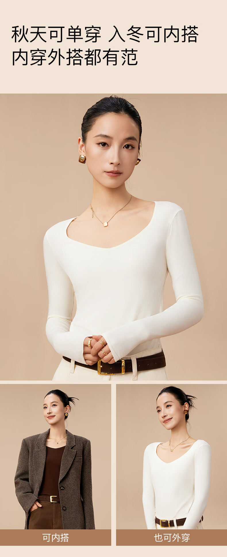 杉杉【0聚酯羊毛德绒发热】女保暖内衣25年新品加绒修身打底衫钻石领