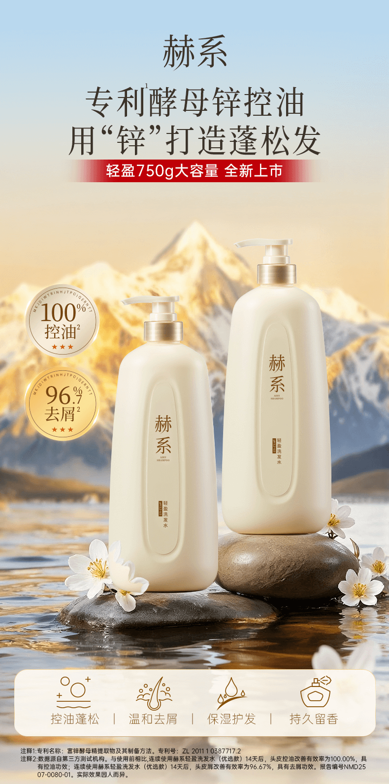 赫系轻盈洗发水超值大瓶实惠装囤货装750g 控油蓬松温和清洁持久留香