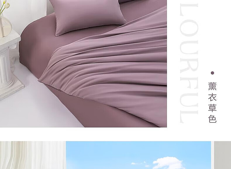 百丽丝出品床上四件套60S贡缎纯棉套件宿舍三件套床单被套 蒙利特安(薰衣草色) 床单款 (被套150*210cm)