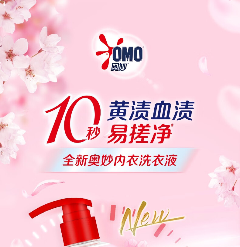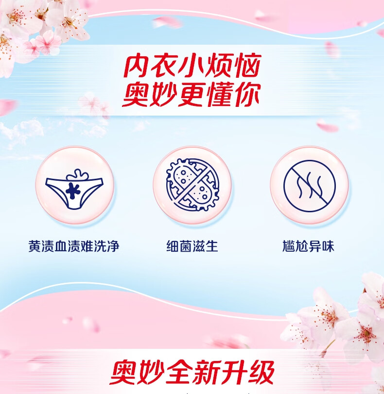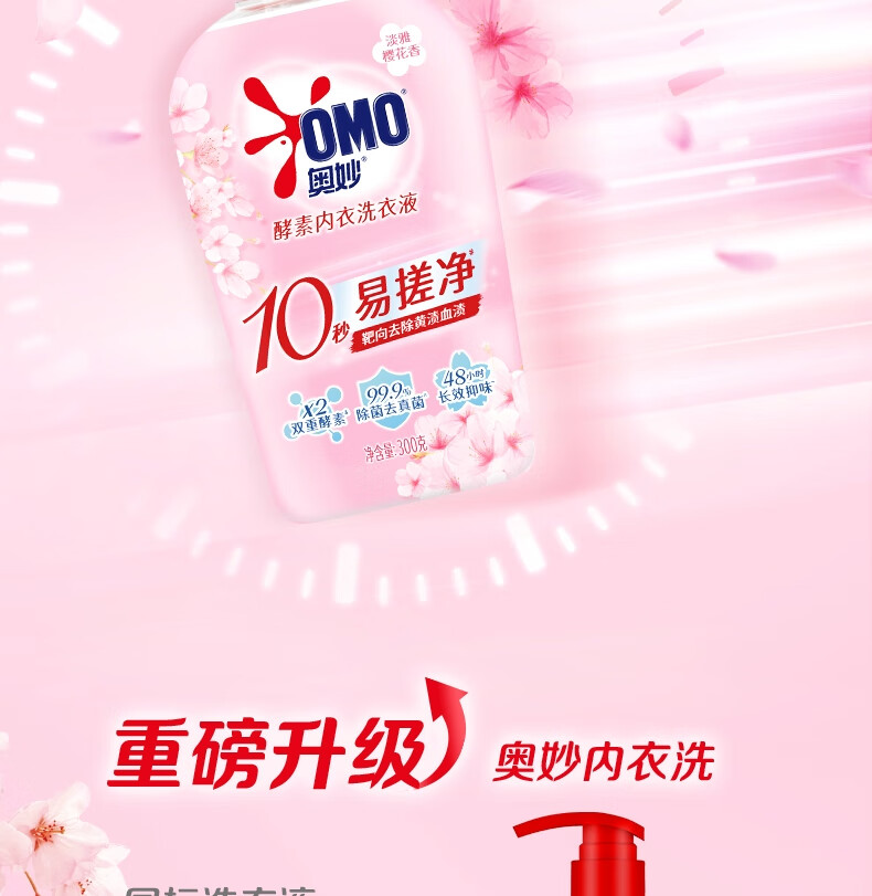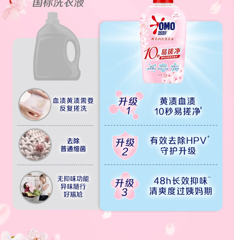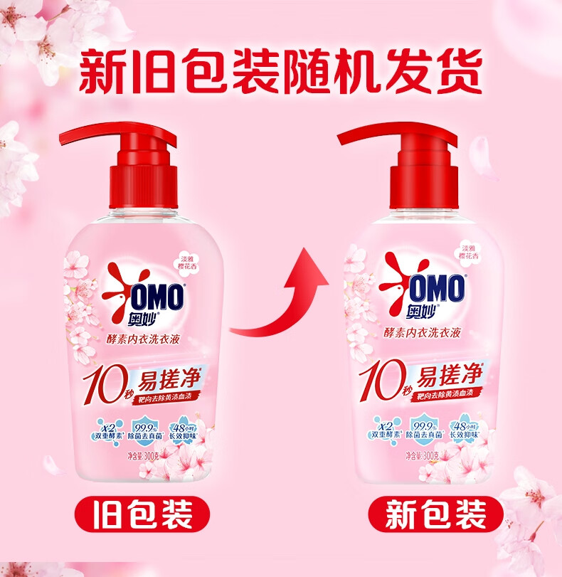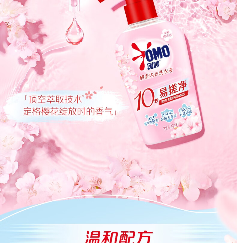 奥妙(OMO)内衣洗衣液内裤清洗液樱花300g*2 去血渍杀菌抑菌除螨