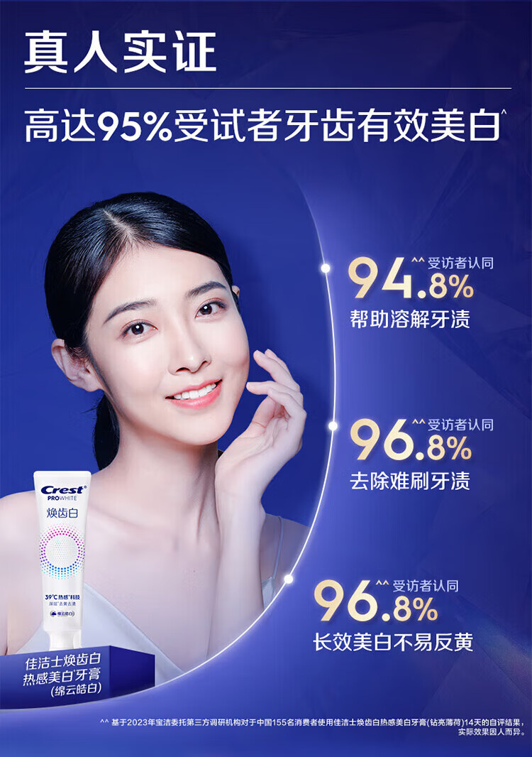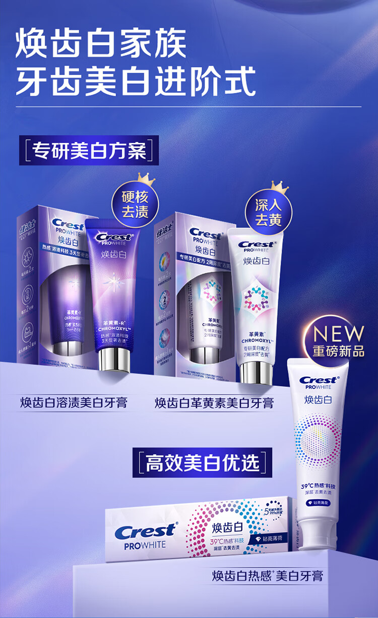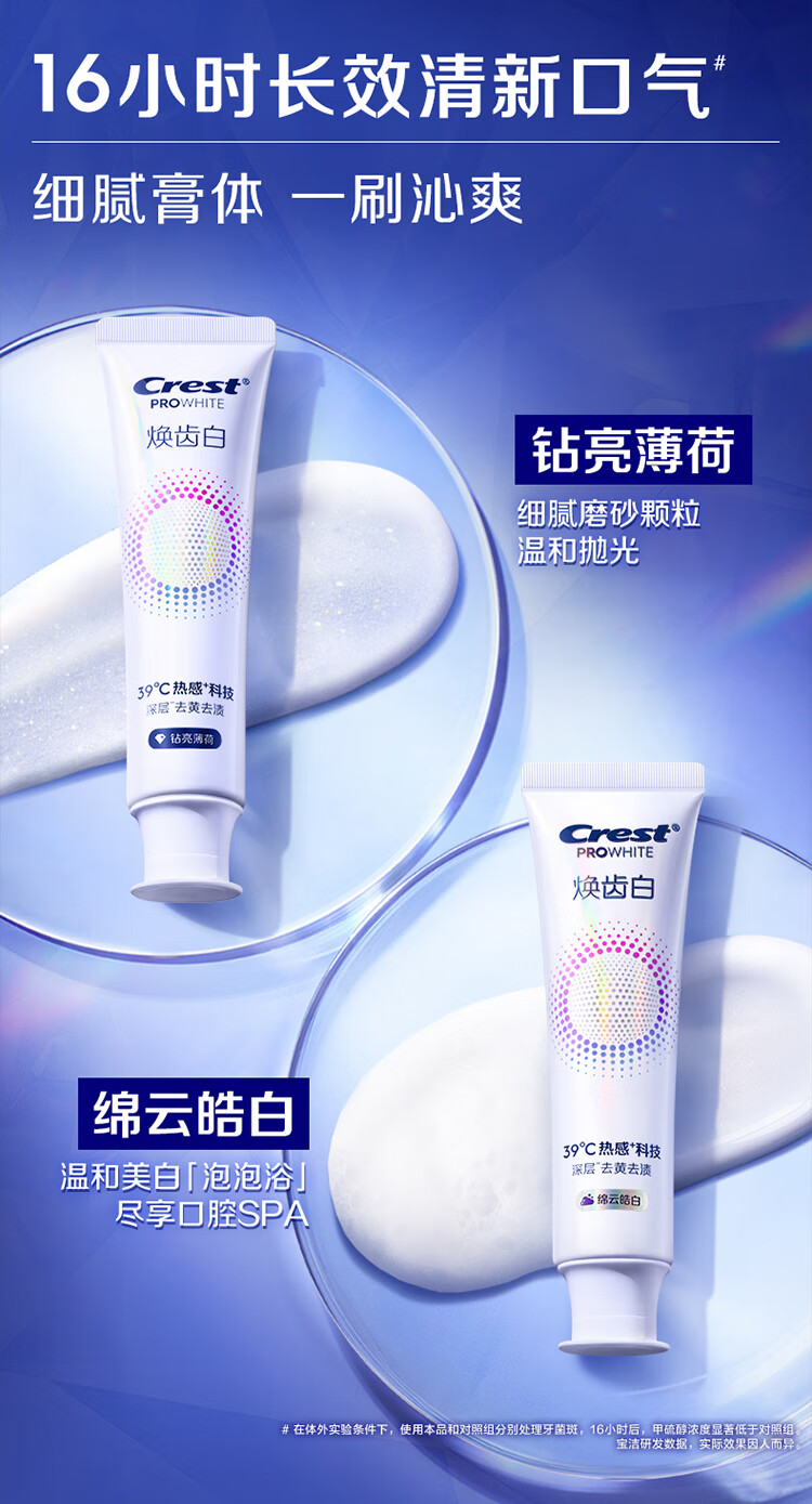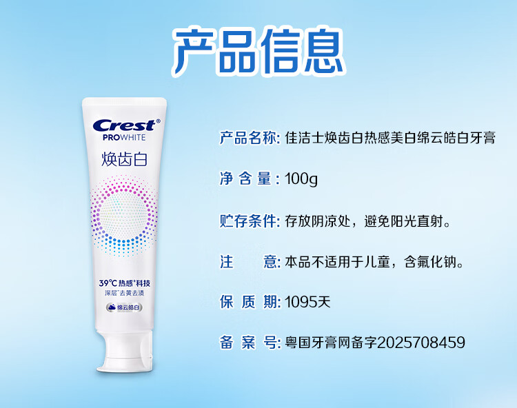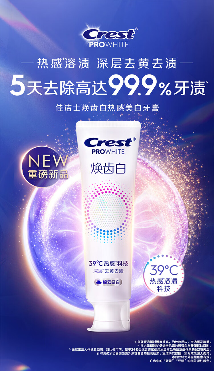 佳洁士焕齿白热感美白牙膏温和薄荷去黄去渍清新口气100g限时送家政