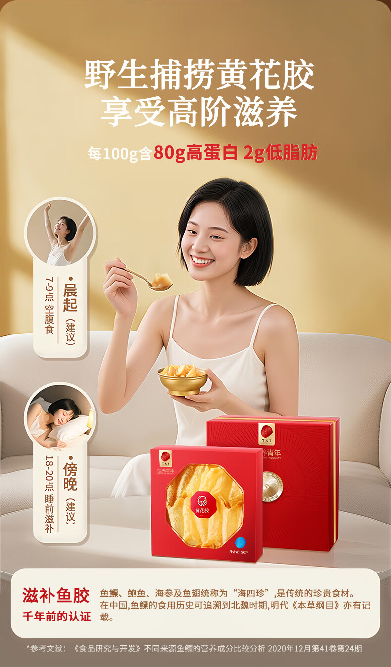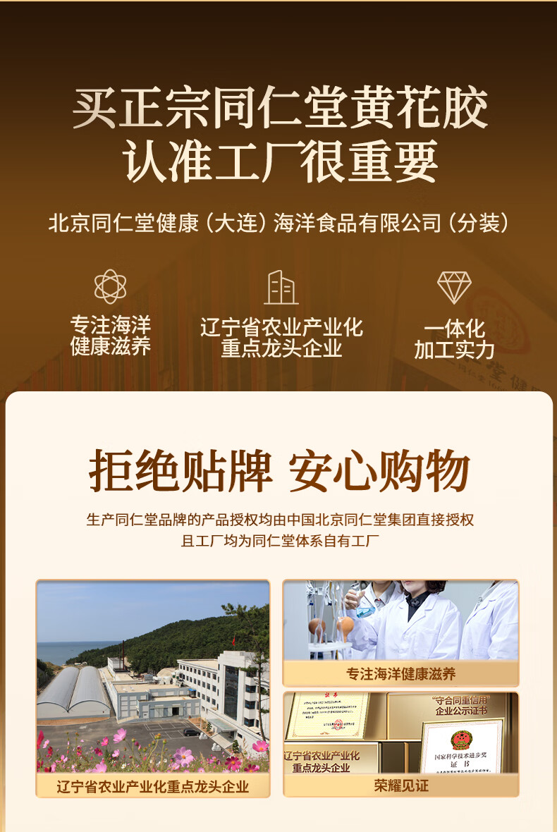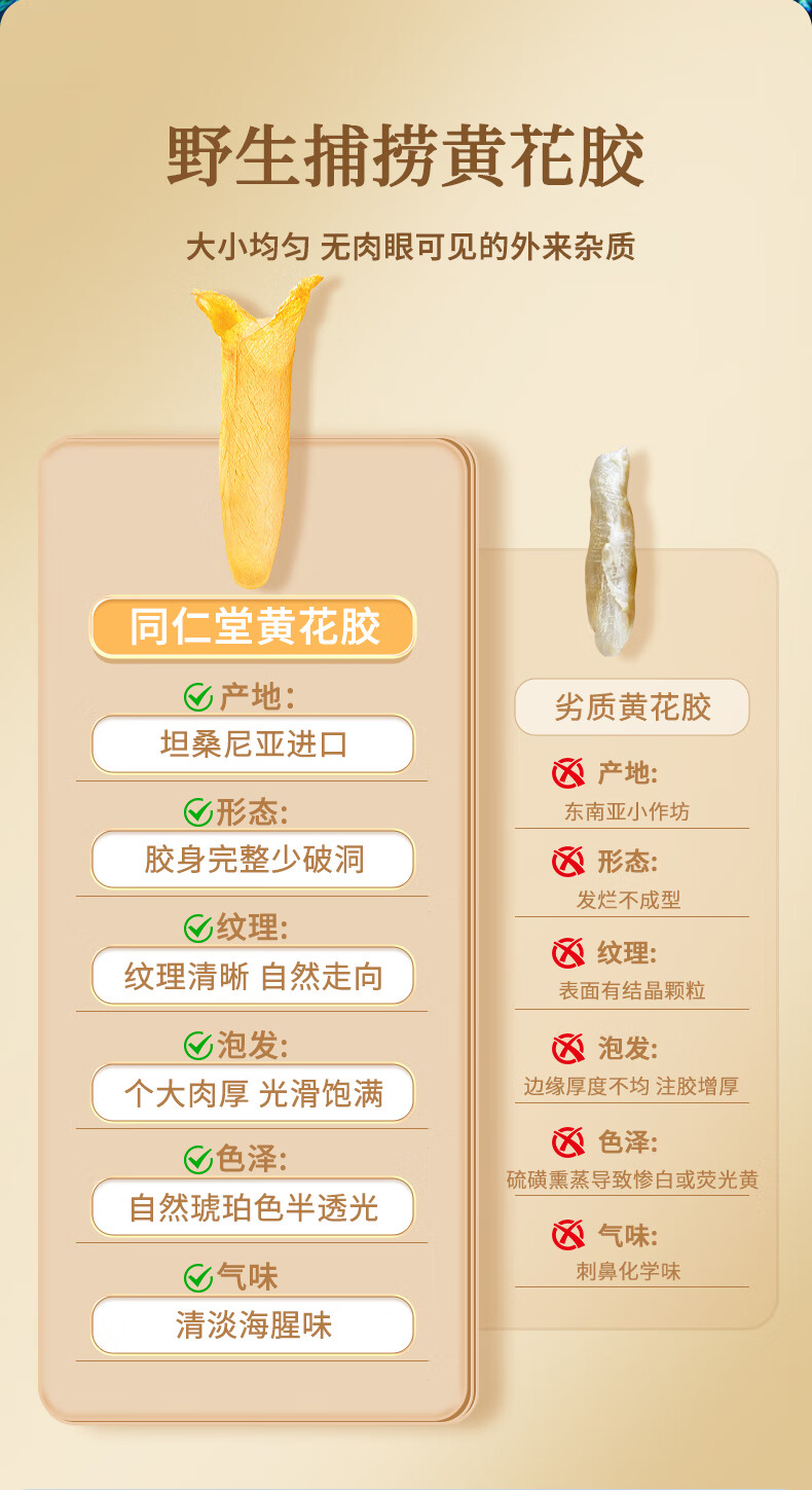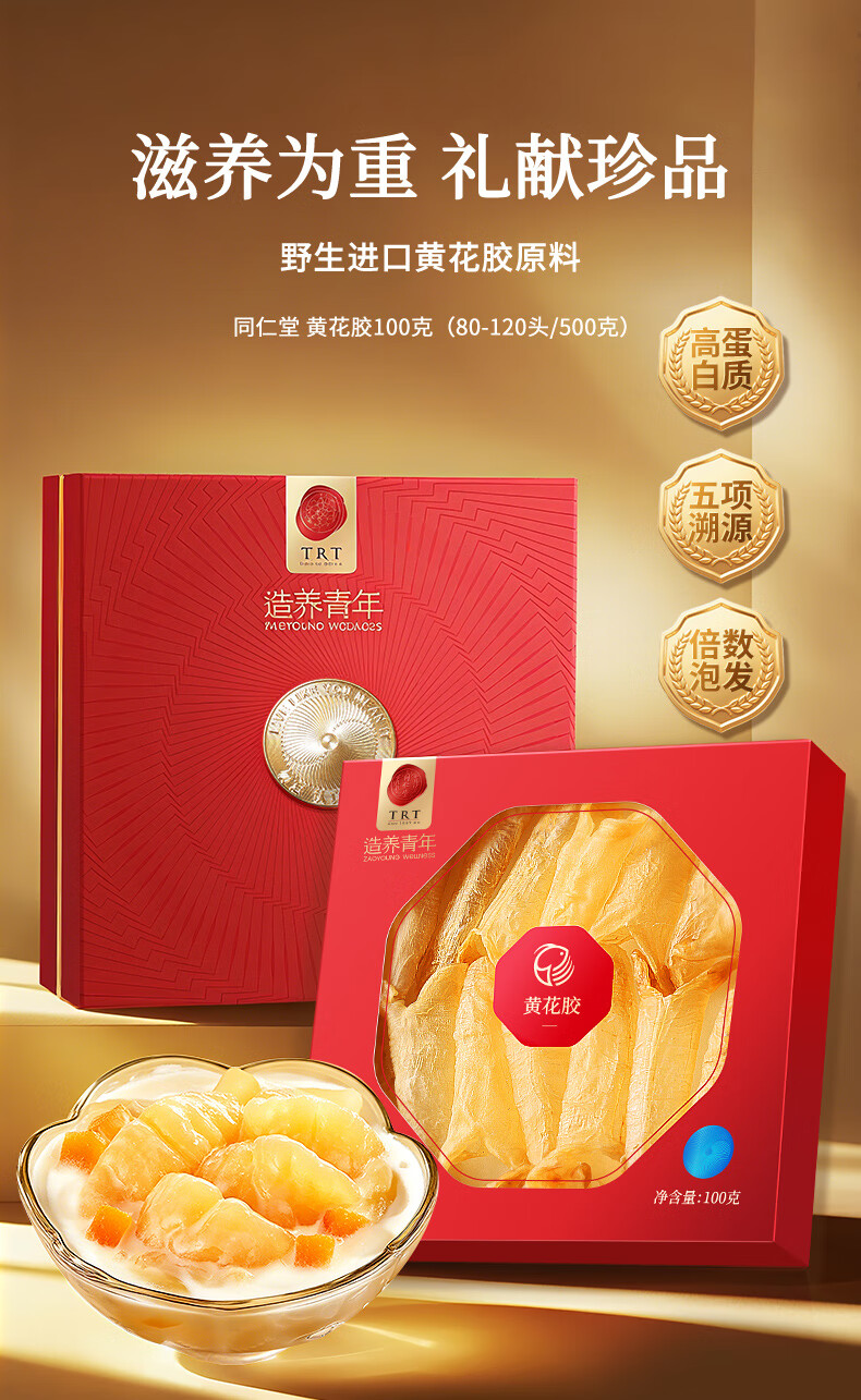 同仁堂品牌 北京同仁堂黄花鱼胶100g花胶干货送老人父母长辈高端礼物盒