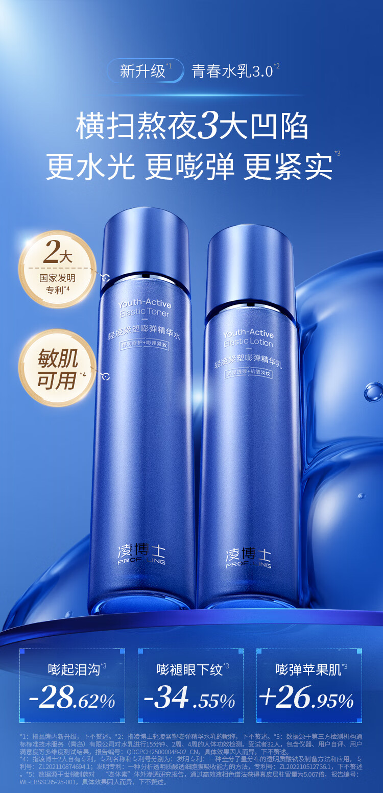 凌博士青春水乳3.0套装紧致舒缓修护抗皱全分子量玻尿酸生日礼物送女友 【重磅升级】青春水乳3.0