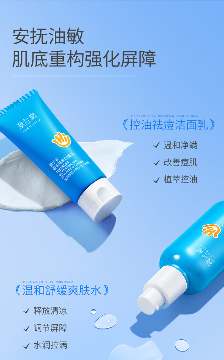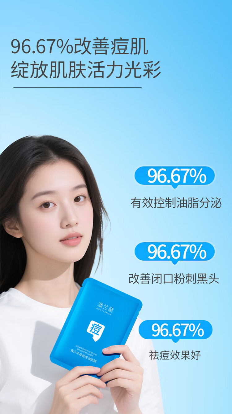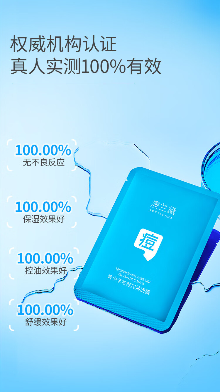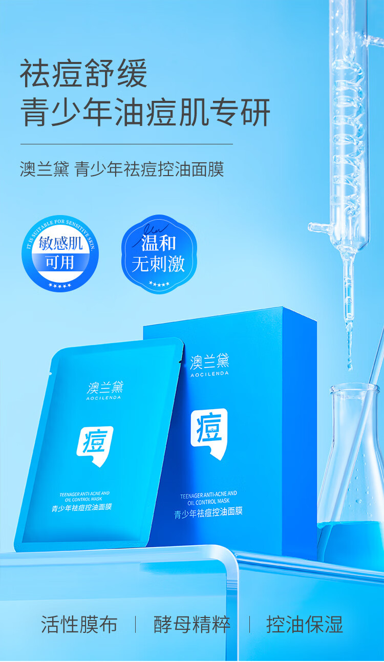 澳兰黛(AOCILENDA)青少年控油祛痘面膜男女青春期保湿滋润洗面奶护肤品套装秋冬 青少年祛痘控油面膜10片装