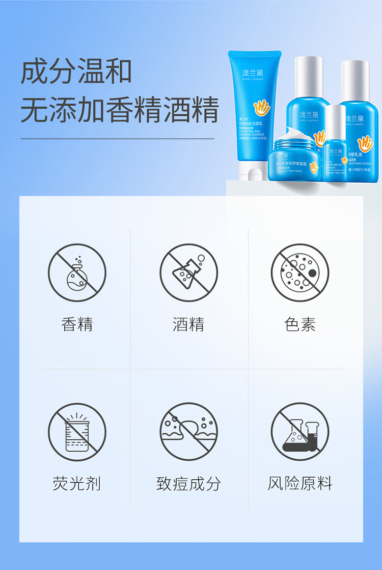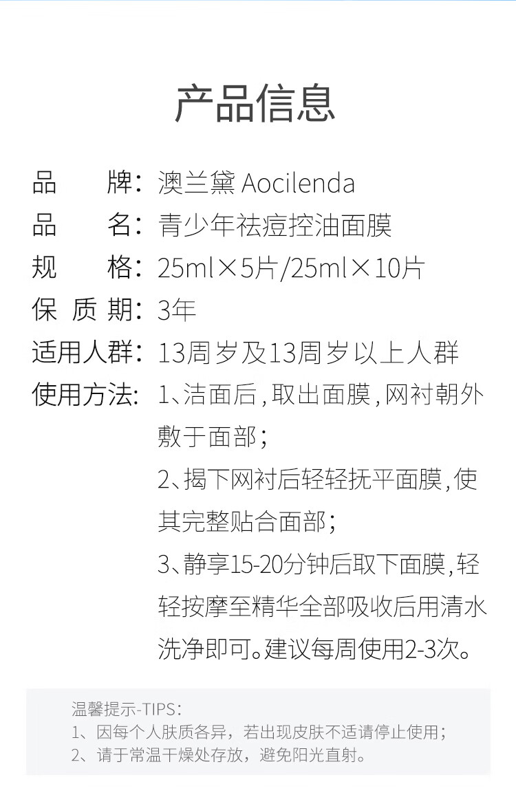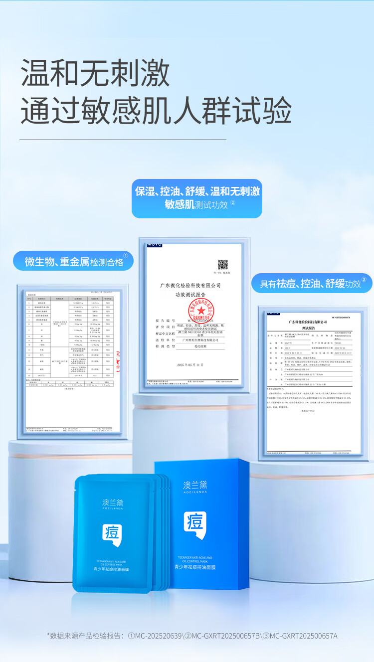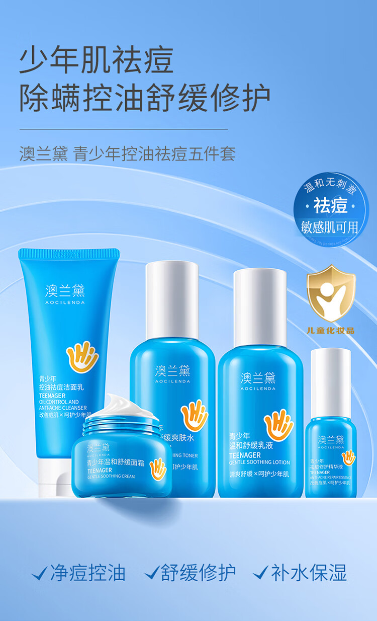 澳兰黛(AOCILENDA)青少年控油祛痘面膜男女青春期保湿滋润洗面奶护肤品套装秋冬 青少年祛痘控油面膜10片装
