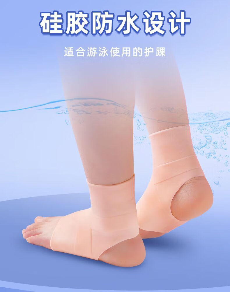 通用脚腕扭伤护具硅胶游泳护踝防崴脚踝保护套固定防裂防水扭伤护 肤色单只【左右通用】