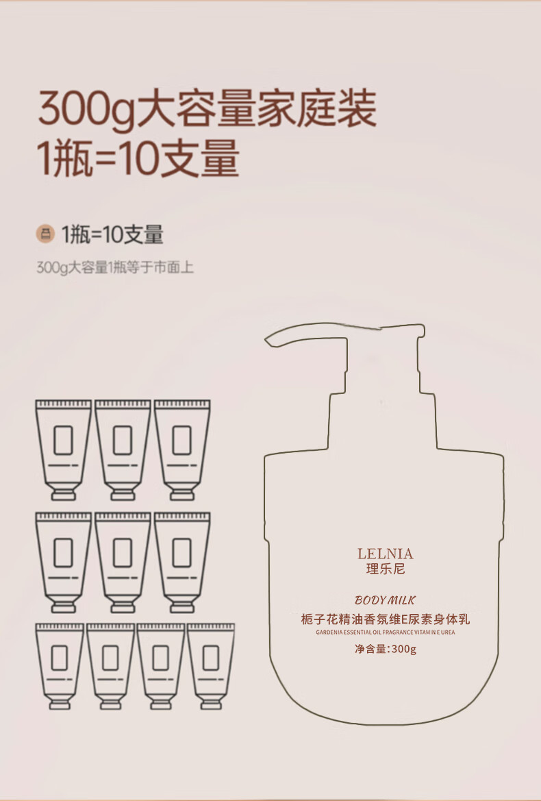 Lelnia栀子花身体乳保湿补水干燥皮肤润肤乳四季通用 【3瓶组合装】栀子花+玫瑰+茉莉身体乳300g