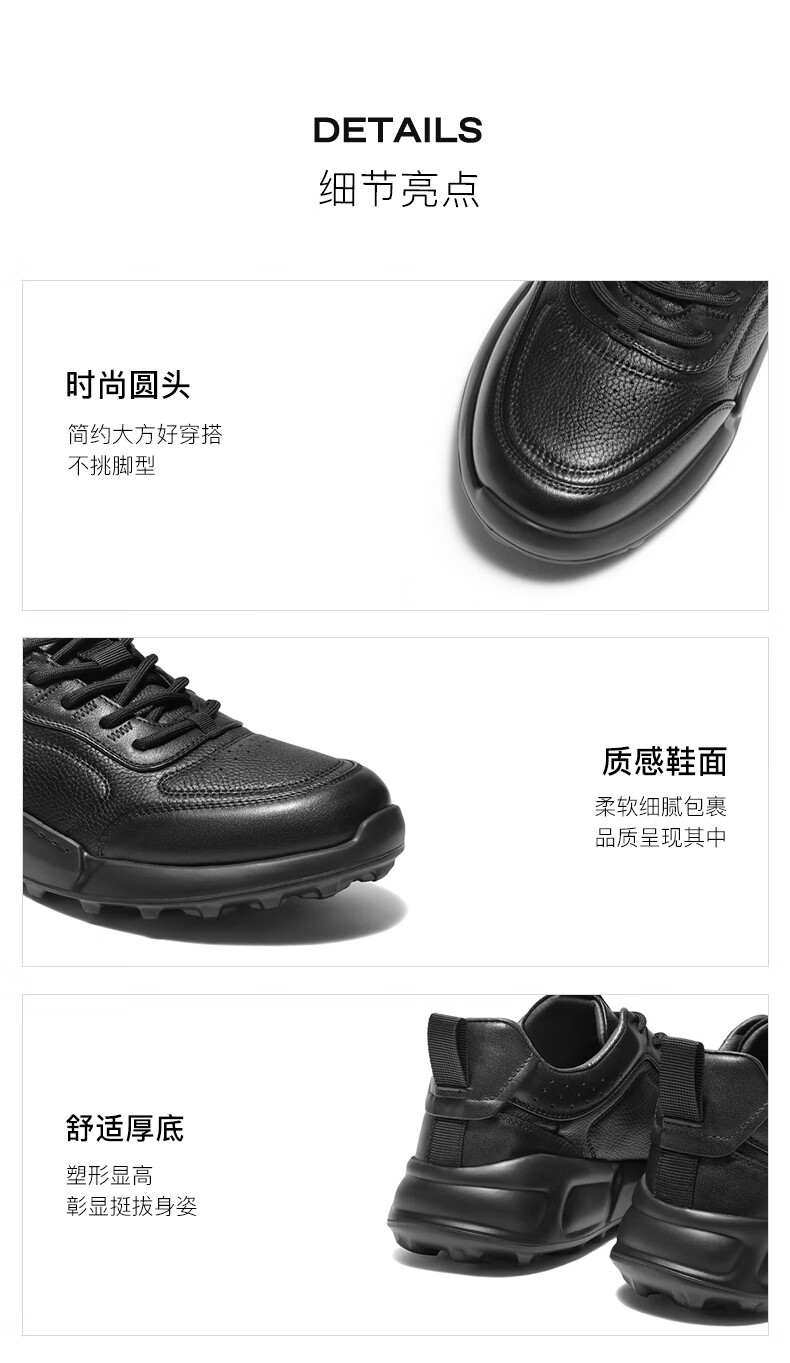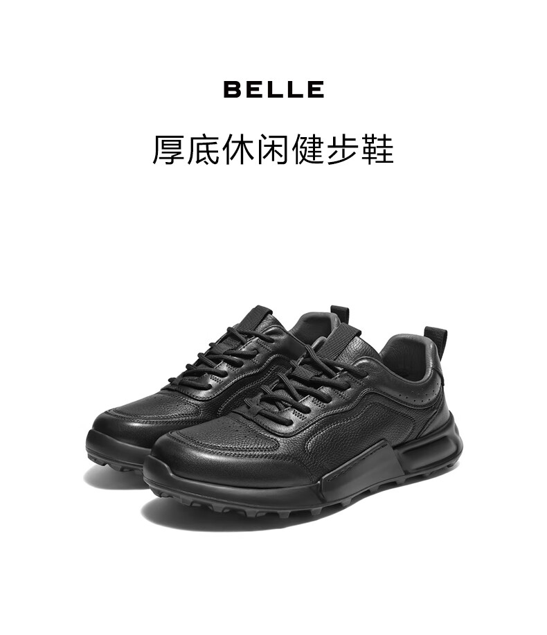百丽厚底增高健步鞋男鞋25冬新商场同款休闲运动鞋8XJ01DM5 黑色-单里 41 (255mm)