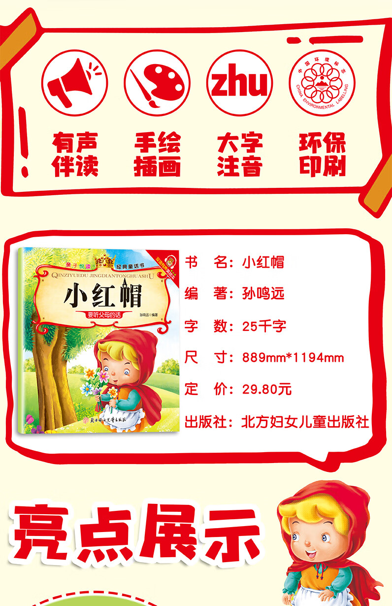 小红帽亲子悦读经典童话书启蒙早教益智读物幼儿童经典绘本儿童睡前故事