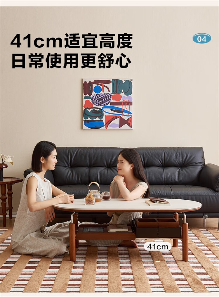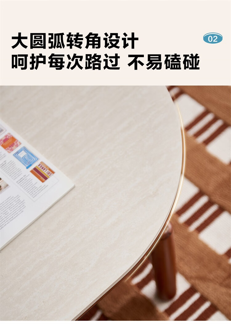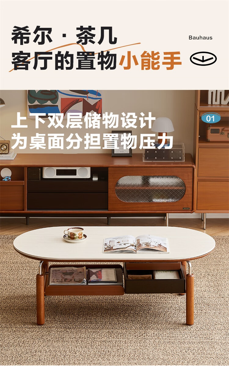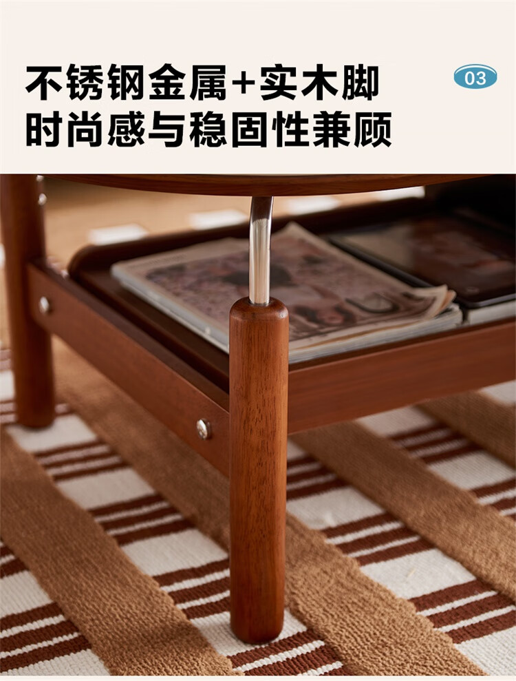 全友家居中古岩板茶几客厅实木腿置物茶台小桌子小户型精致沙发边几 【洞石岩板 | 双层储物款】希尔茶几