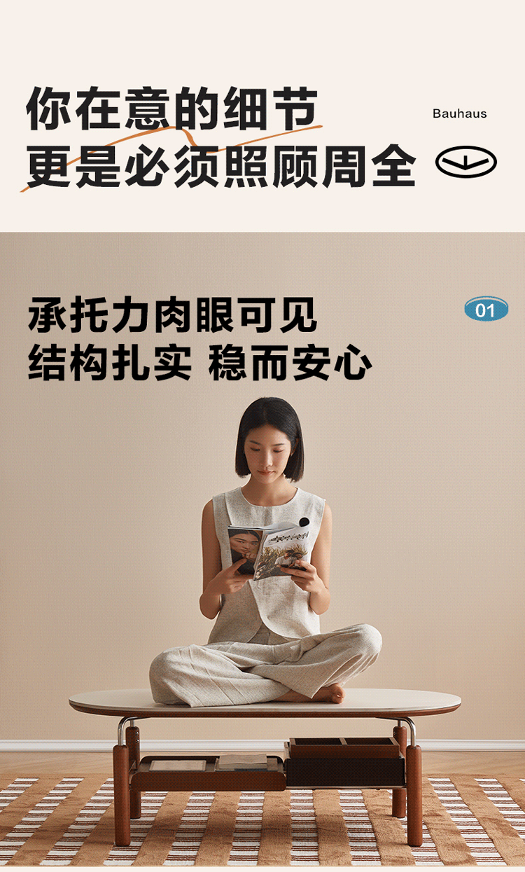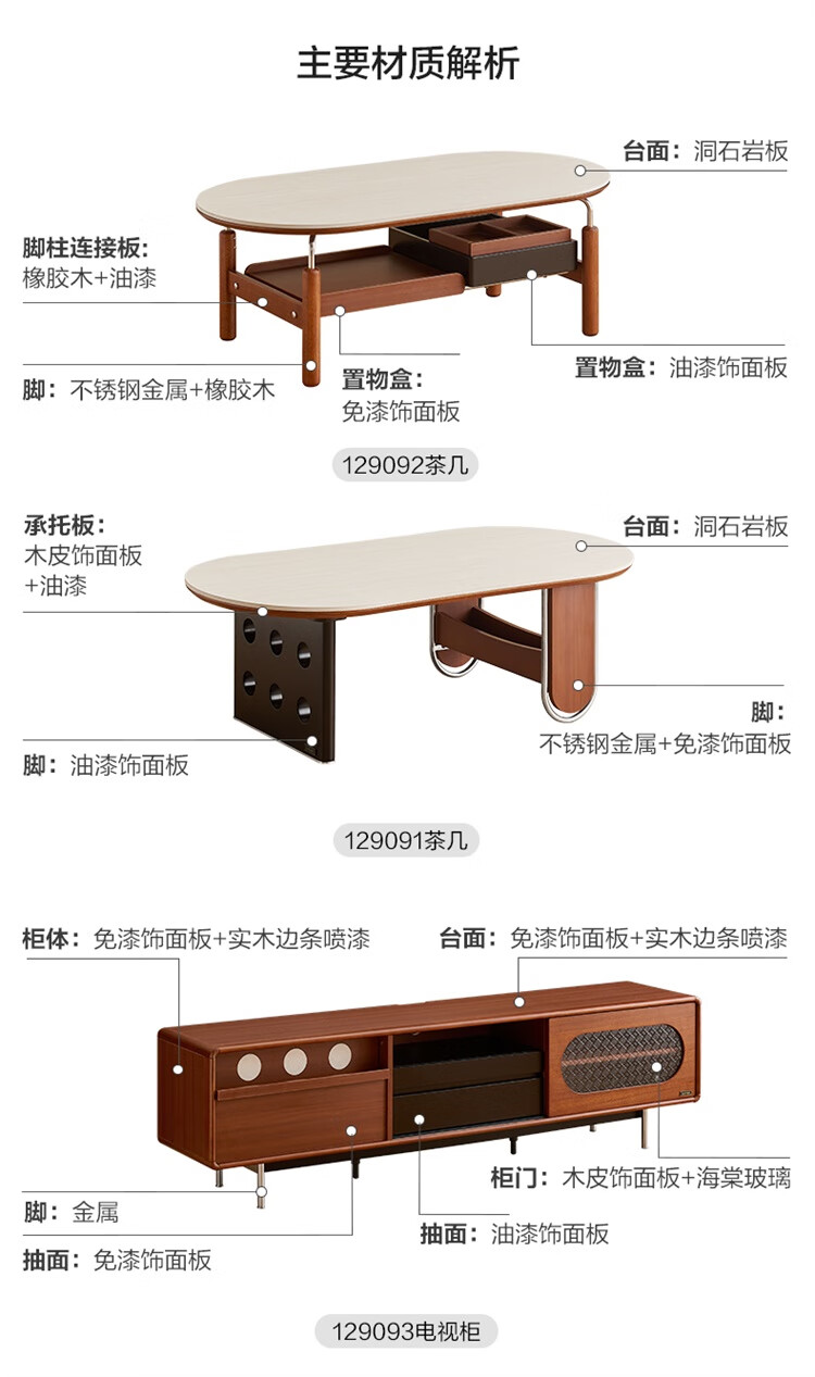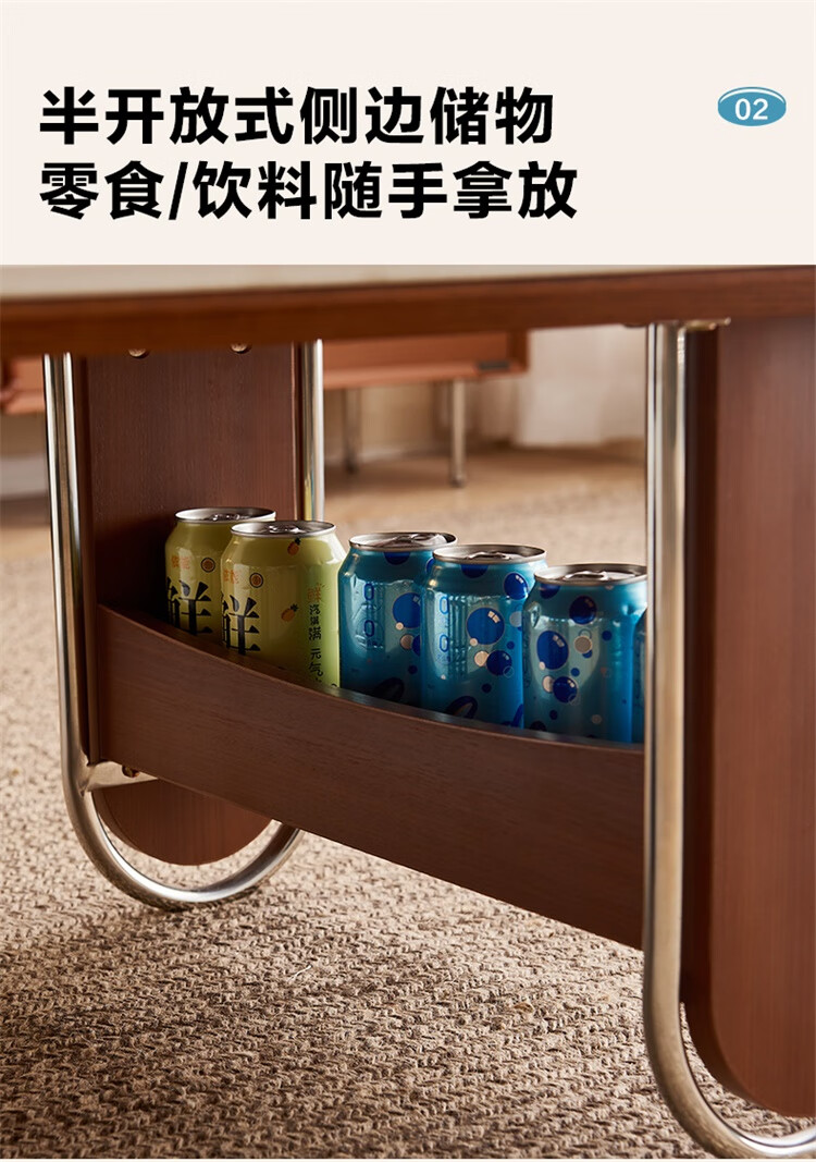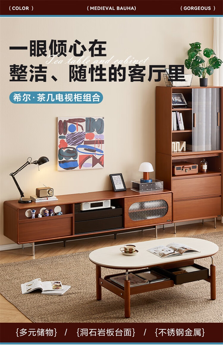 全友家居中古岩板茶几客厅实木腿置物茶台小桌子小户型精致沙发边几 【洞石岩板 | 双层储物款】希尔茶几