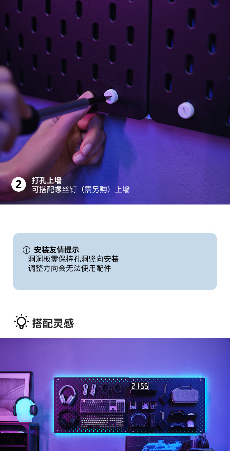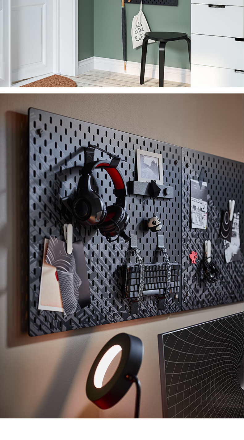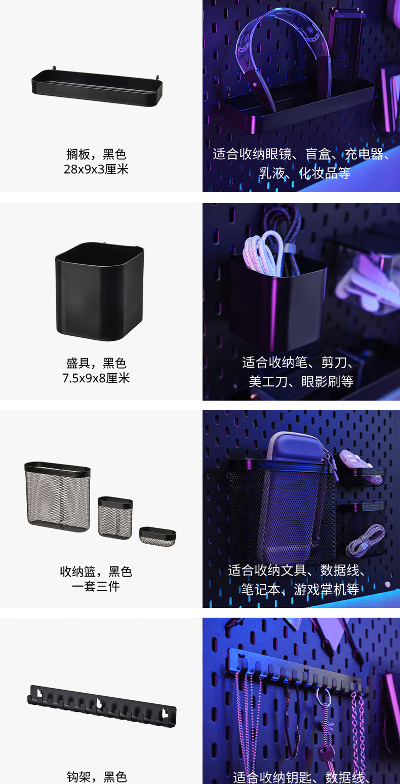宜家(IKEA)SKADIS斯考迪斯洞洞板墙面书桌收纳墙学生宿舍 小钉板组合+篮+夹子