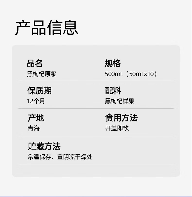河西女子黑枸杞原浆500ml*6礼品盒 青海黑枸杞鲜果鲜榨不添加送长辈礼物