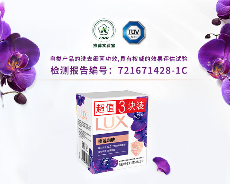 力士排浊除菌香皂幽莲魅肤洁面润肤淡雅香氛肥皂沐浴洗脸通用型 【除菌香皂】恒久嫩肤100g*3块装