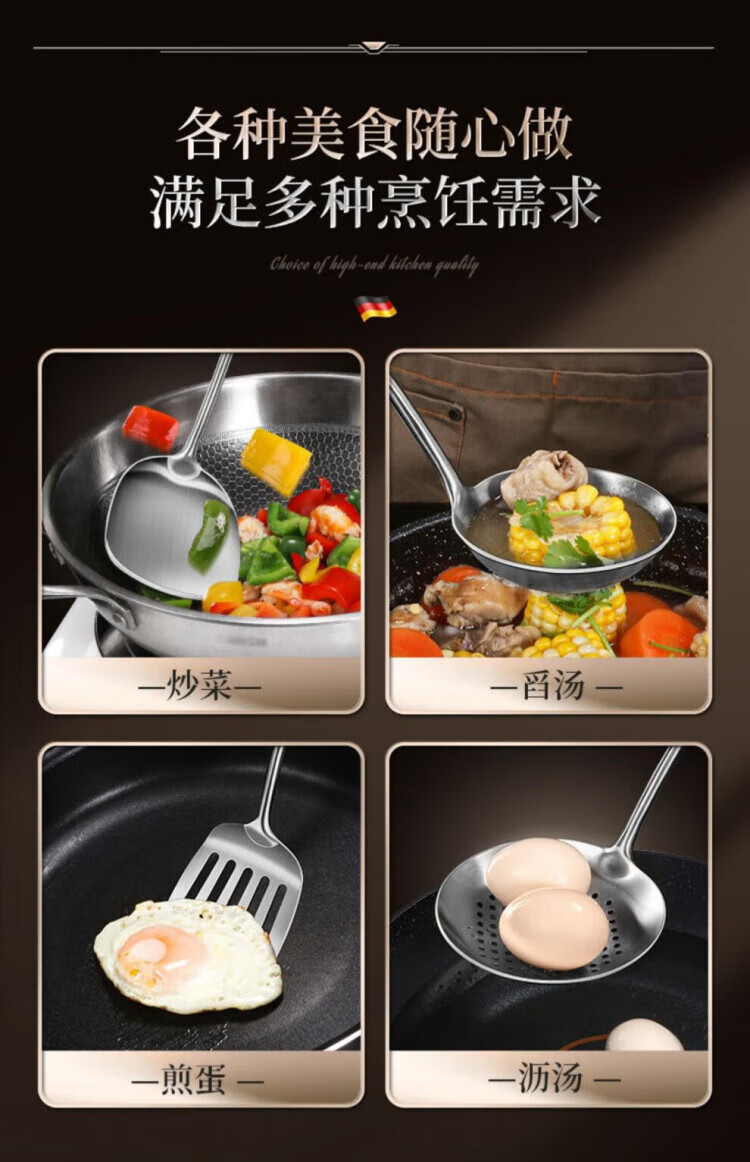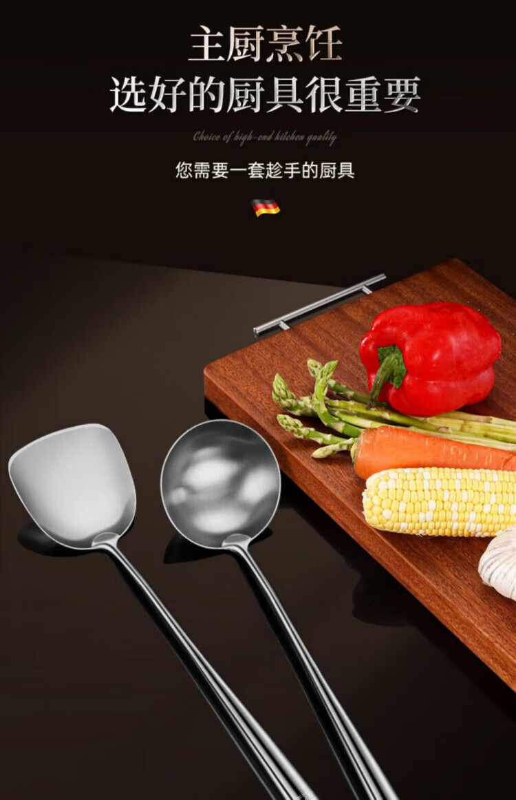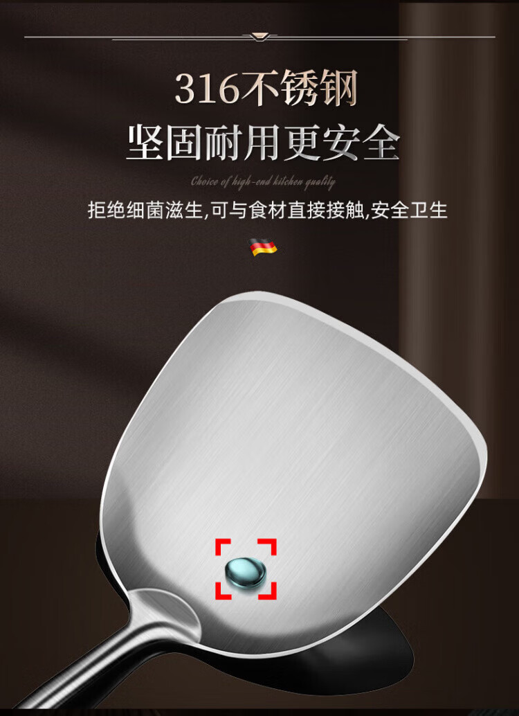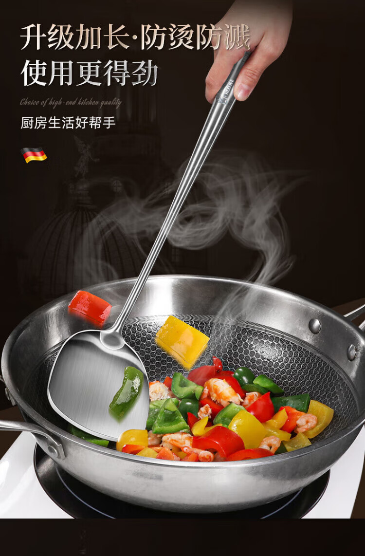 WCZ德国食品级316不锈钢炒勺厨师专用炒菜勺铲子勺子家用304汤勺 常规短款炒铲 316带真钢钢印