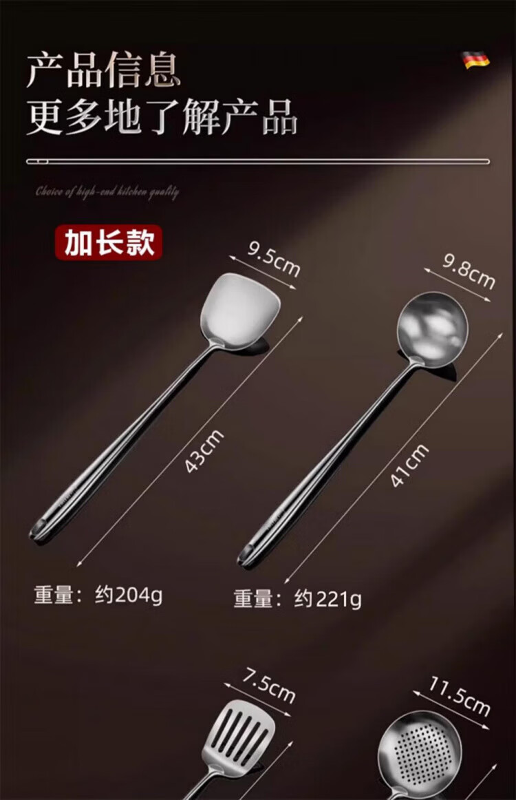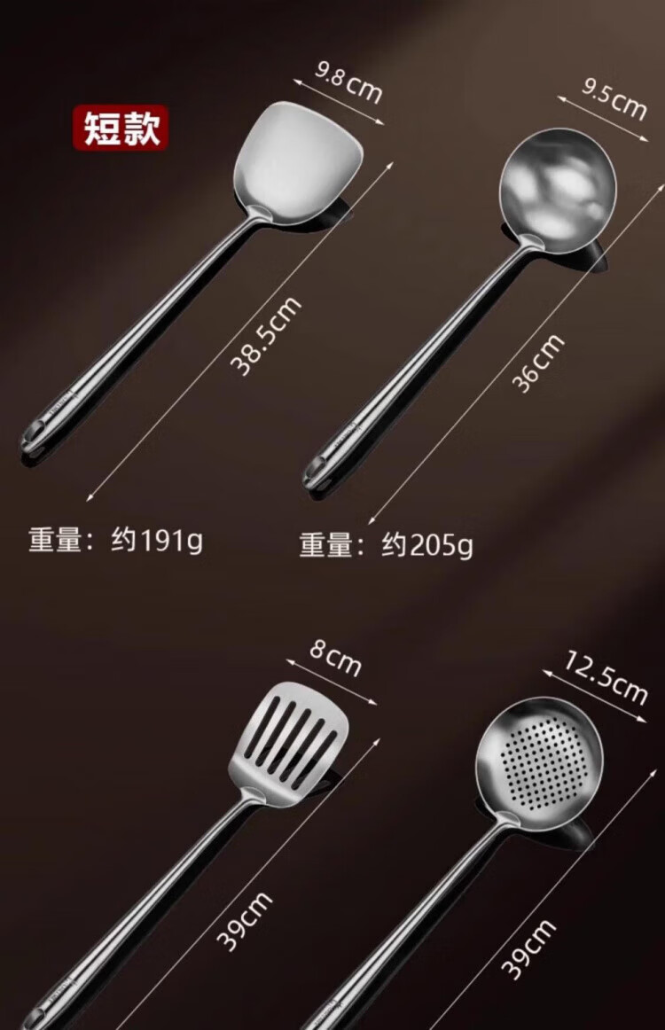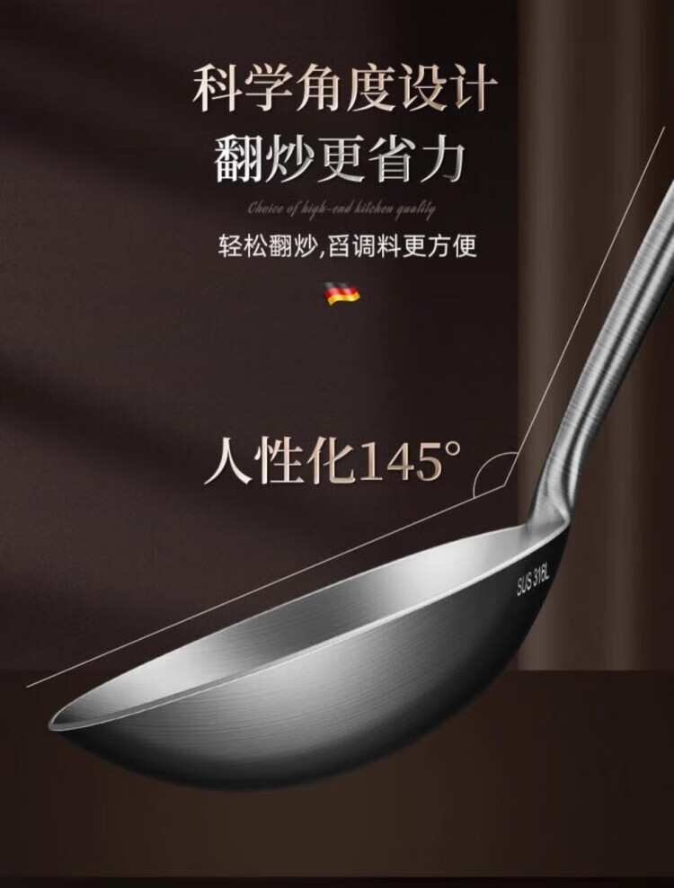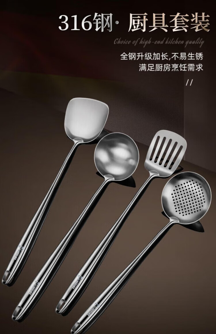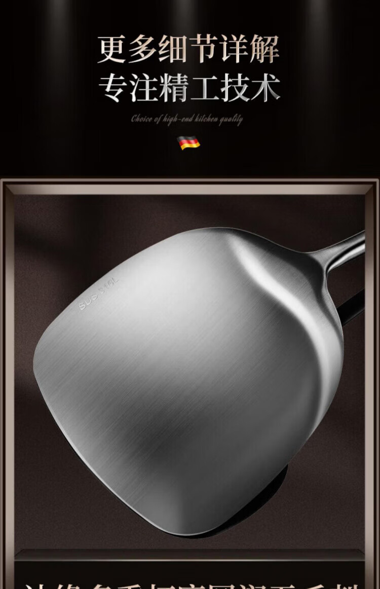 WCZ德国食品级316不锈钢炒勺厨师专用炒菜勺铲子勺子家用304汤勺 常规短款炒铲 316带真钢钢印