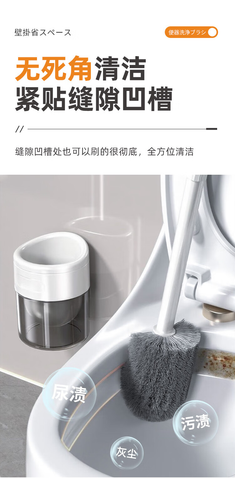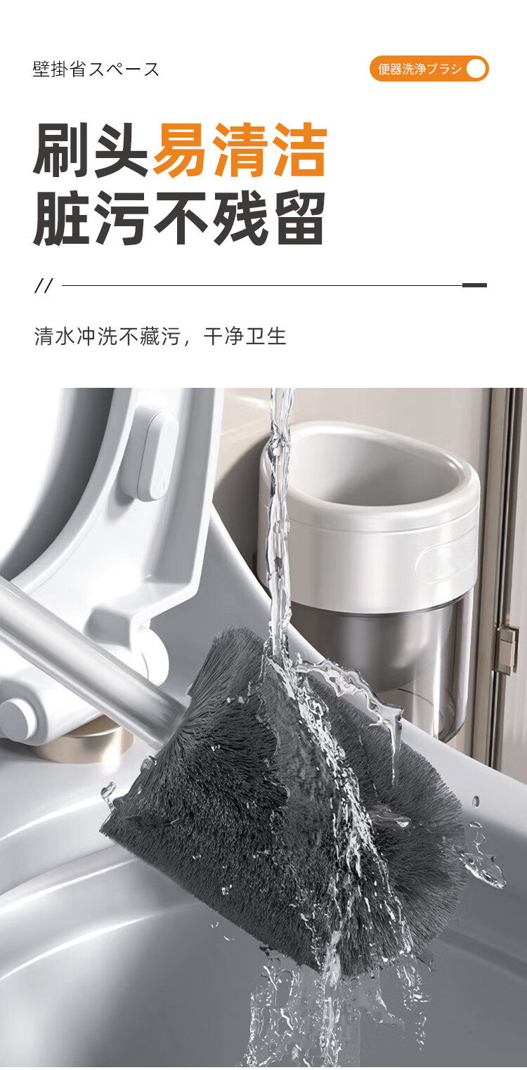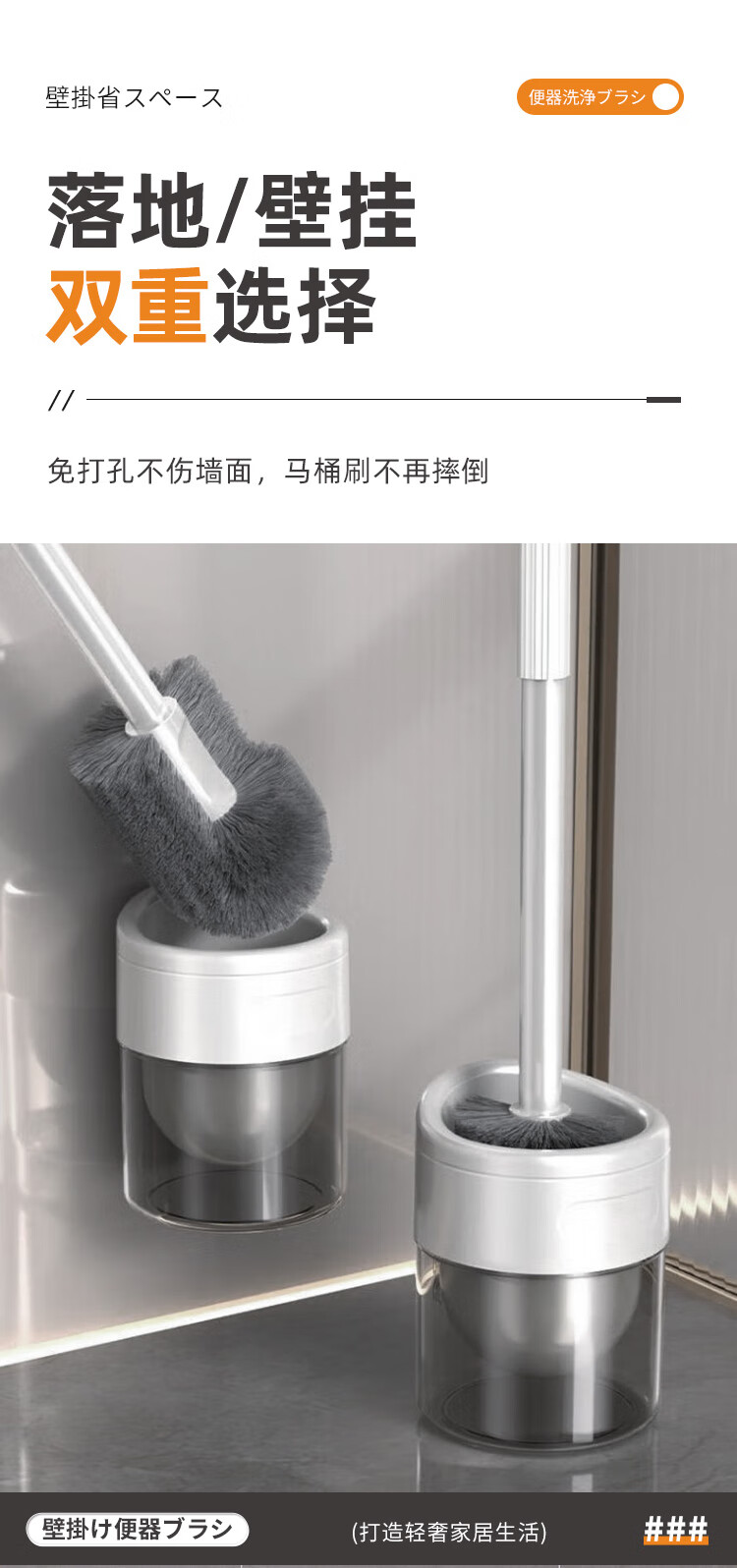Imakara日本卫生间马桶刷带底座套装二合一刷子无死角洗厕所洁厕清洁神器 置地式+壁挂式马桶刷长柄软毛