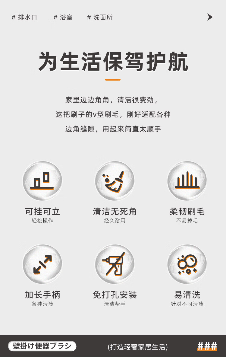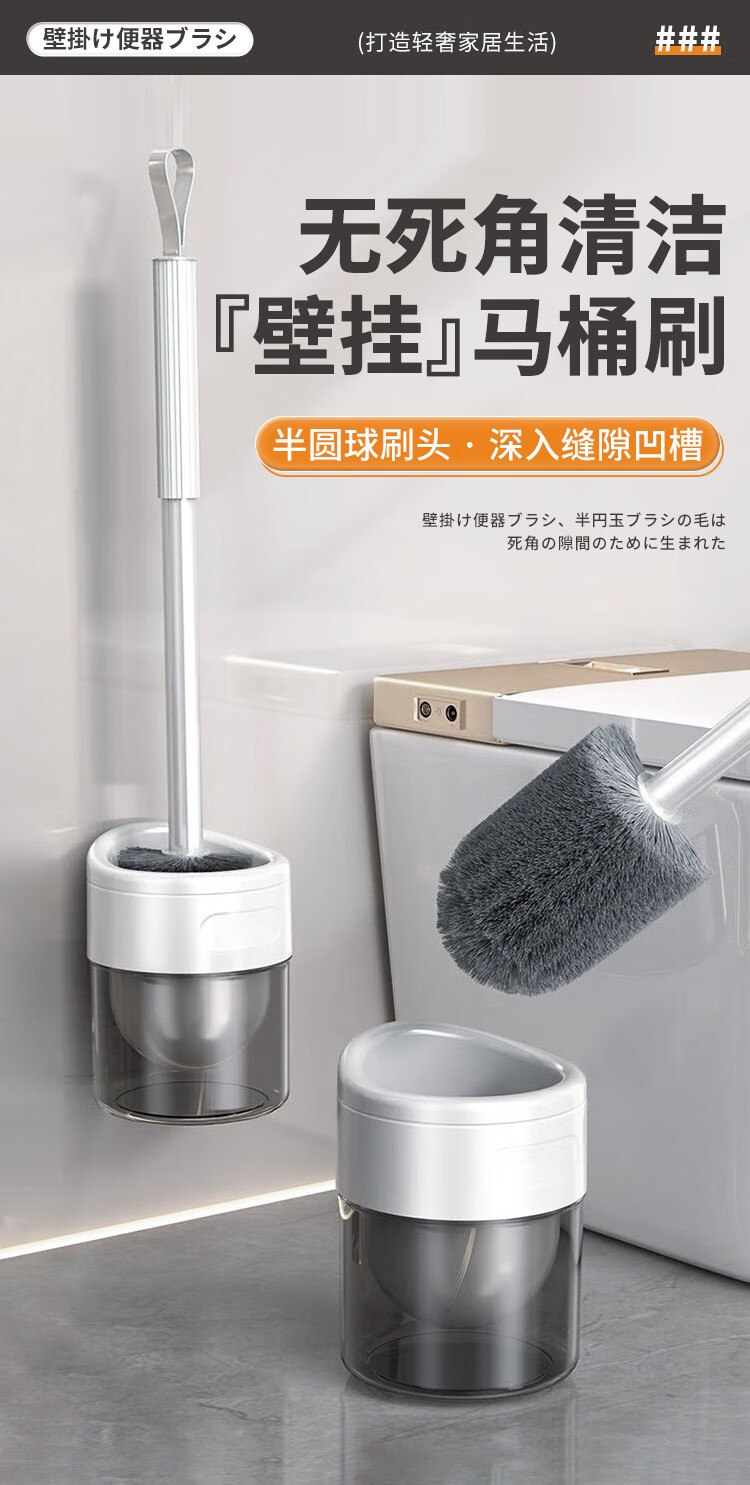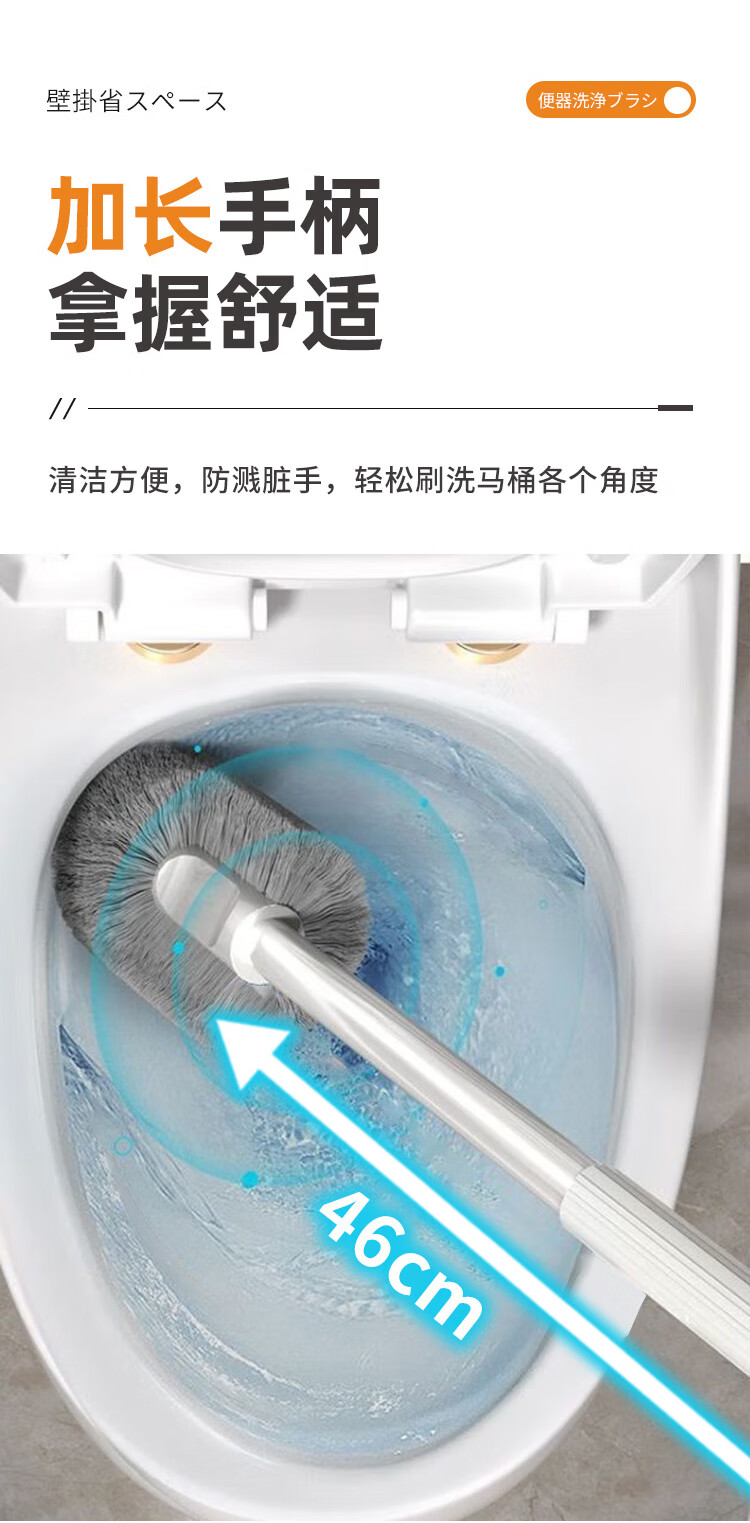 Imakara日本卫生间马桶刷带底座套装二合一刷子无死角洗厕所洁厕清洁神器 置地式+壁挂式马桶刷长柄软毛