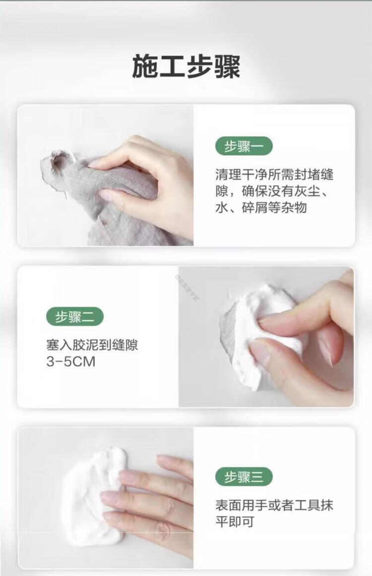 DEATKN德国下水道堵洞密封胶泥防水臭白色填充管道空调孔补墙口 【品质】2包-下水道堵洞