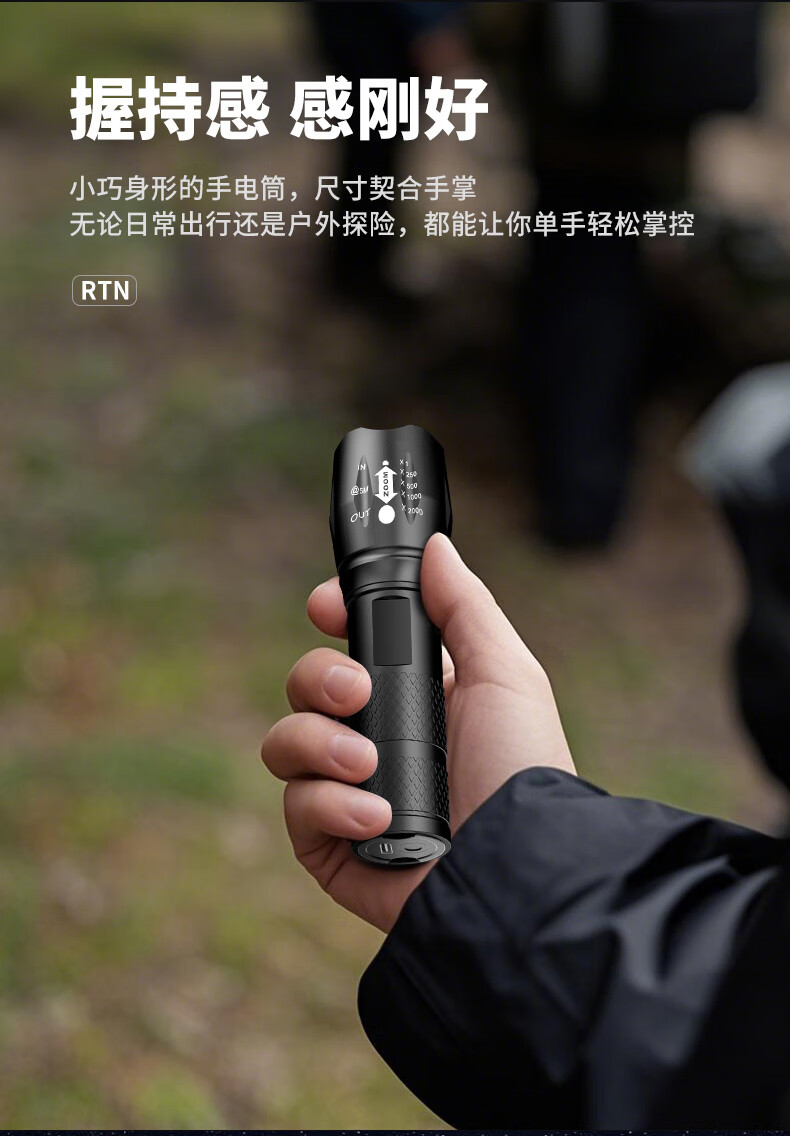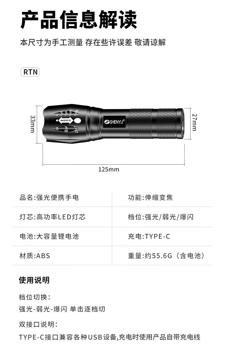 神鱼(SHENYU)手电筒强光LED充电长续航锂电户外远射家用应急小巧便携耐用 【强光】持久续航-迷你便携