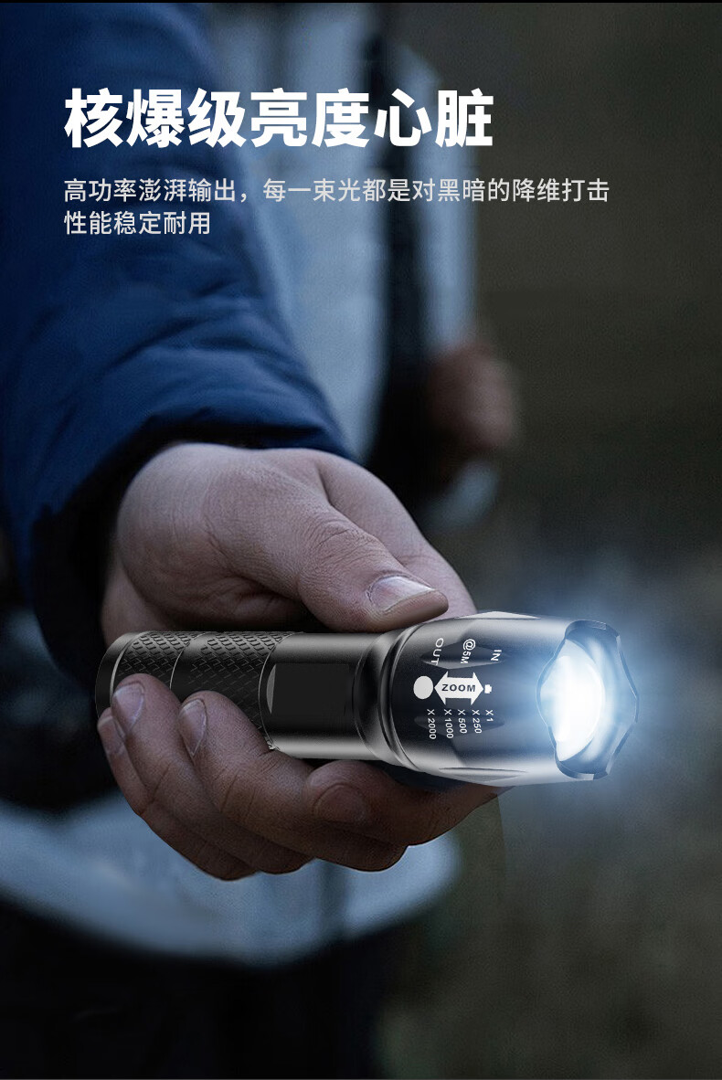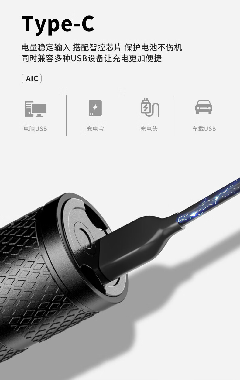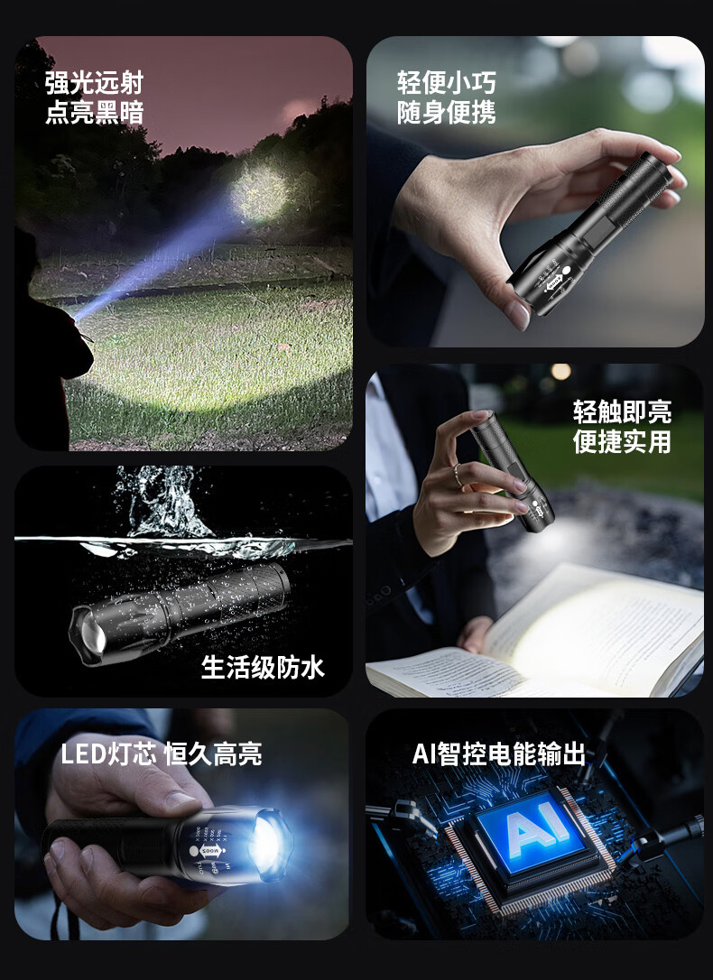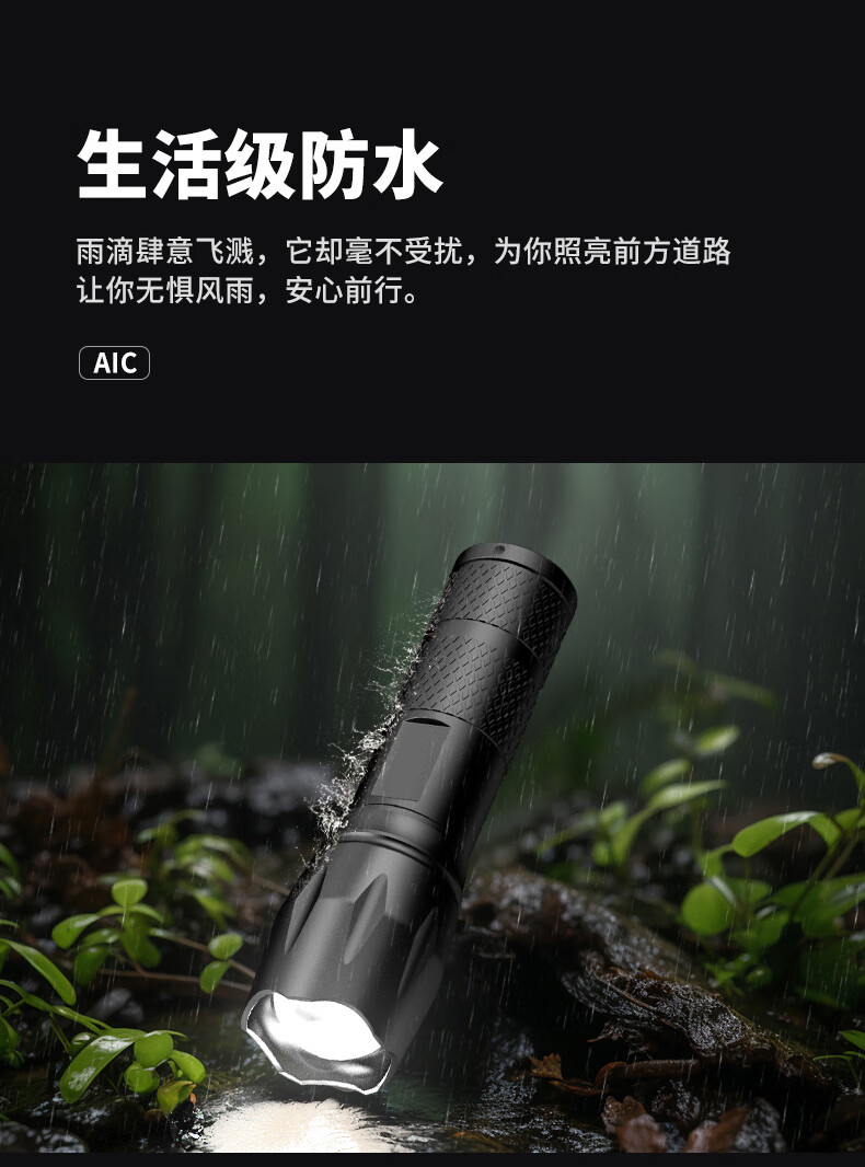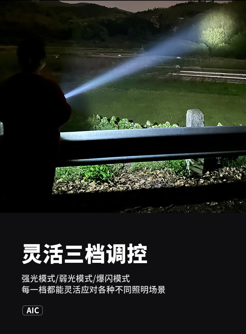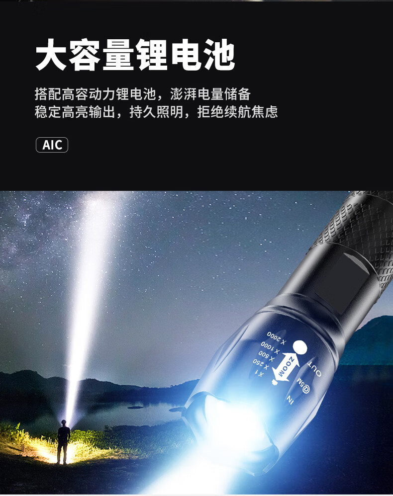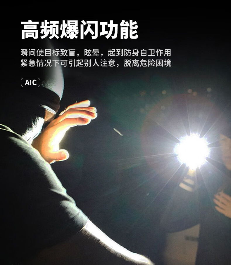 Aic多功能手电筒便携强光家用超亮手电可充电户外强光远射超长续航 【爆亮LED】便携持久-防水防摔