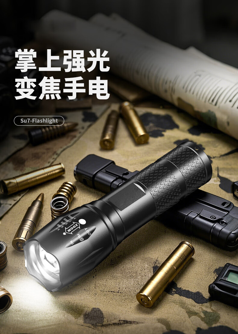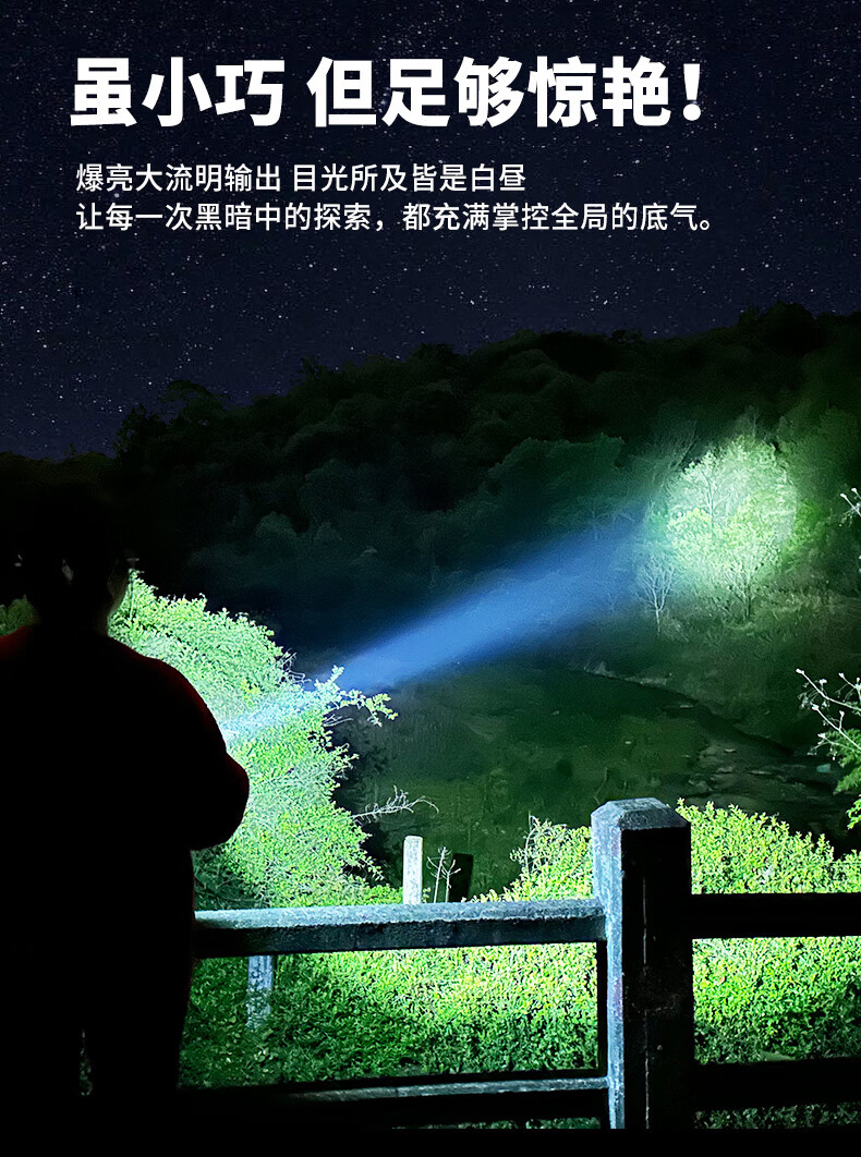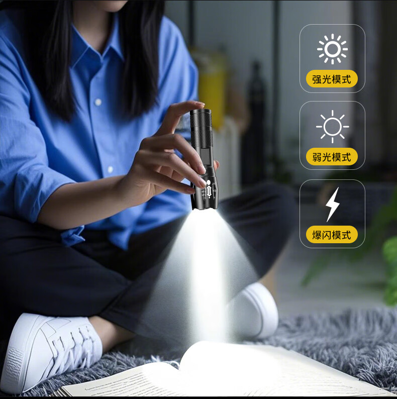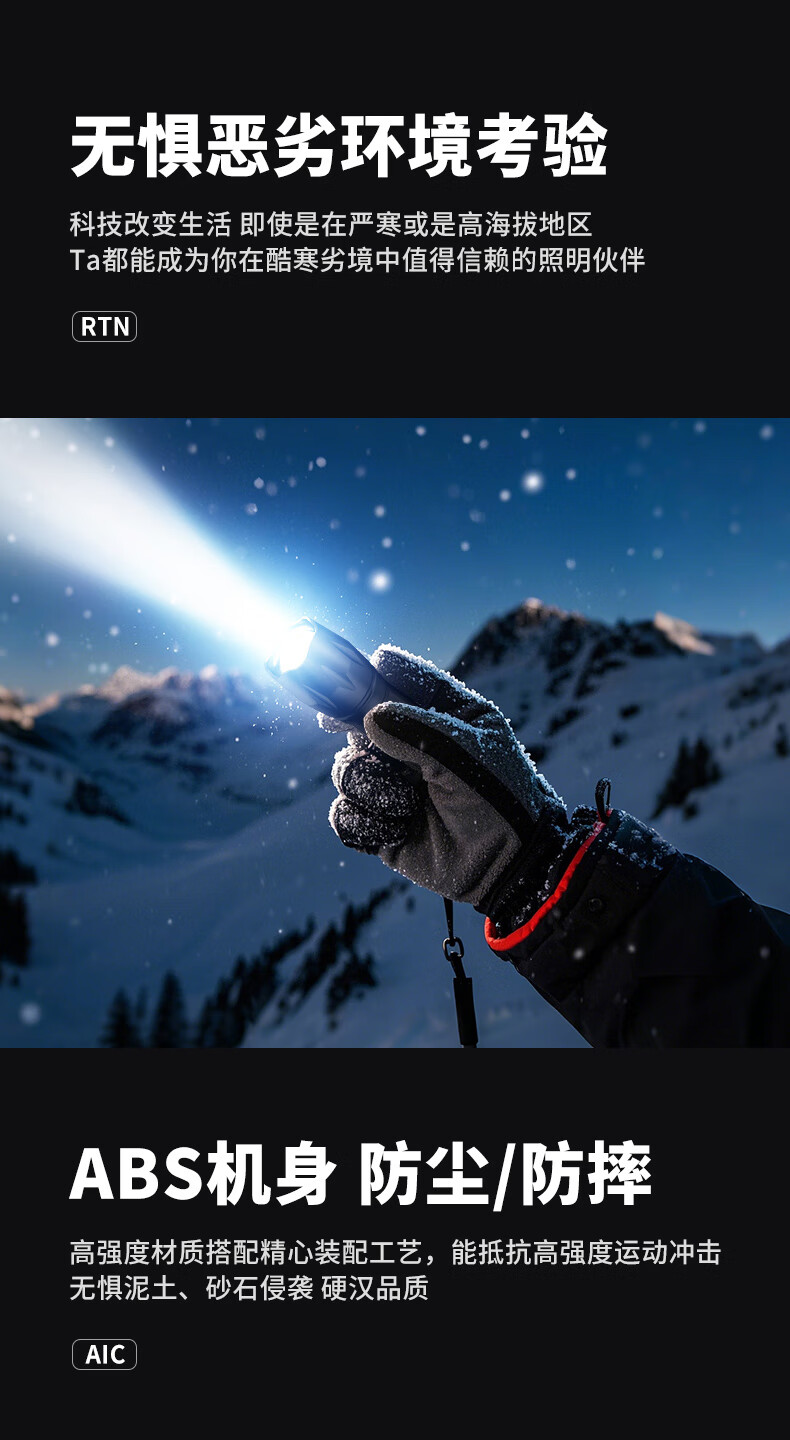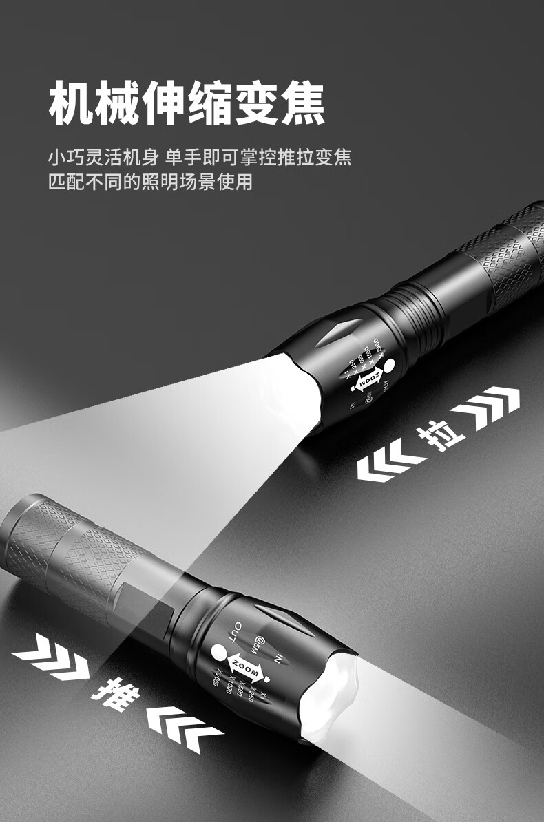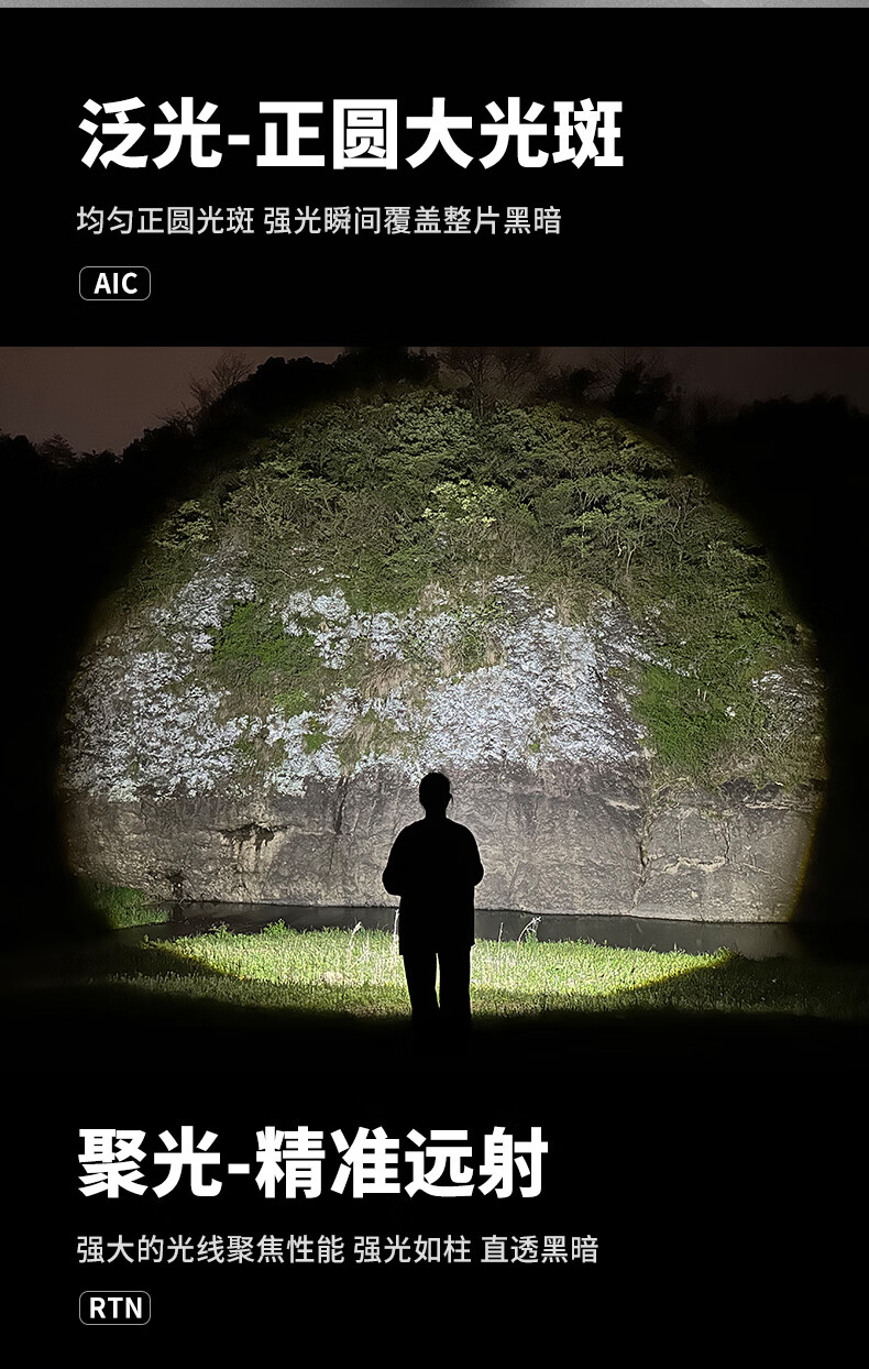 Aic多功能手电筒便携强光家用超亮手电可充电户外强光远射超长续航 【爆亮LED】便携持久-防水防摔