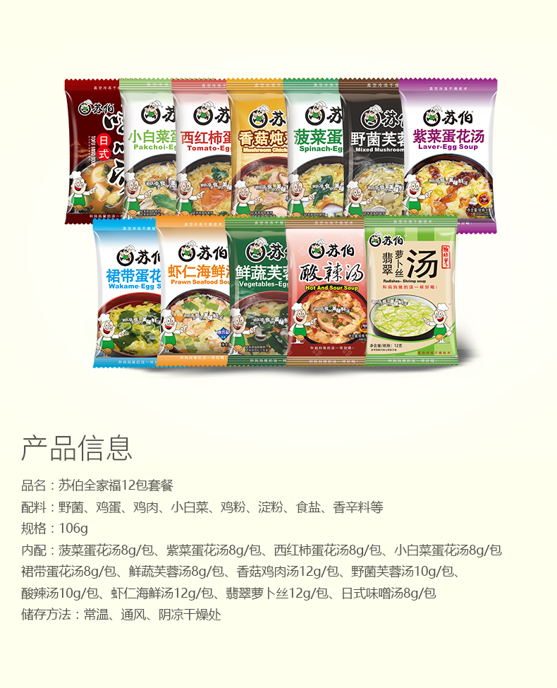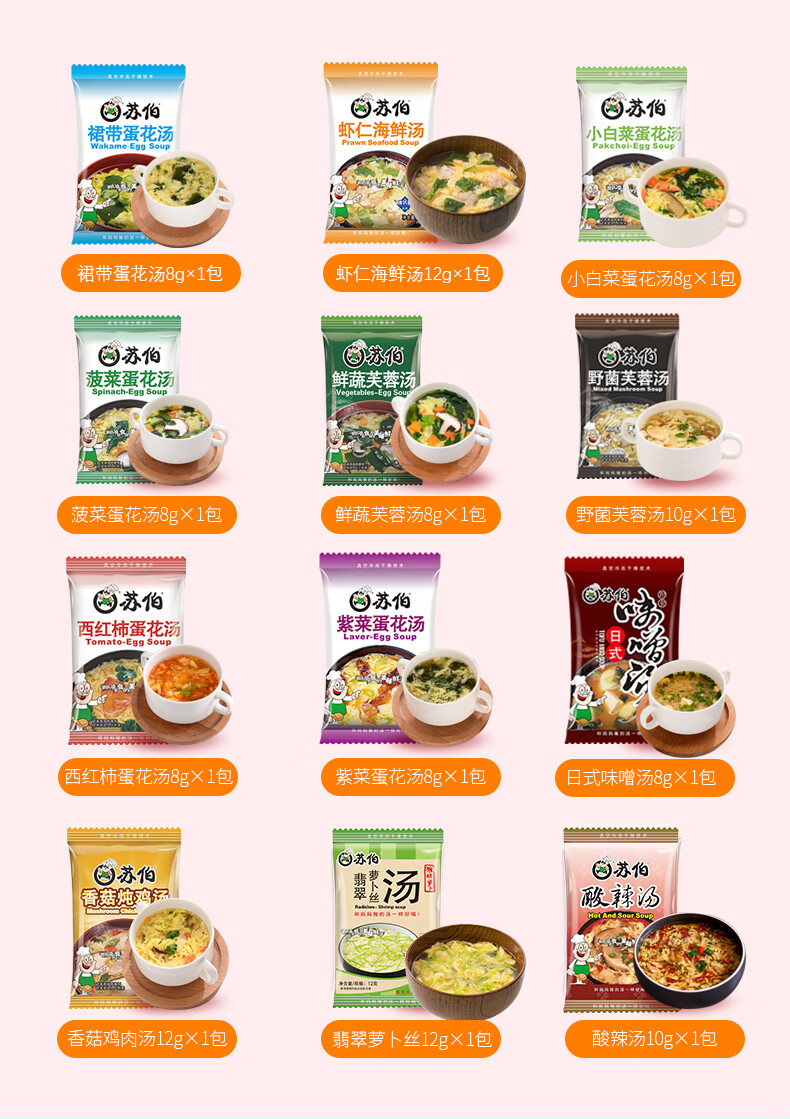 苏伯 12口味蛋花汤 12包106g 冻干速食蔬菜汤便携早餐代餐汤