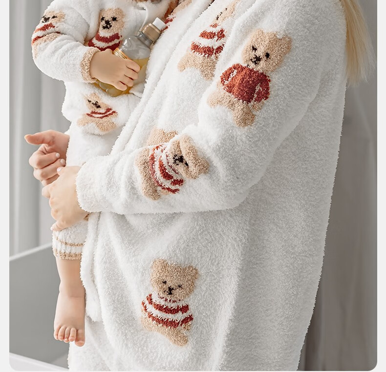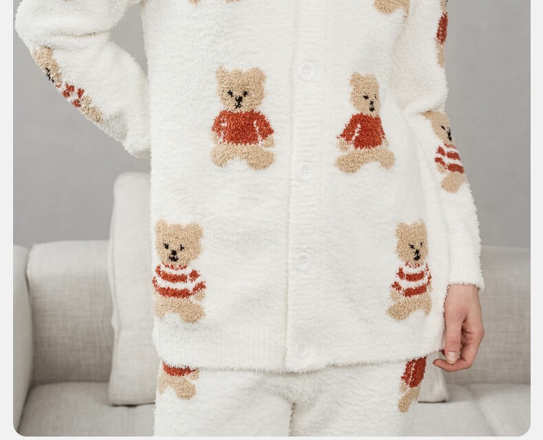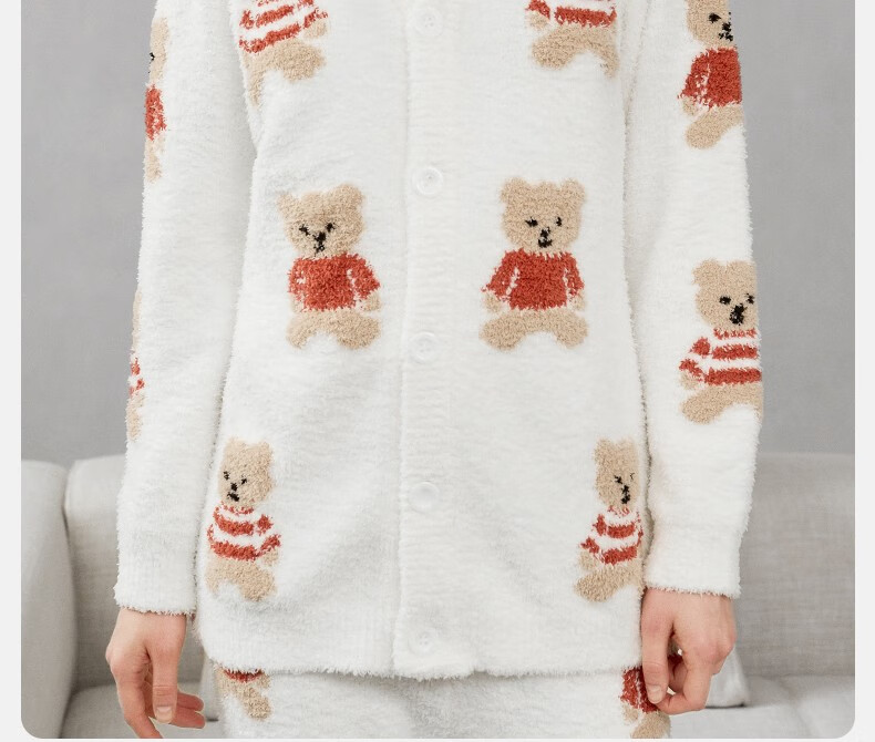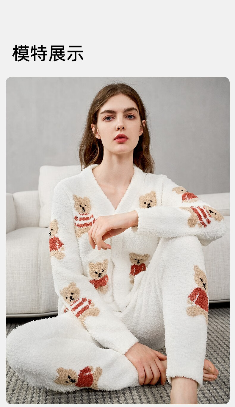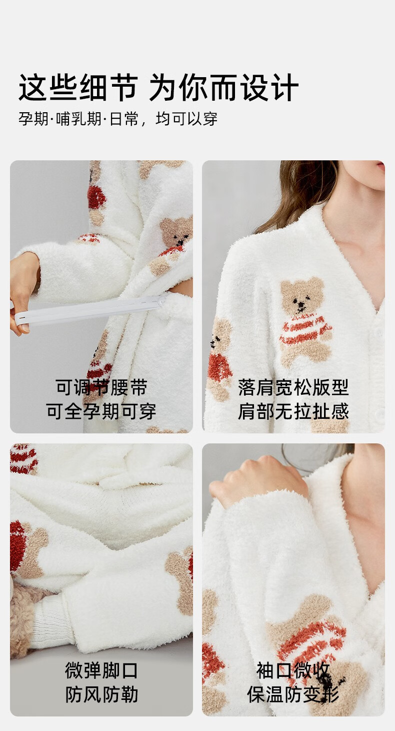 嫚熙(EMXEE)唐艺昕同款秋冬季睡衣小熊半边绒亲子装孕妇怀孕期月子服 小熊白色【7A抗菌防螨】 XL【奢柔半边绒】