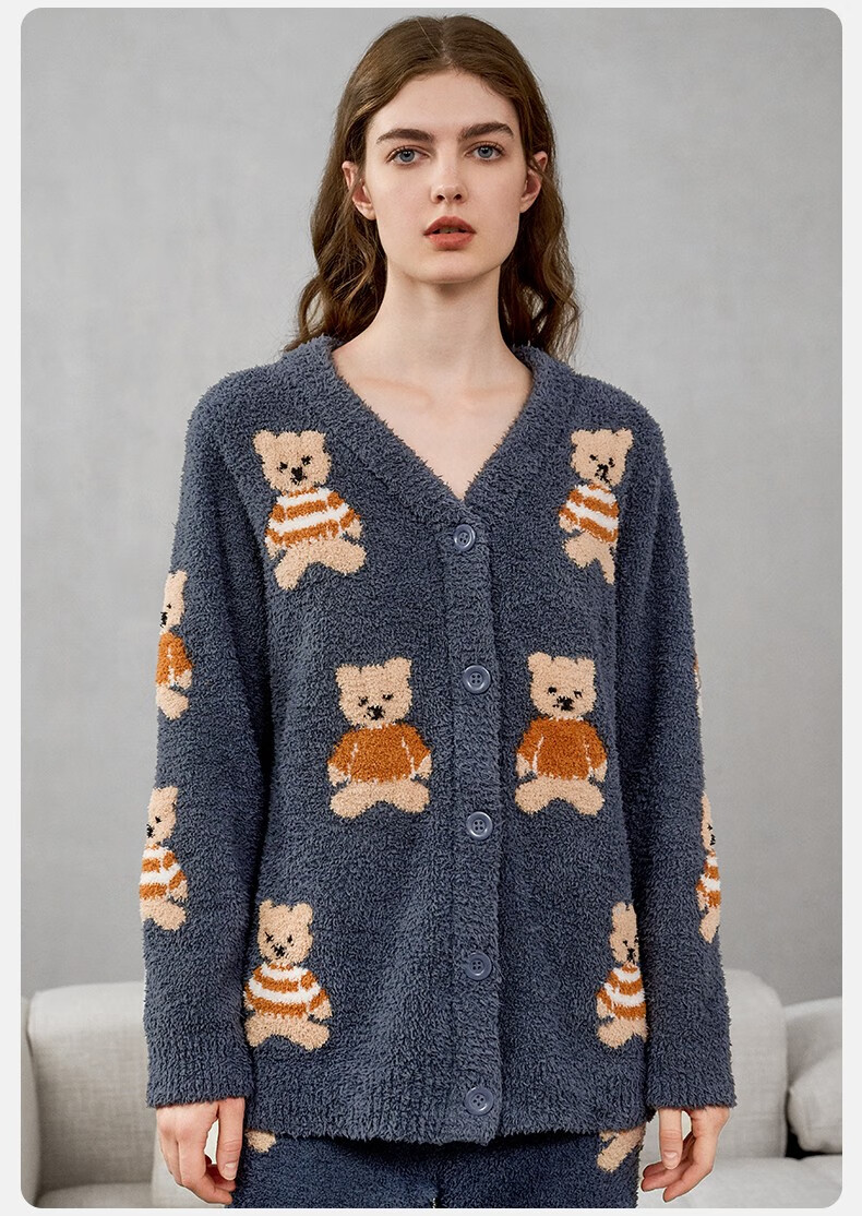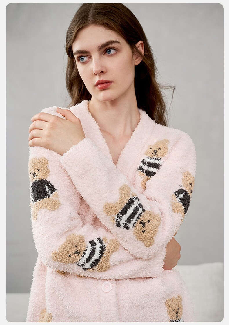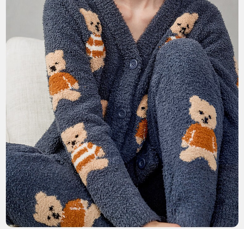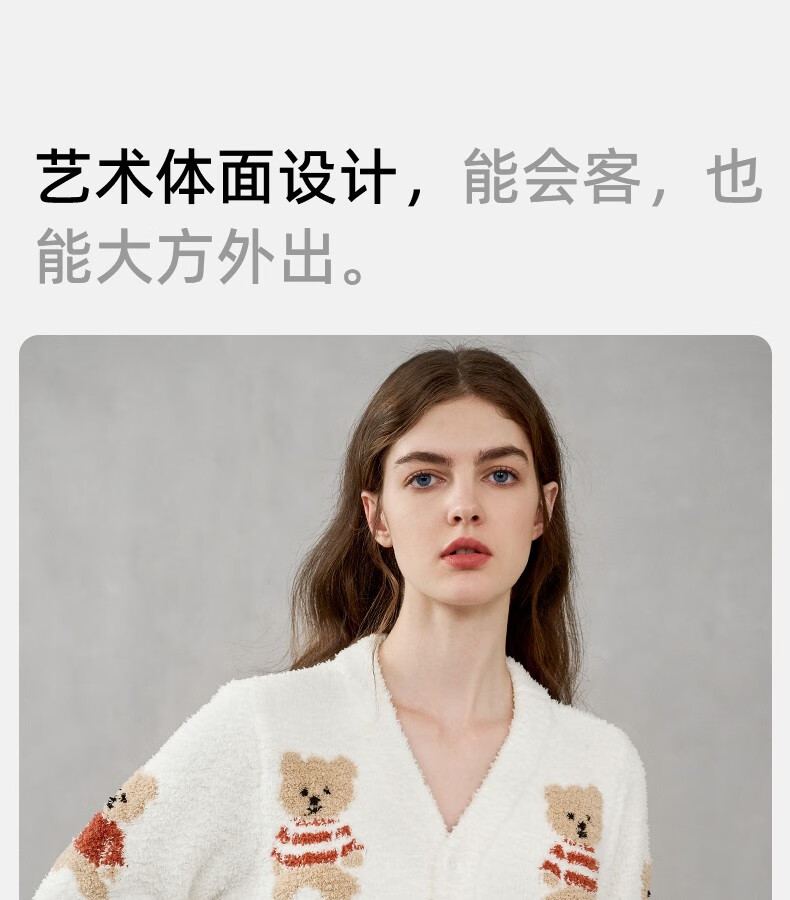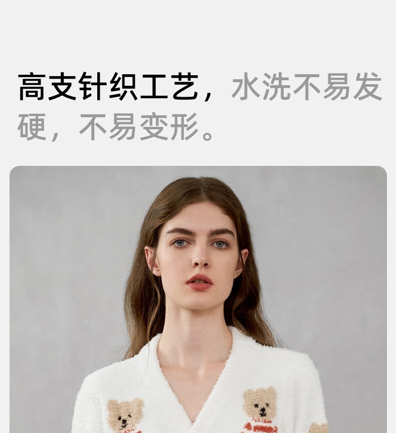 嫚熙(EMXEE)唐艺昕同款秋冬季睡衣小熊半边绒亲子装孕妇怀孕期月子服 小熊白色【7A抗菌防螨】 XL【奢柔半边绒】