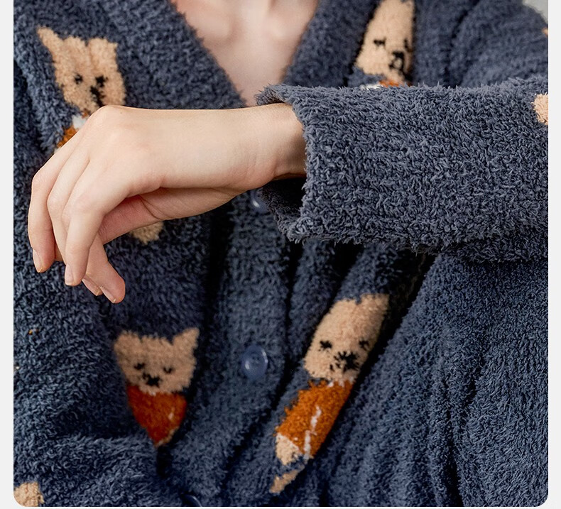DAPHNE达芙妮【A】冬季情侣睡衣法兰绒加厚珊瑚绒舒适长袖套头男女孕妇家居服 541-542 男款:XXXL(150-170斤)