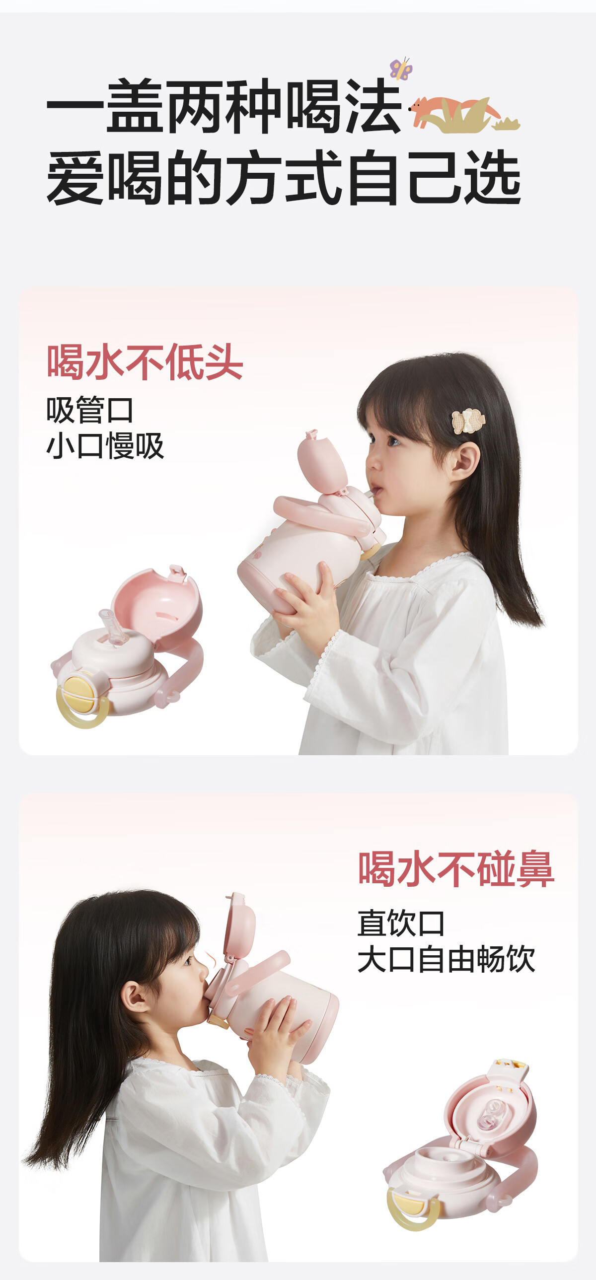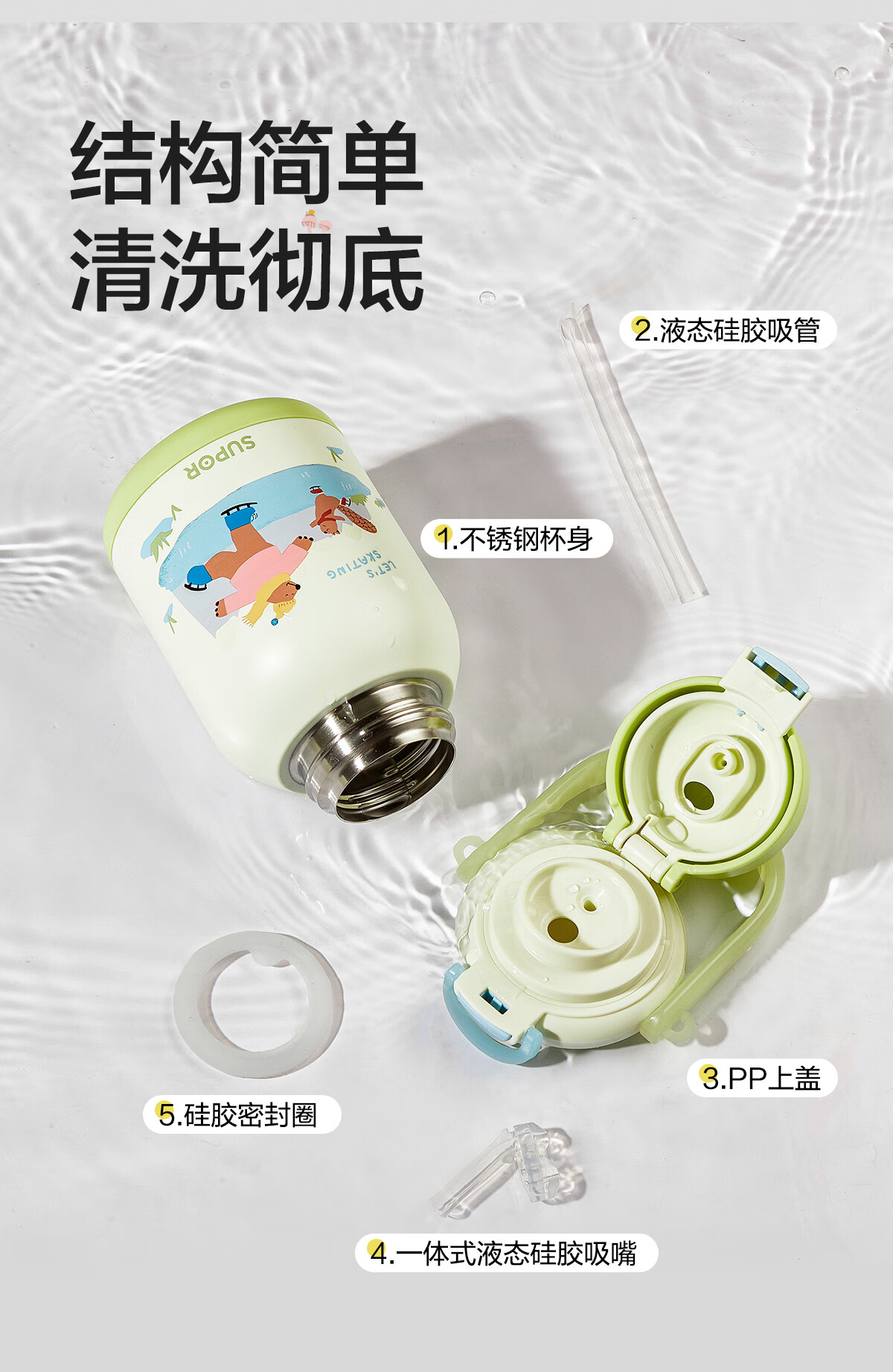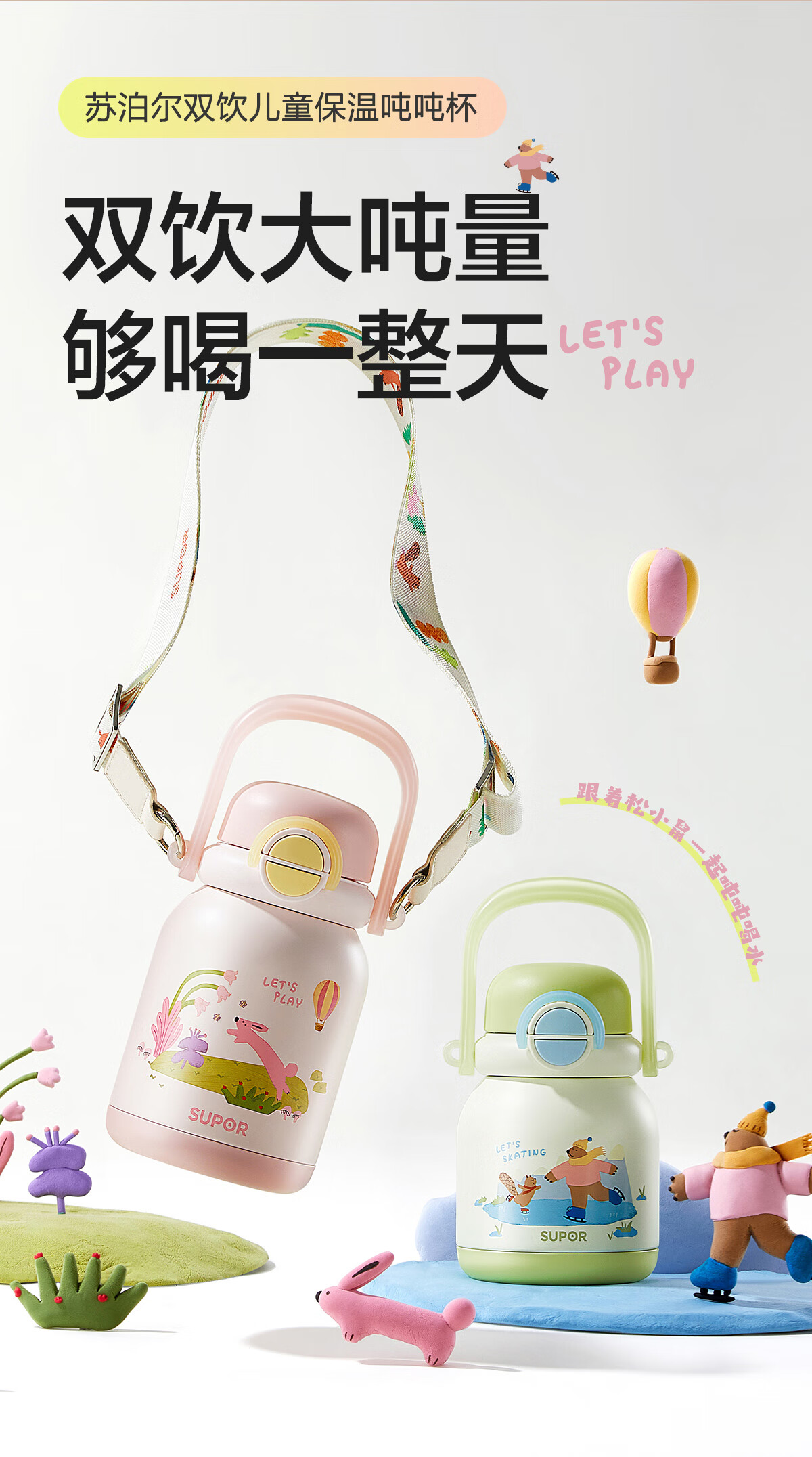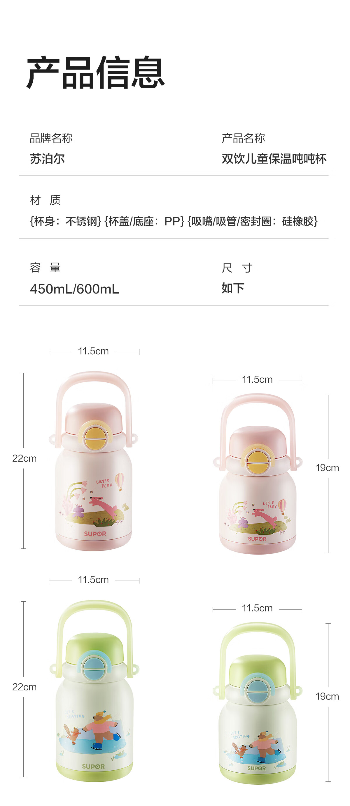 苏泊尔(SUPOR)儿童保温杯吸管杯双饮外出吨吨杯水壶316L不锈钢幼儿园上学喝水杯