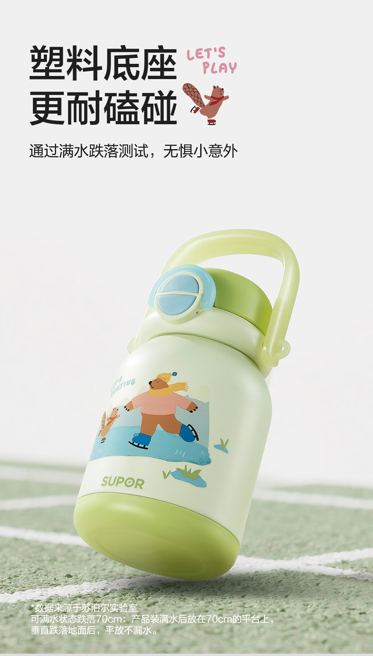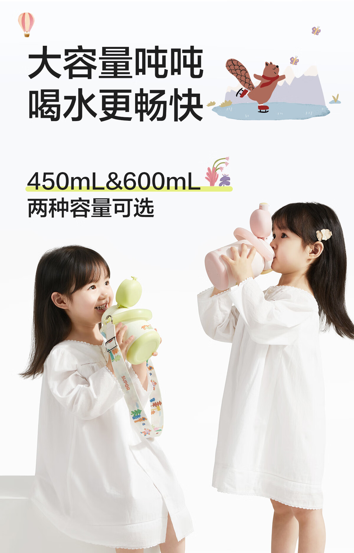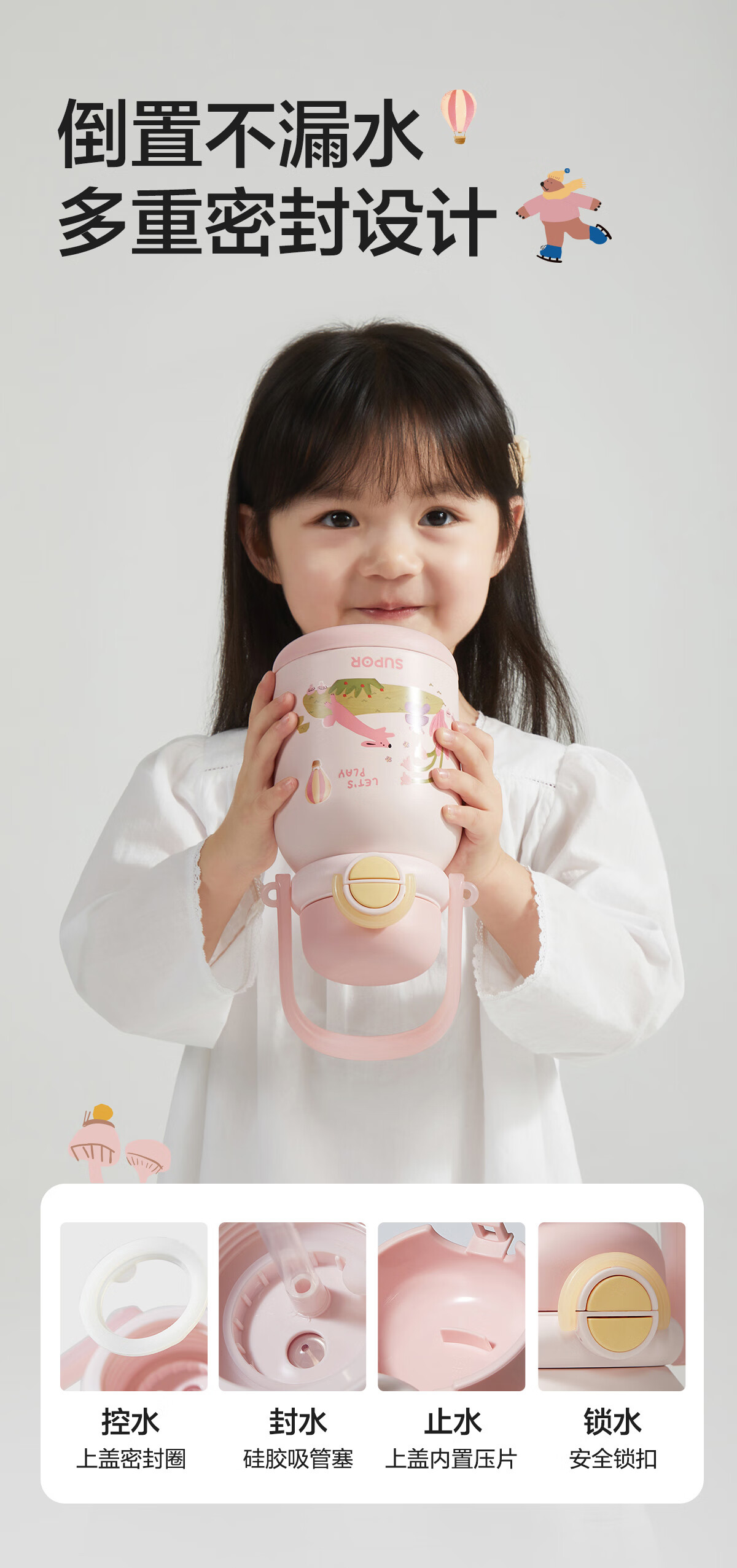 苏泊尔(SUPOR)儿童保温杯吸管杯双饮外出吨吨杯水壶316L不锈钢幼儿园上学喝水杯