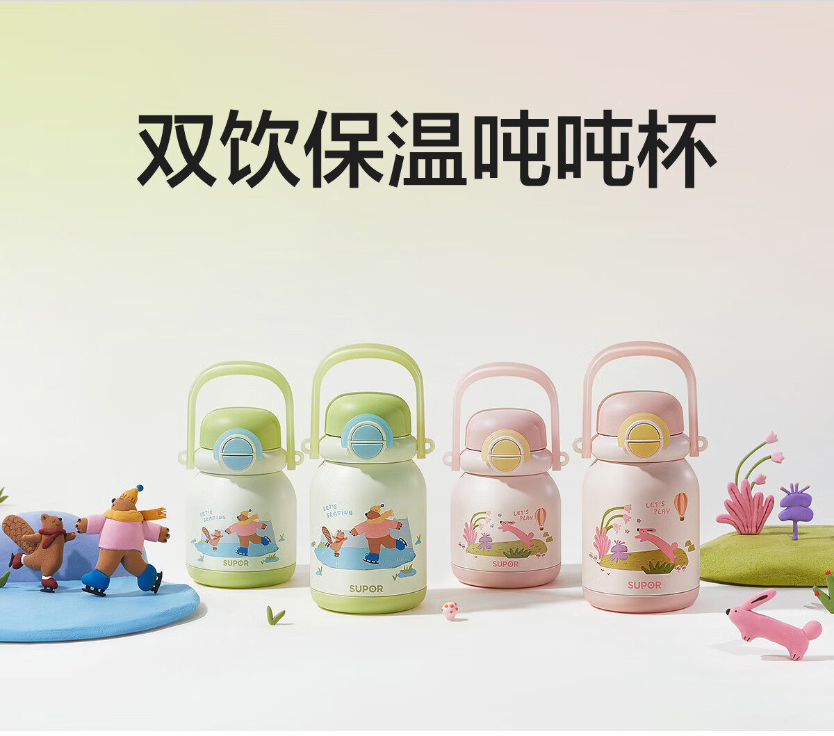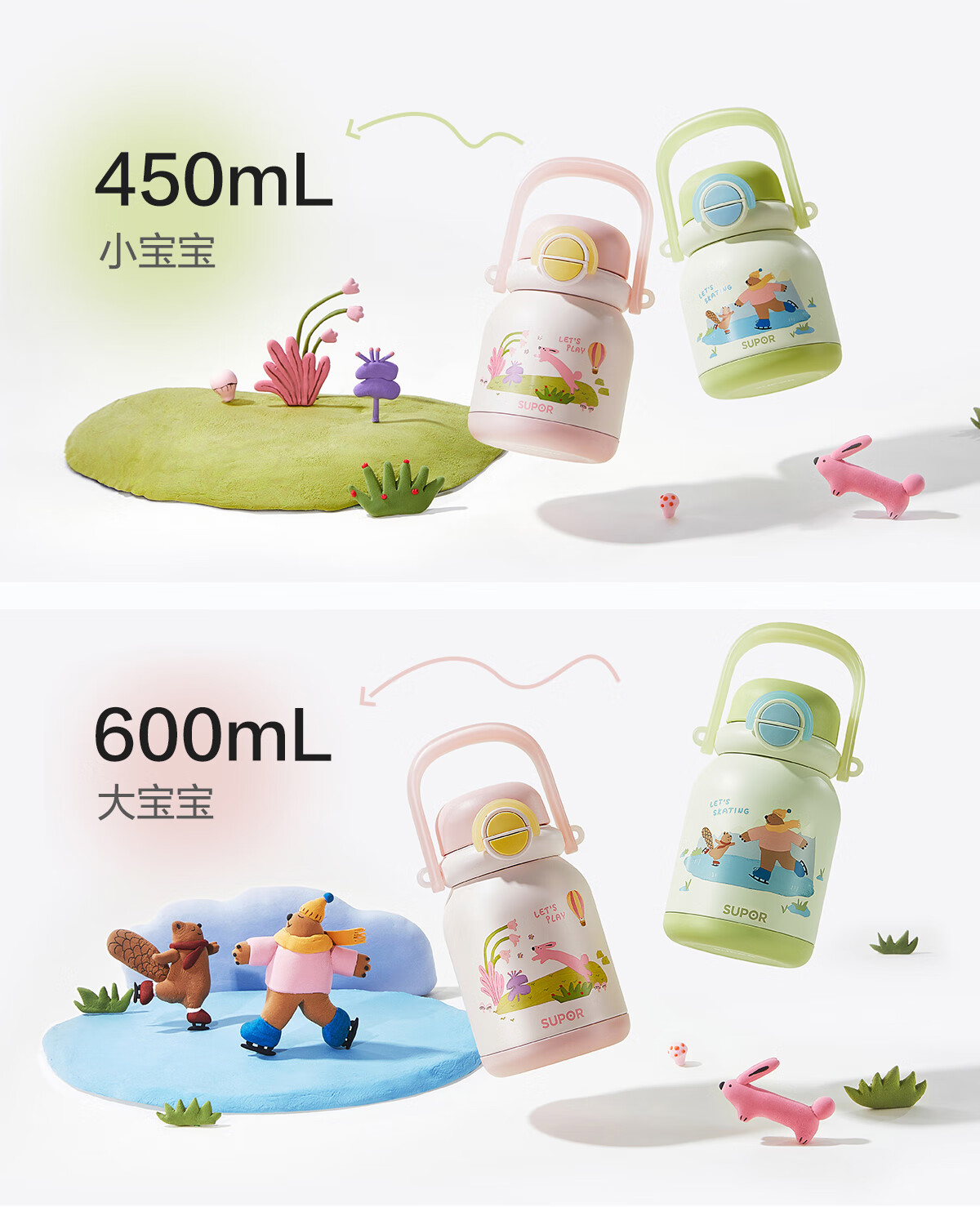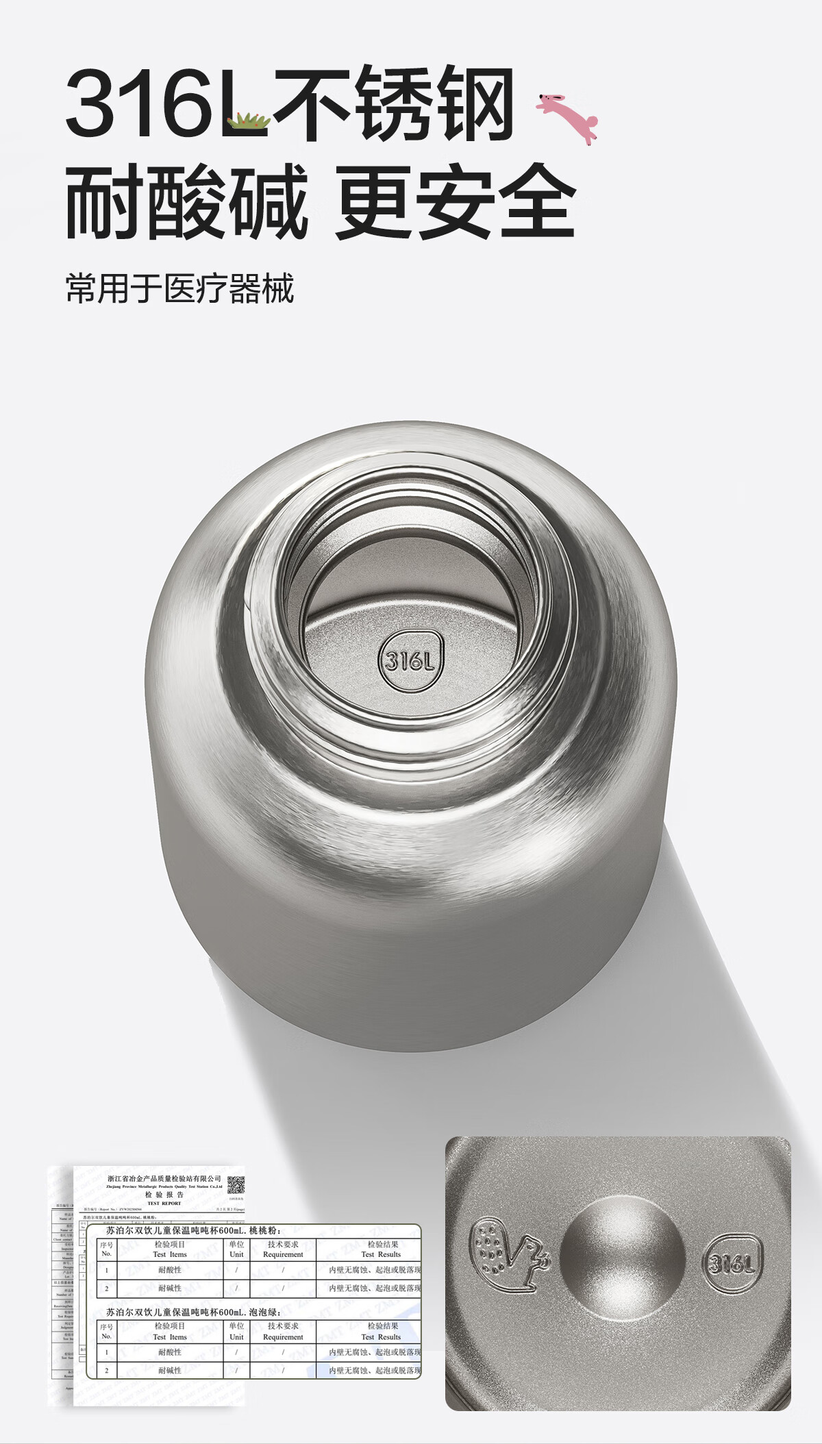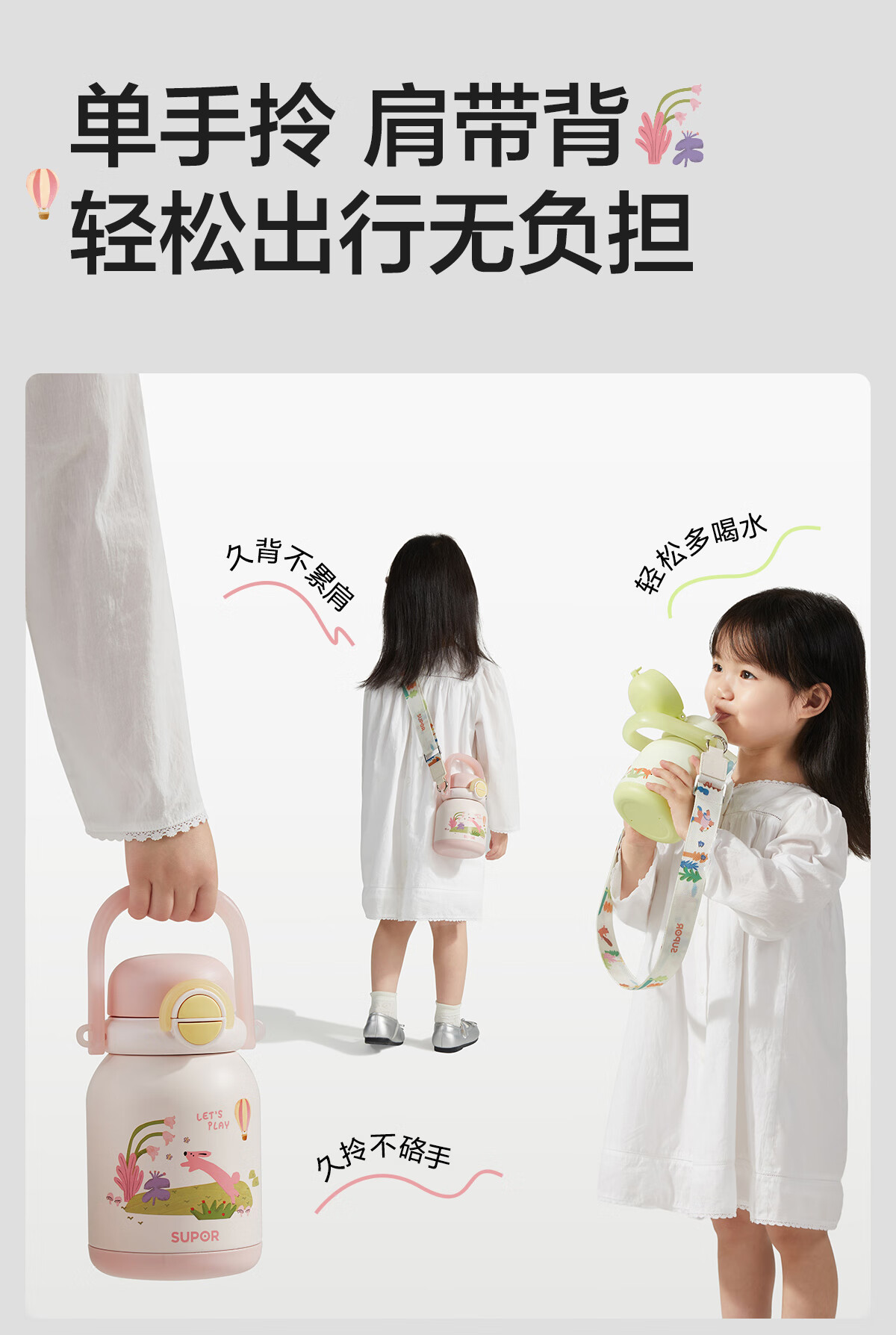 苏泊尔(SUPOR)儿童保温杯吸管杯双饮外出吨吨杯水壶316L不锈钢幼儿园上学喝水杯