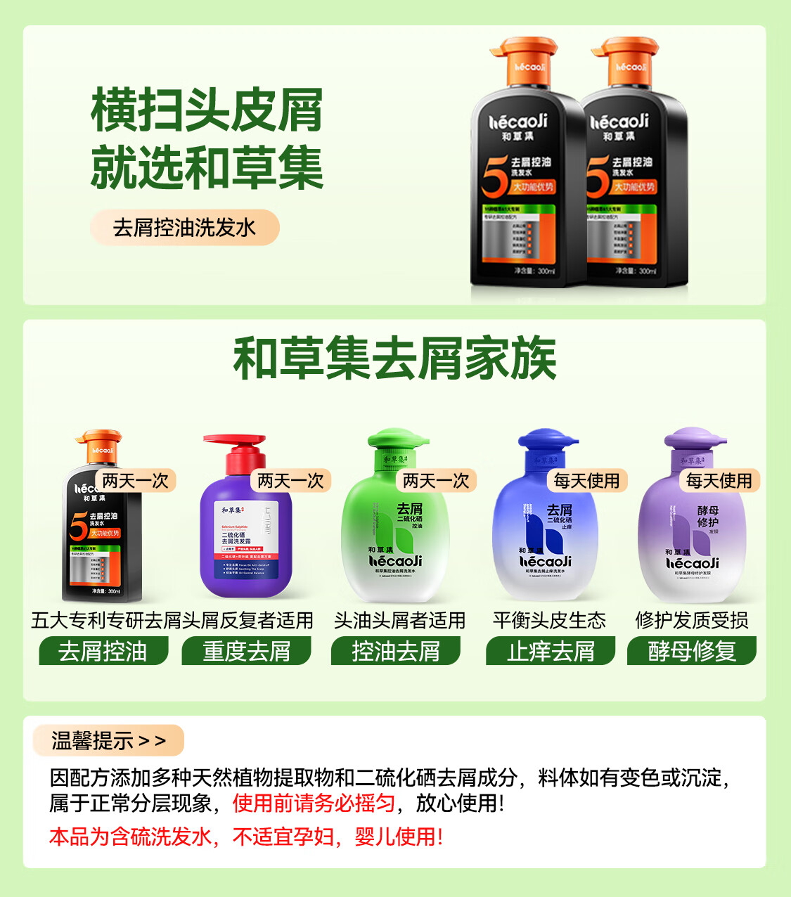 和草集二硫化硒洗发水控油舒痒去屑男女士蓬松洗发露头皮毛囊清洁洗头膏