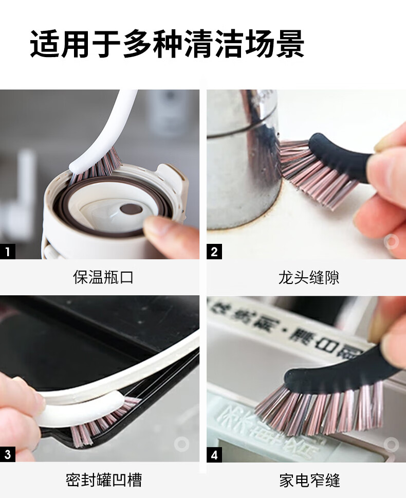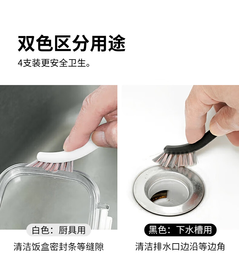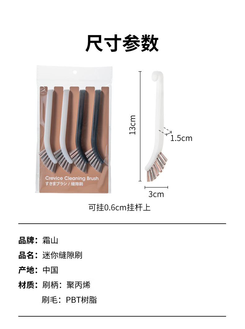 霜山迷你缝隙刷家用厨房水槽多功能小刷子浴室瓷砖窗缝死角清洁刷 【4支入】迷你缝隙刷-长13cm
