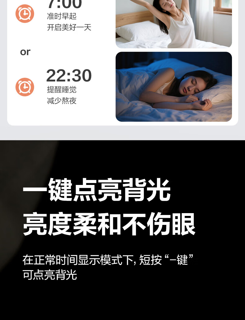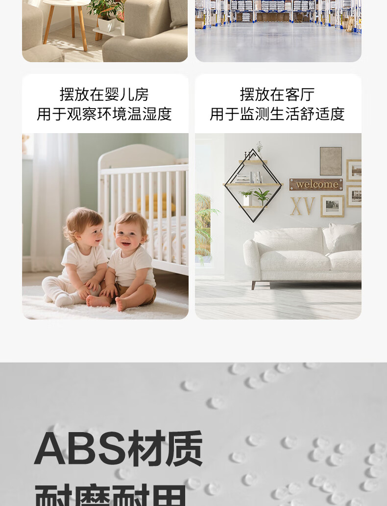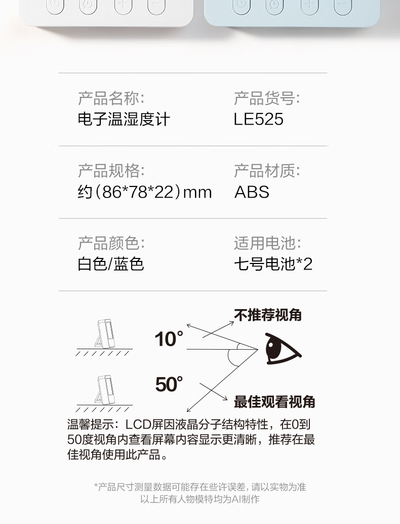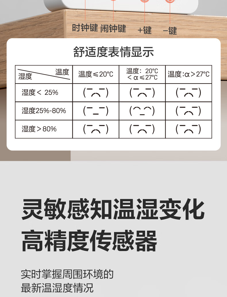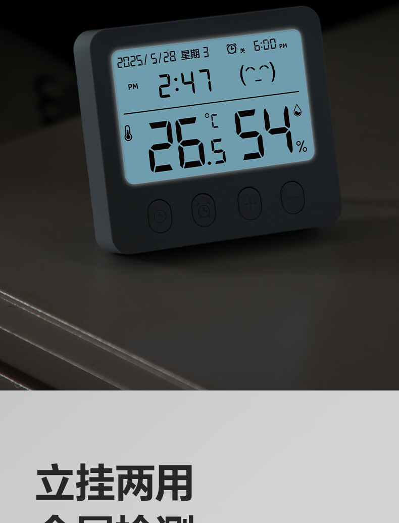 得力(deli)电子室内温湿度计闹钟叫醒背灯光婴儿房智能家居小巧高精度时间日期温湿度表天气智联测量LE525白