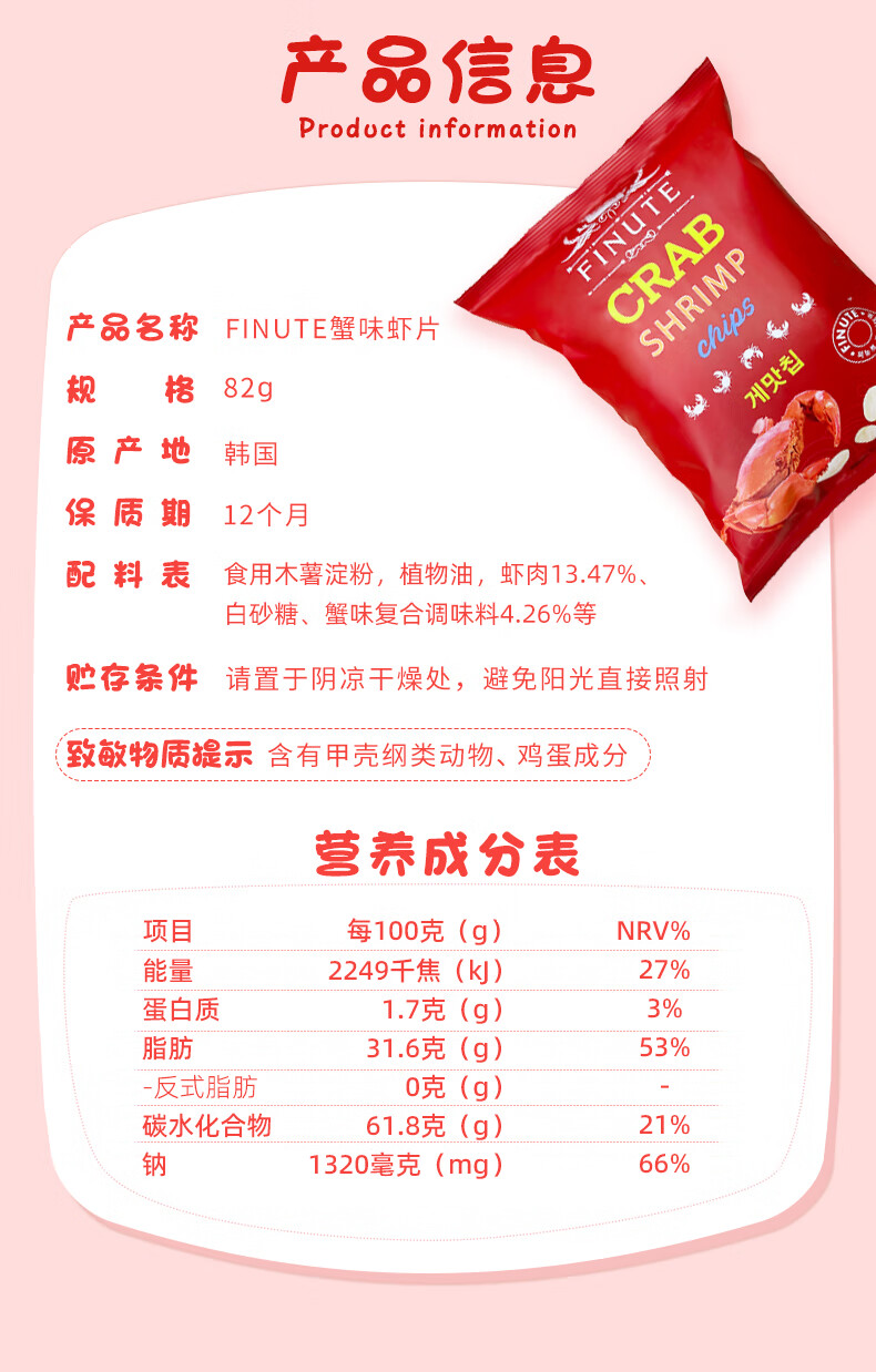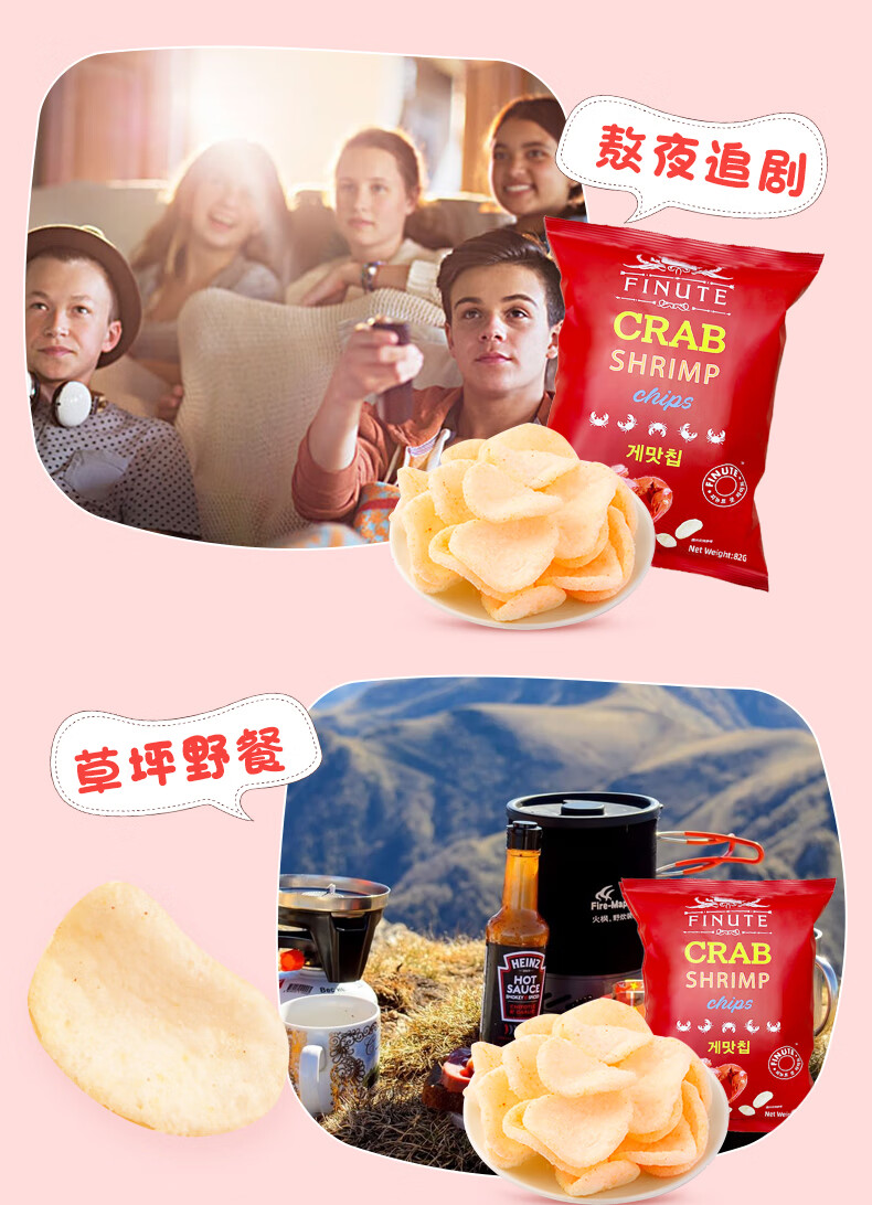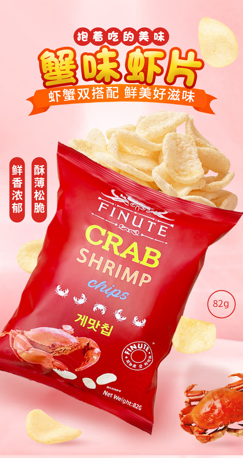 FINUTE趣莱福蟹味虾片(膨化食品)82g韩国进口追剧必备【临期清仓】