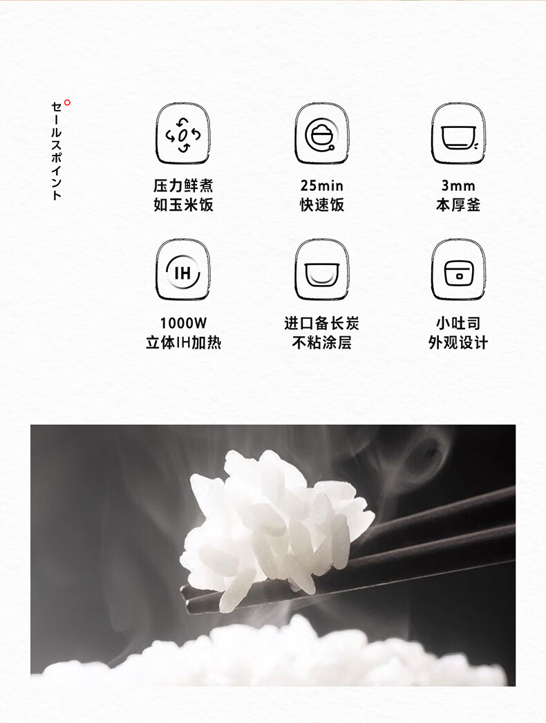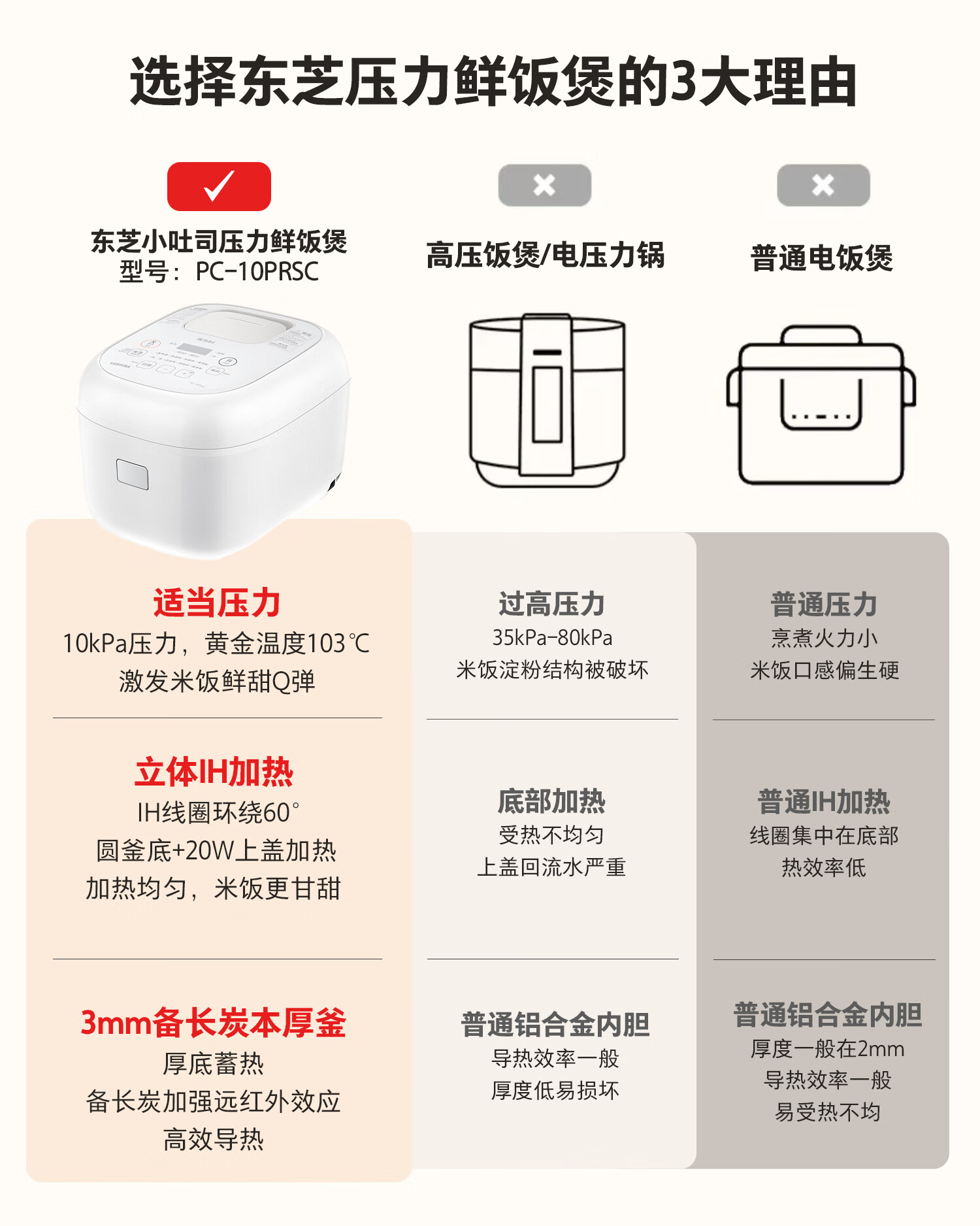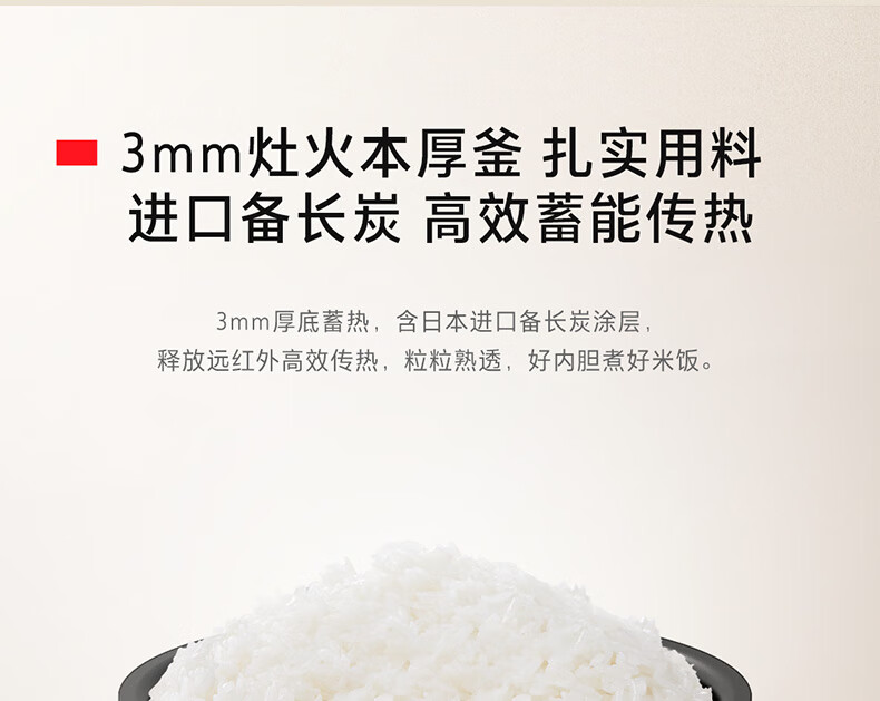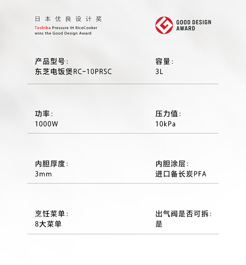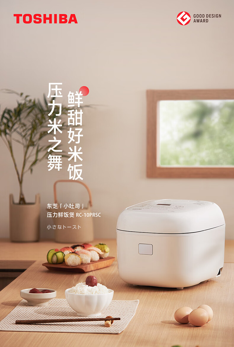东芝(TOSHIBA)小吐司鲜饭煲IH立体加热10kpa电饭煲微压 3L3-4人进口备长炭内胆家用电饭煲RC-10PRSC(W)