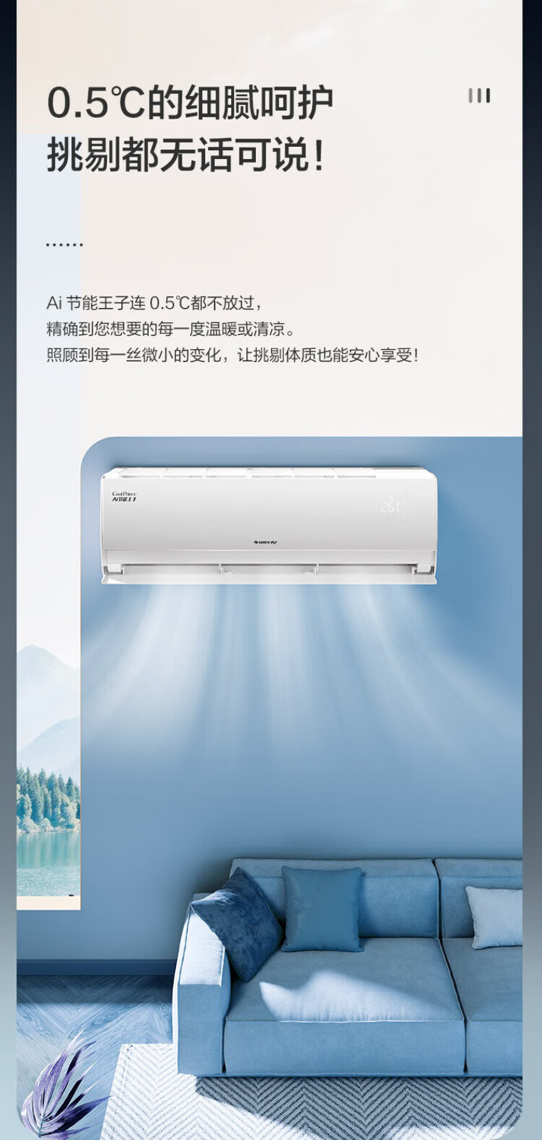 格力(GREE)空调 1.5匹【冷静王升级款】AI节能王子 超国标一级能效 双DNN精准调控 人工智能算法运动子母导风 1.5匹 一级能效 【冷静王升级款】