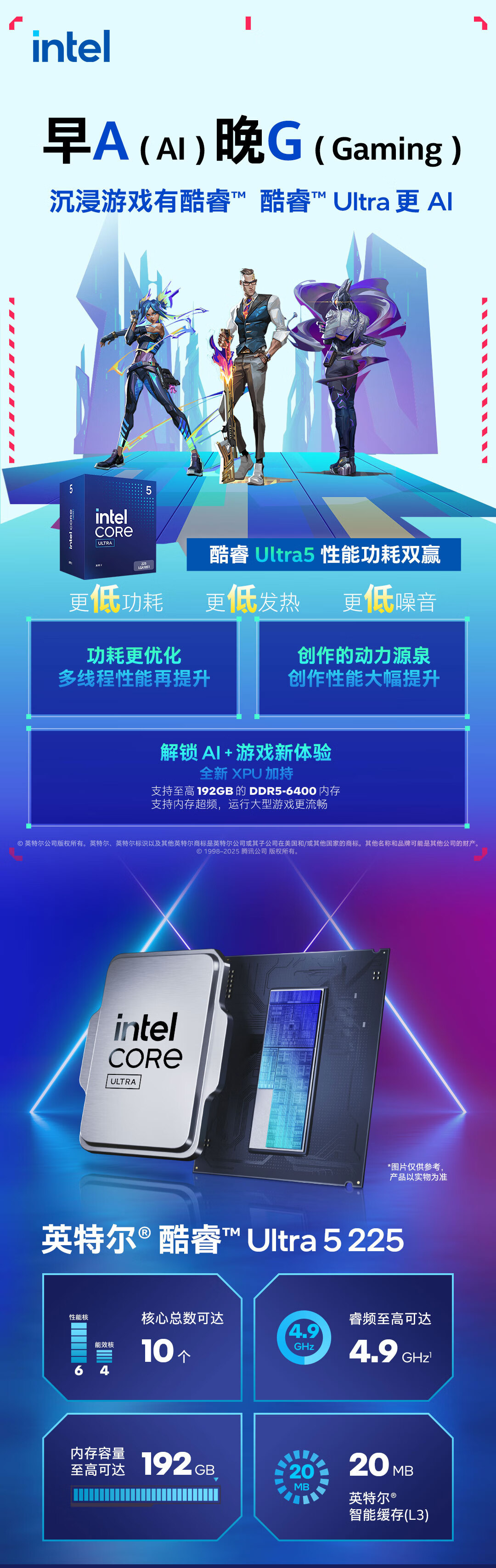 英特尔(Intel)酷睿 Ultra 5 225 盒装 台式机处理器CPU 10核10线程 睿频至高可达4.9Ghz 畅玩三角洲行动