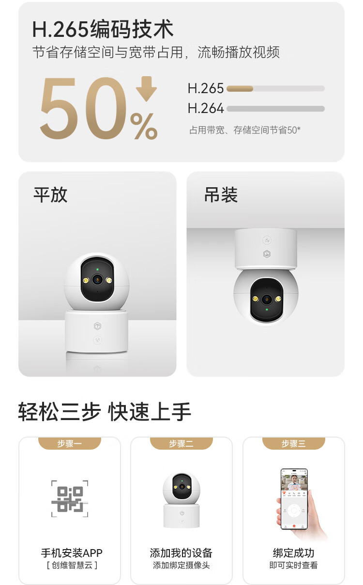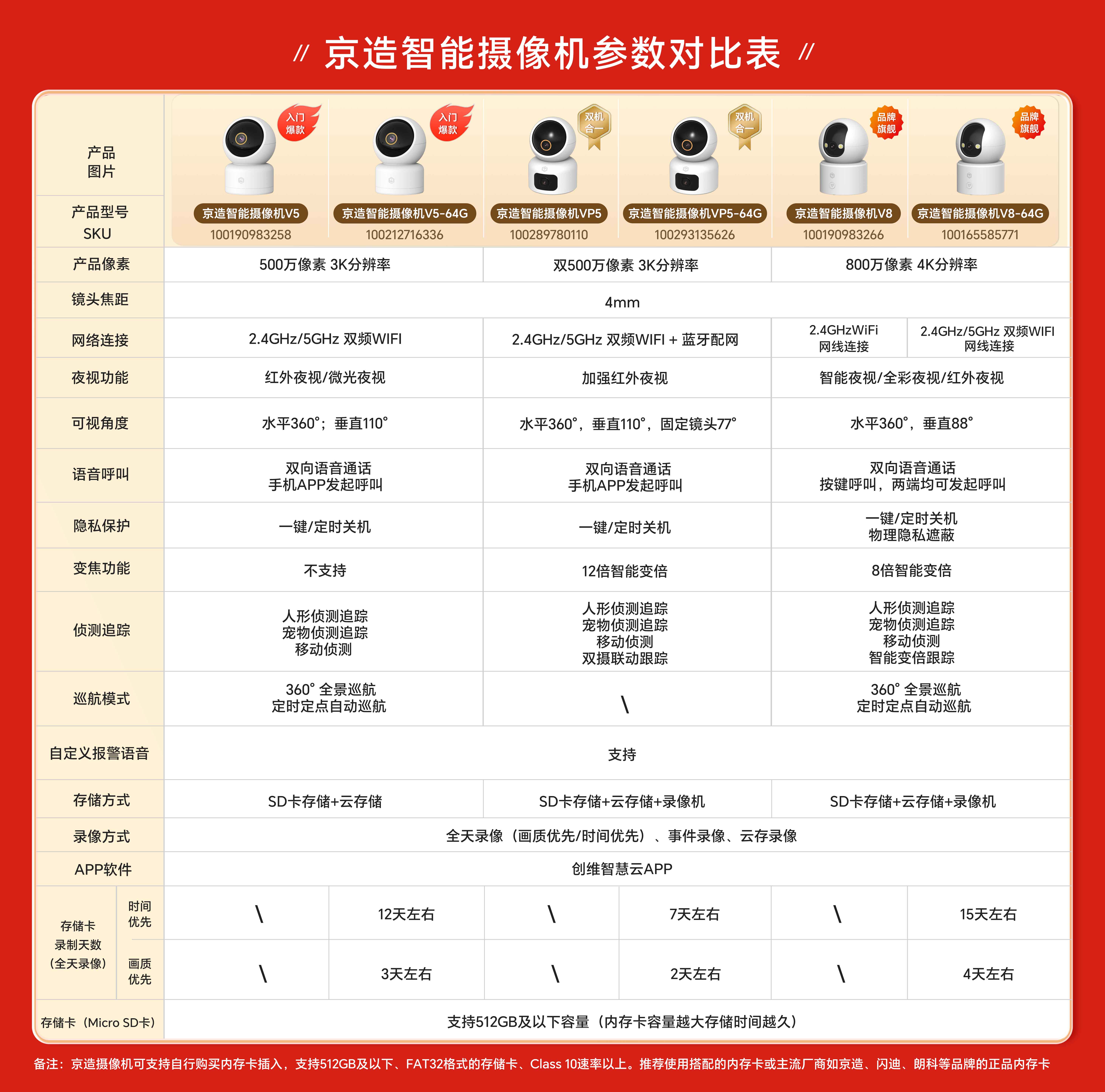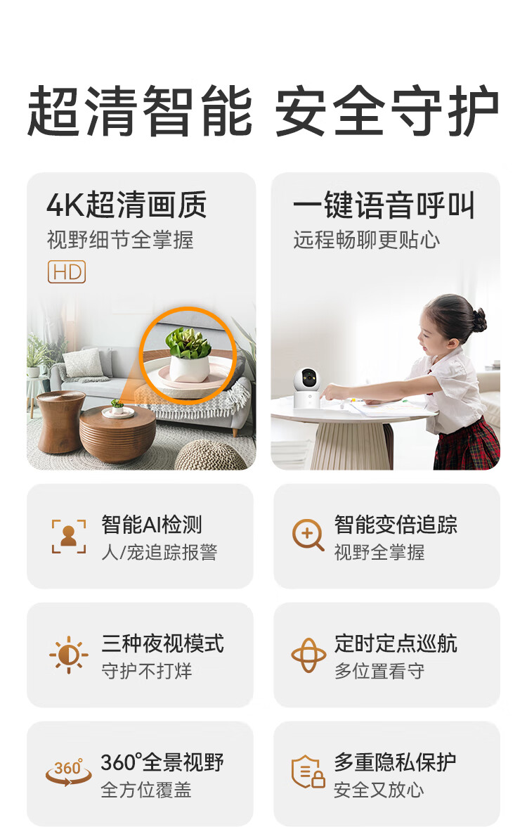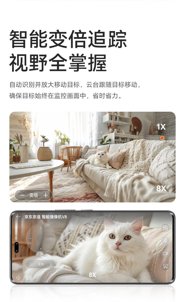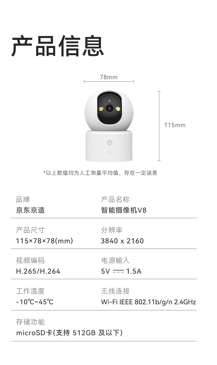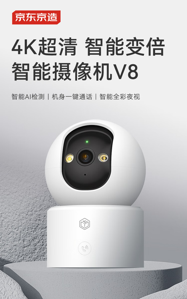 京东京造 智能摄像机V8 800万像素4K超清家用监控摄像头 AI人形侦测一键通话全彩夜视